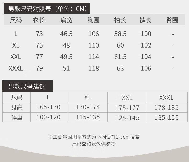 China (cm) 165 / 88-90 170 / 96-98 175 / 108-110 180 / 118-122 185 / 126-130