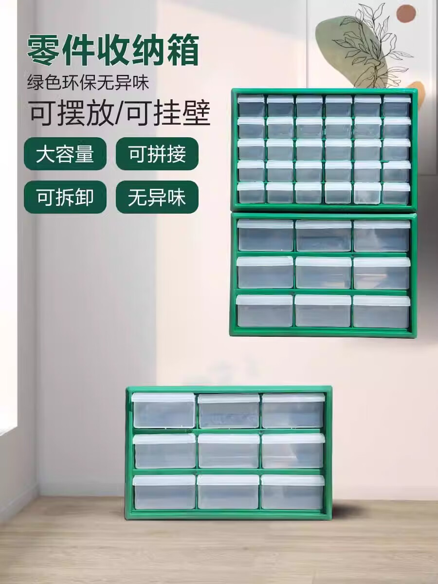 Qinkai storage box drawer-type multi-grid multi-function multi-layer combination screw electronic components storage Chinese herbal medicine parts box green 30 grids A930GN