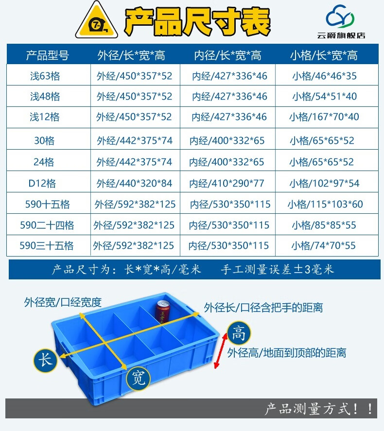 Qinkai plastic compartment box multi-grid storage box partition parts box-shaped storage box screw box storage square storage box 440 D16 grid/outside 440*320*84