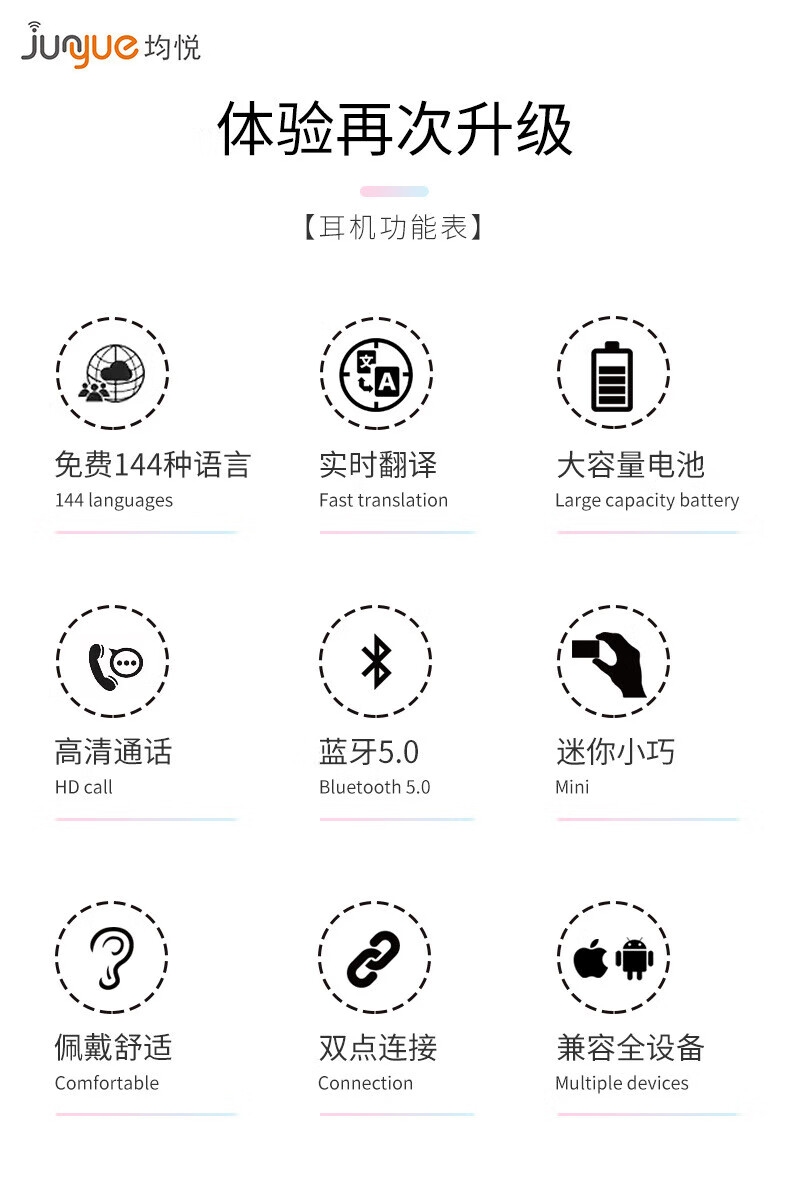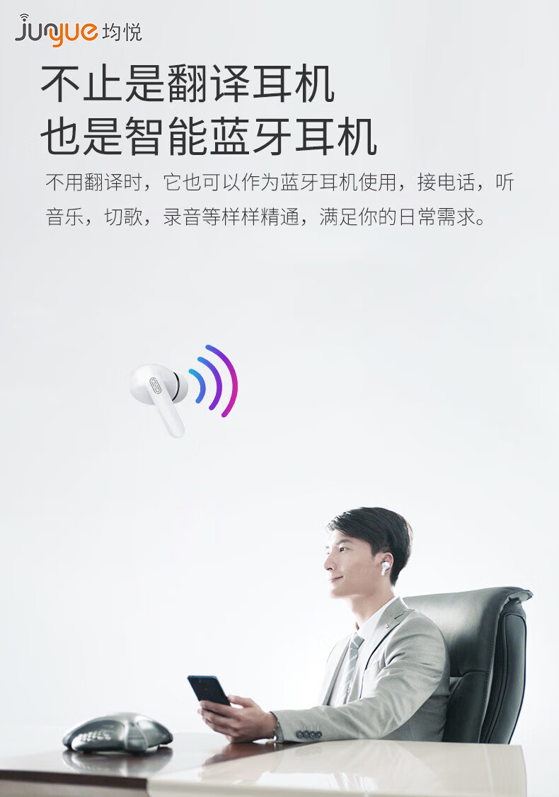 Huawei machine is suitable for multi-language intelligent translation machine AI voice translation Chinese and English in-ear offline conference headphones clip-on white + 145 language translation