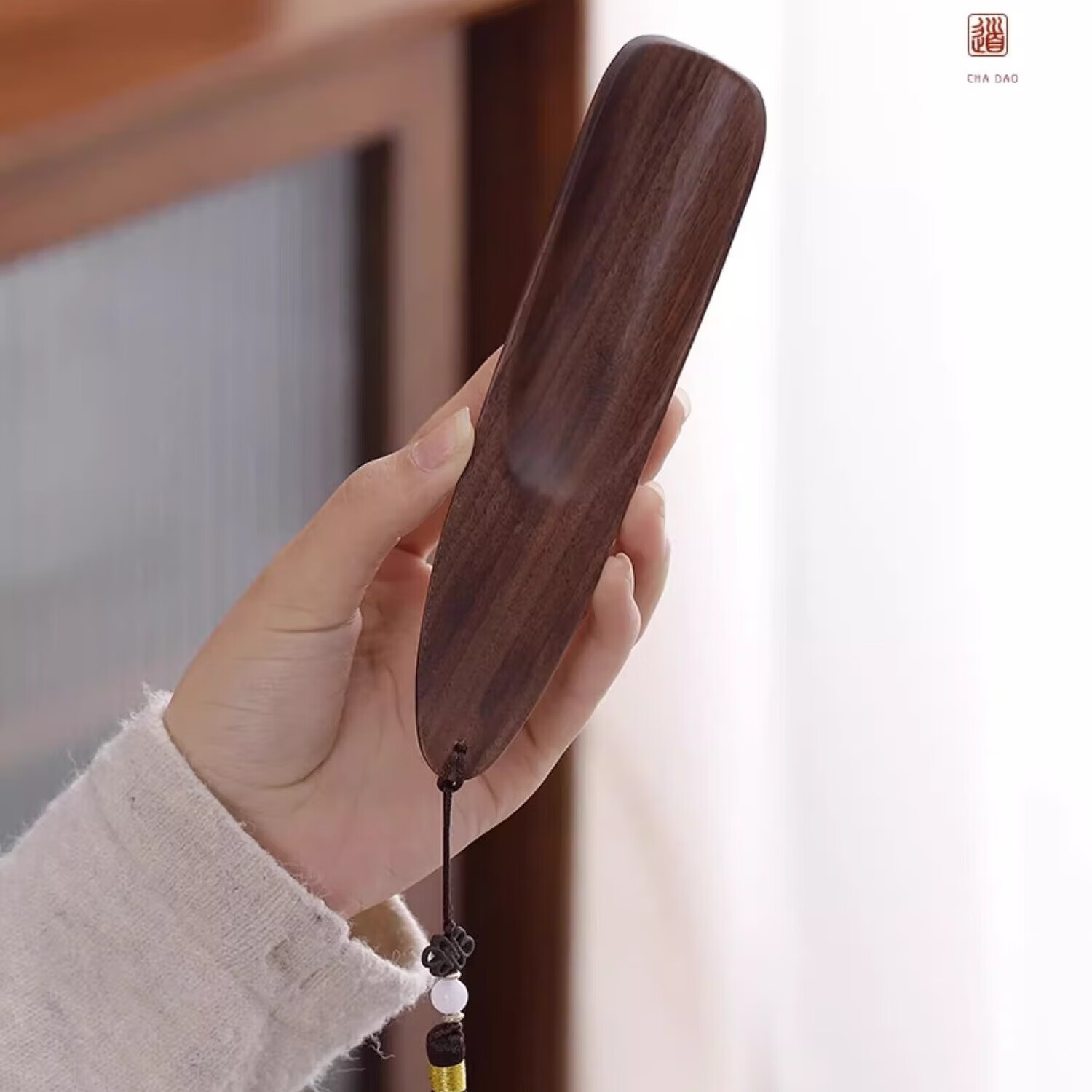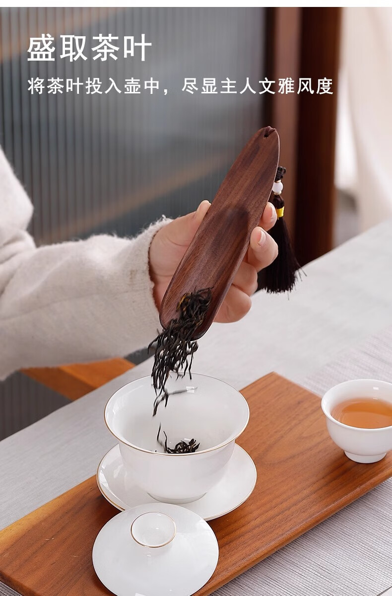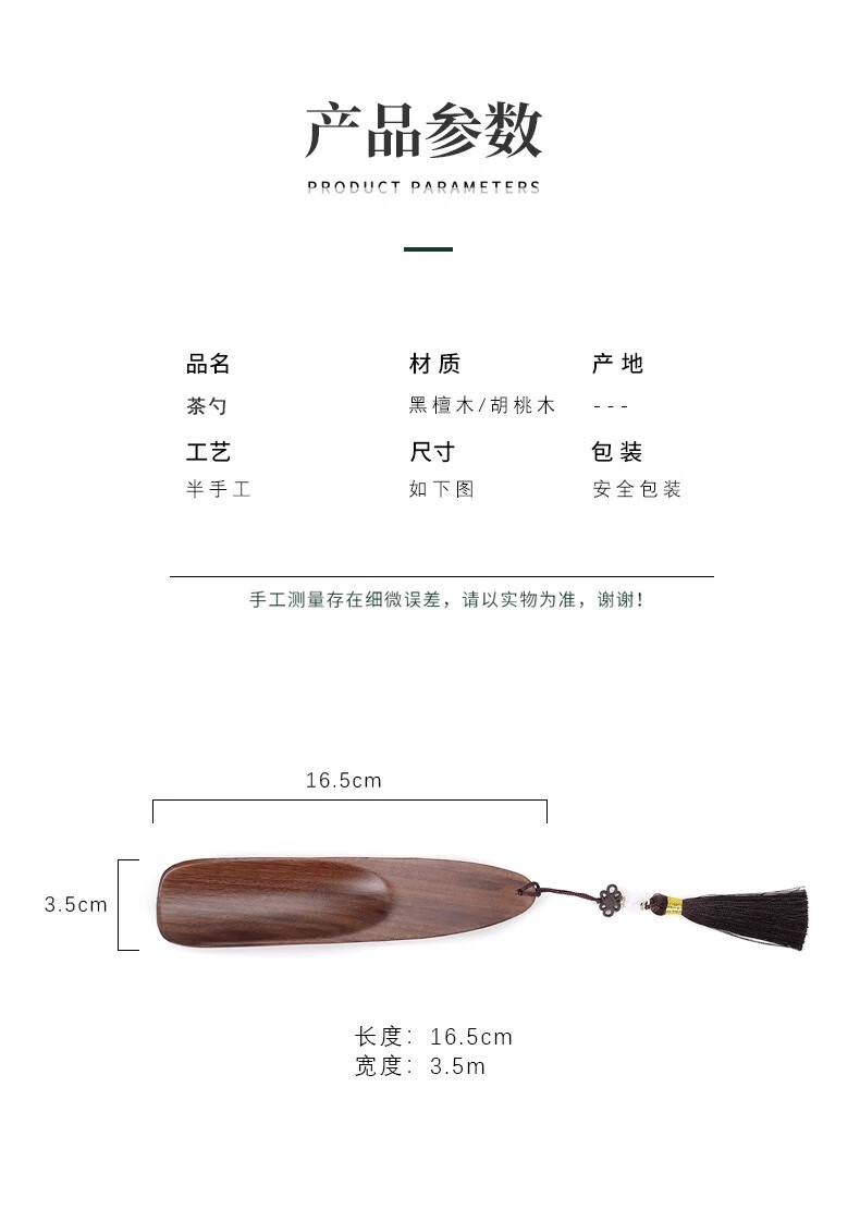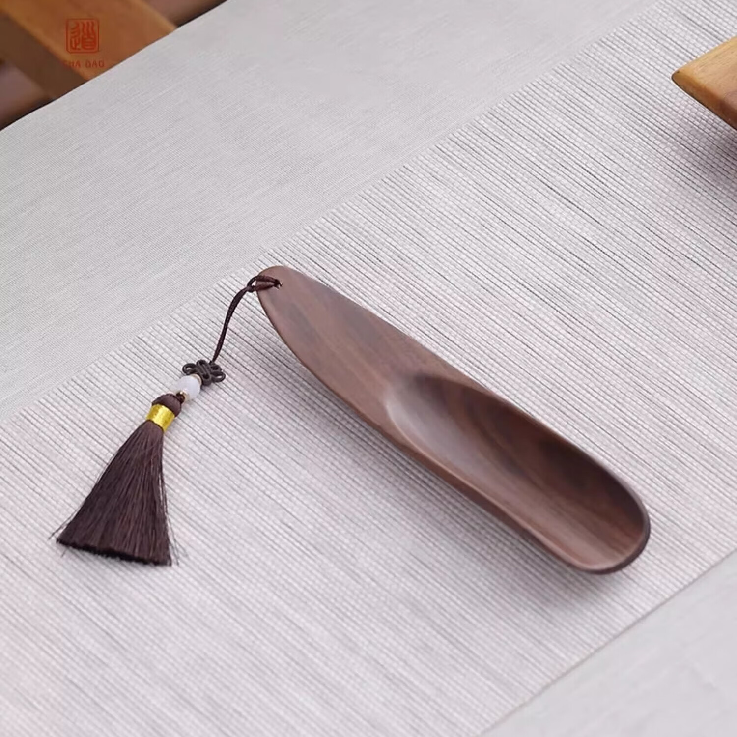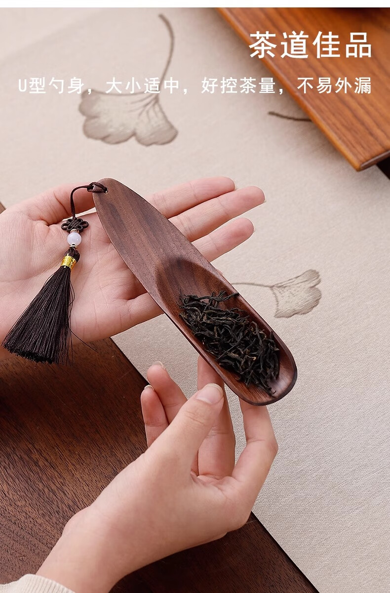 Betfair ebony tea spoon single tea shovel tea special spoon Japanese household wooden tea spoon high-end large walnut - tea spoon (crescent) + tea clip (original heart)