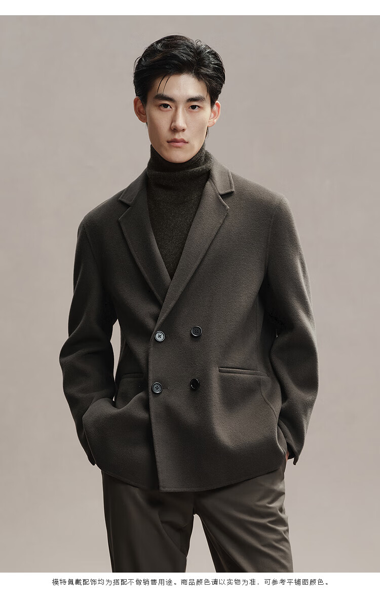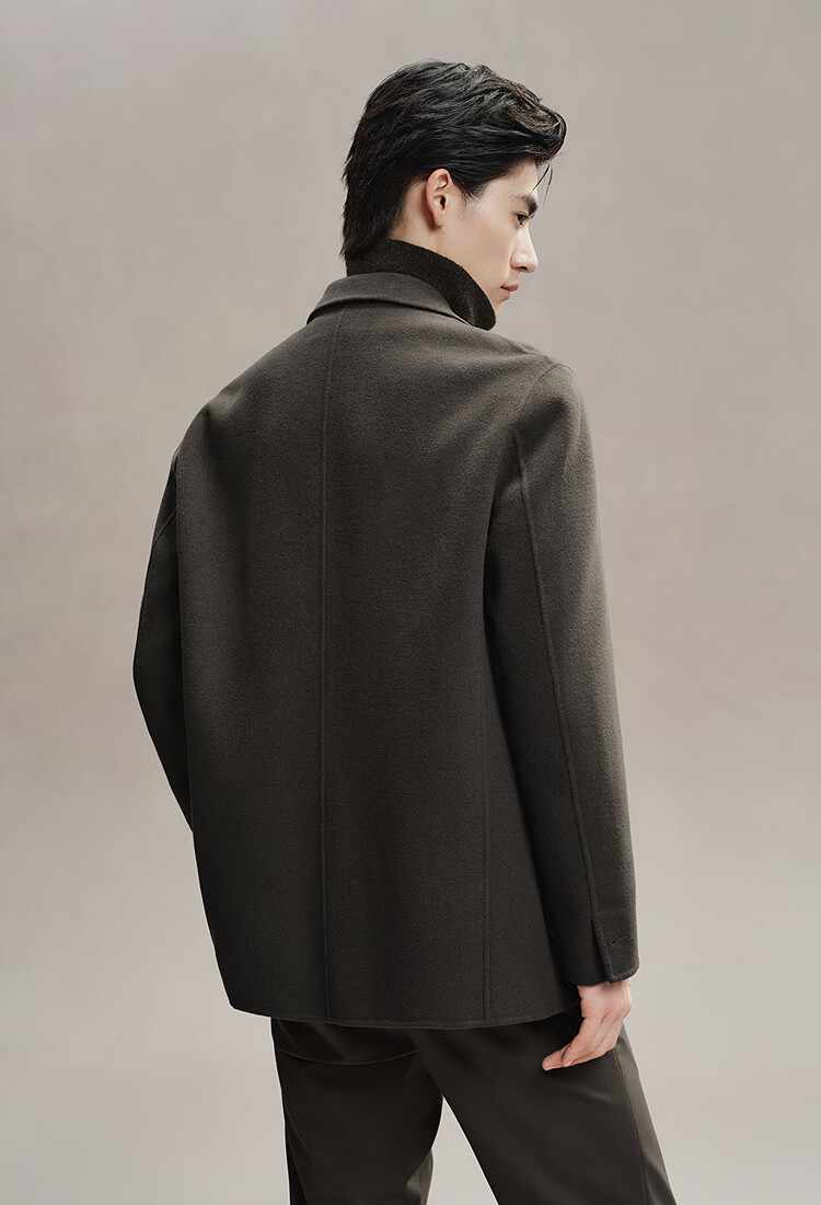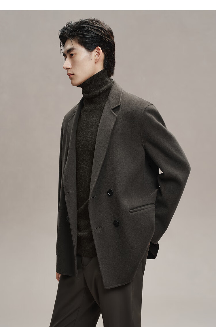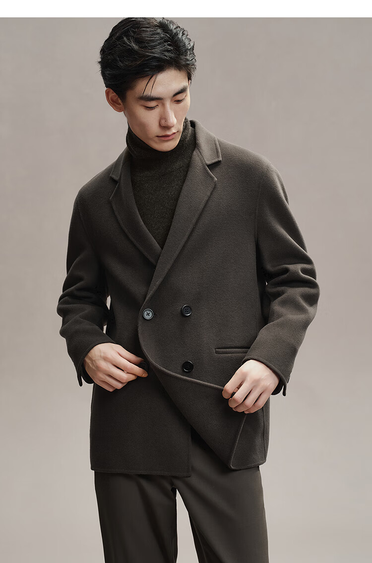 PEACEBIRD Men's Woolen Jacket Men's Winter Double-Breasted Suit Wool Short Coat Men's Gray Brown First Batch 2XL