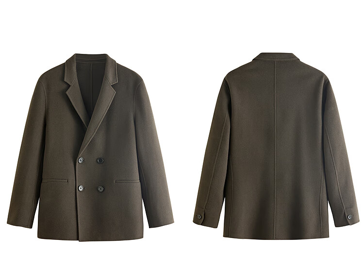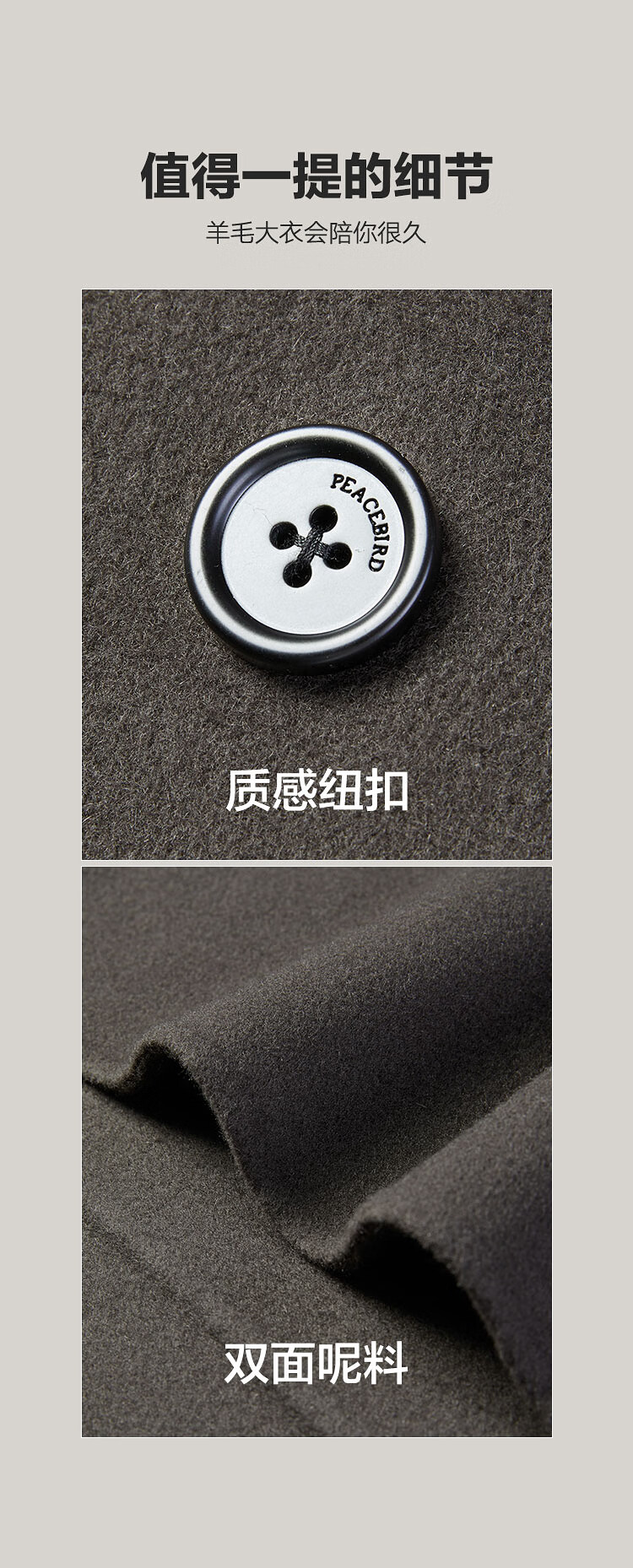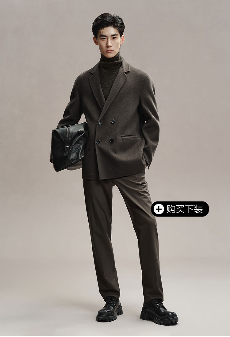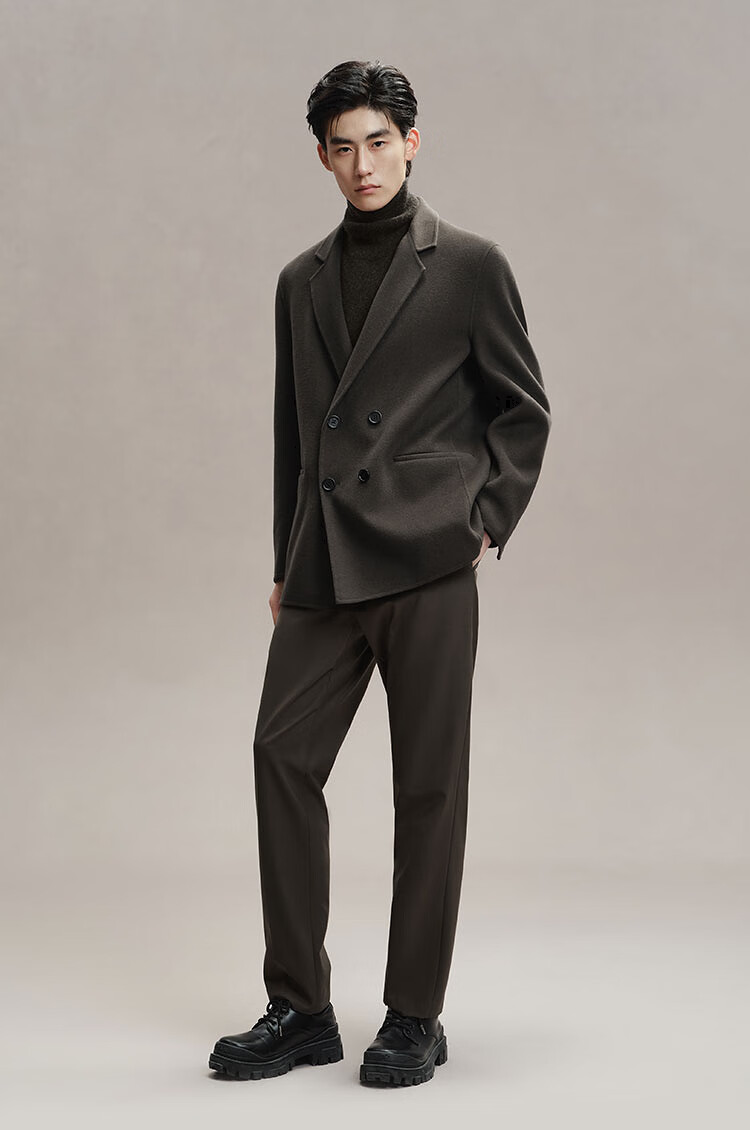 PEACEBIRD Men's Woolen Jacket Men's Winter Double-Breasted Suit Wool Short Coat Men's Gray Brown First Batch 2XL