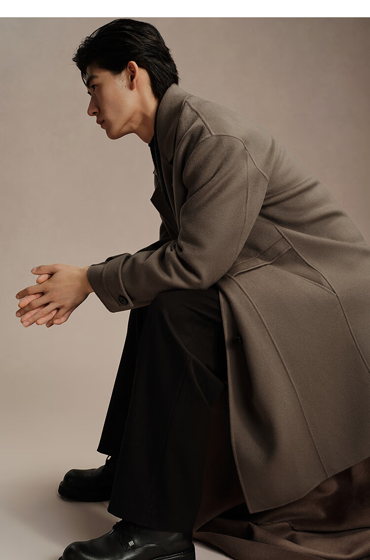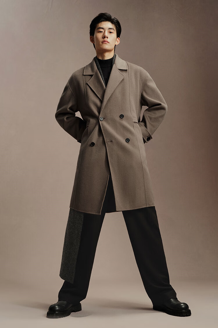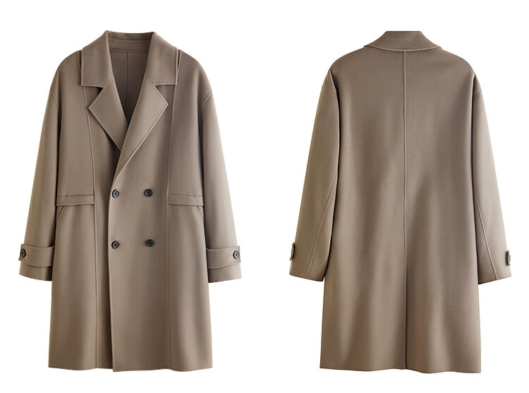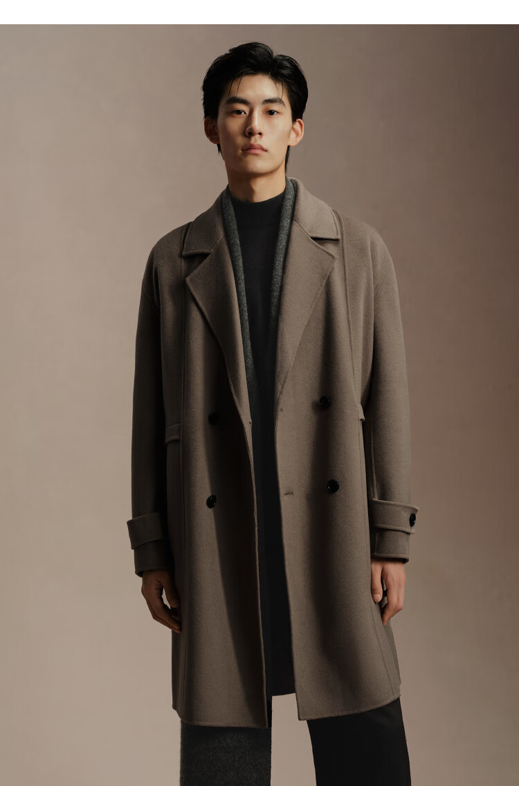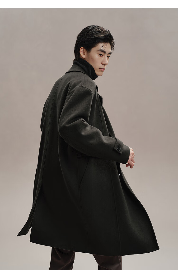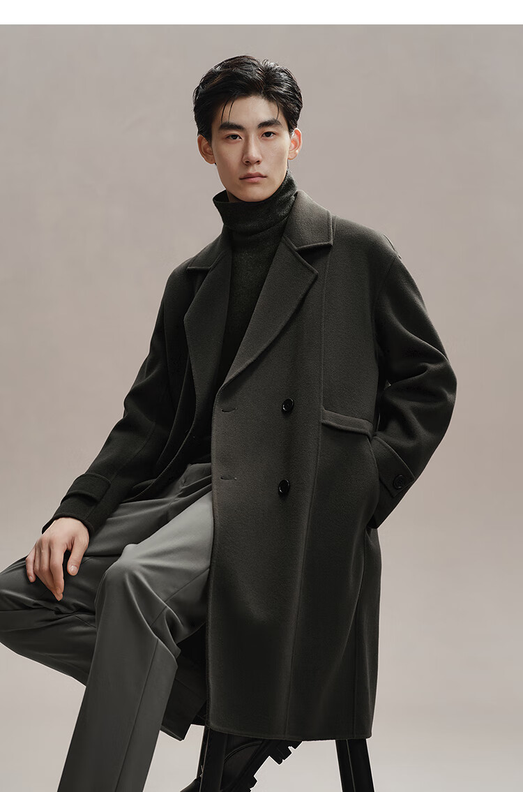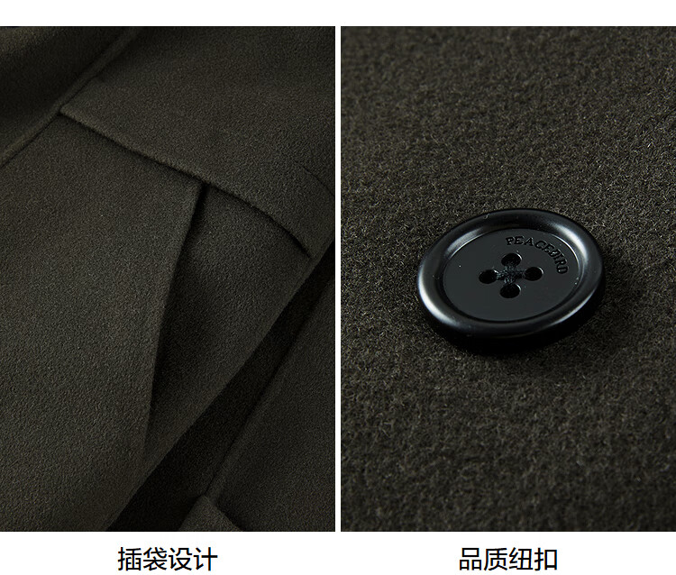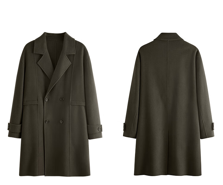 PEACEBIRD Men's Lenzing Tencel Double-sided Woolen Coat Men's Mid-Length Winter Wool Jacket Khaki First Batch M