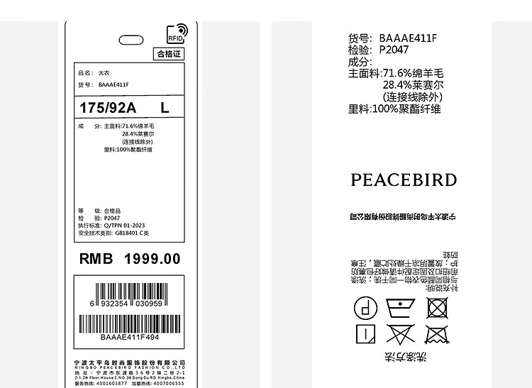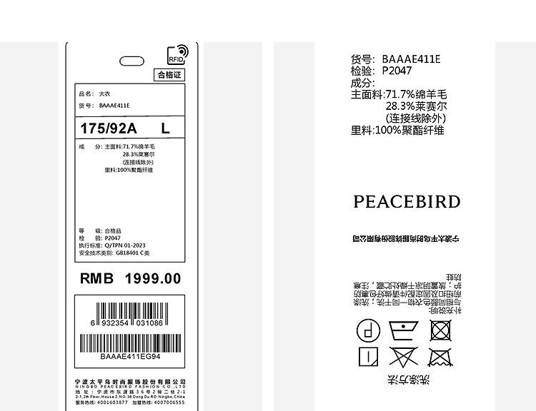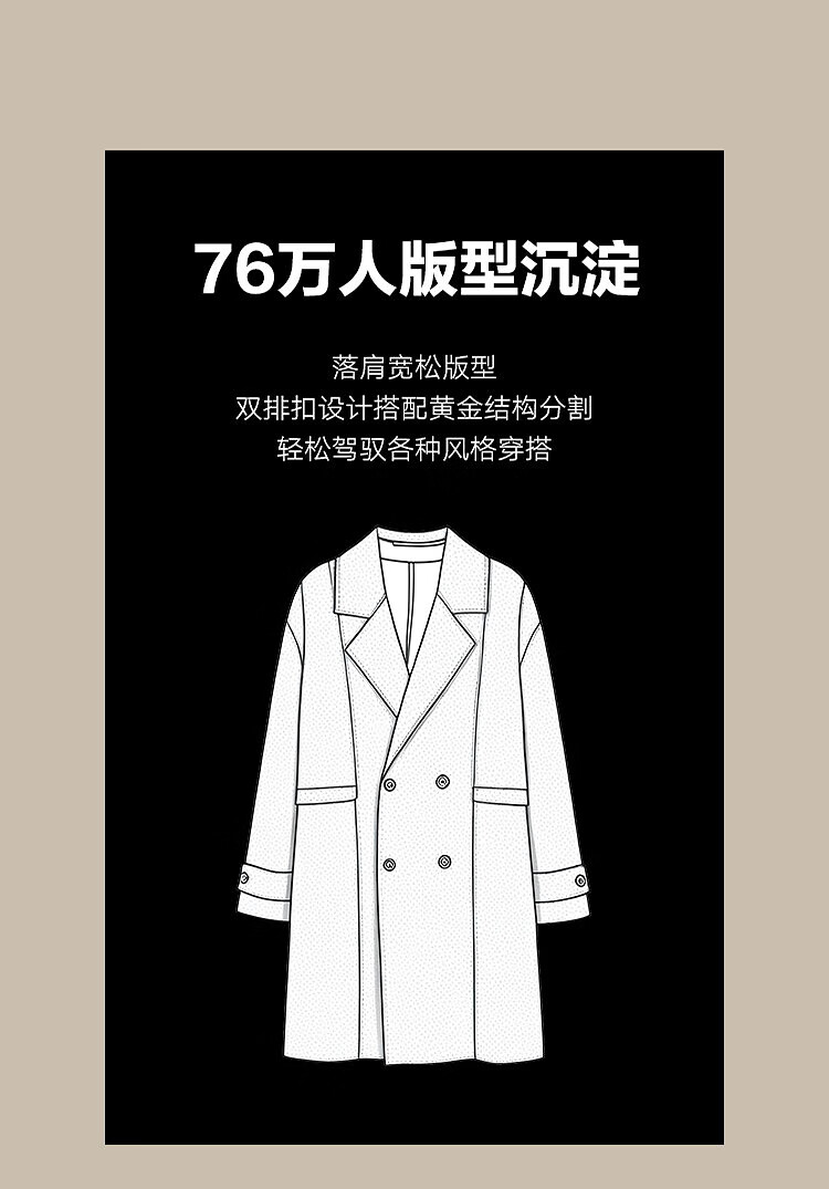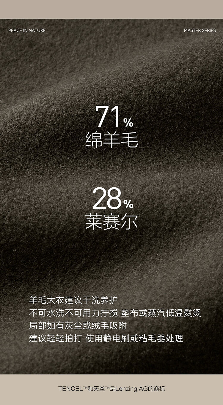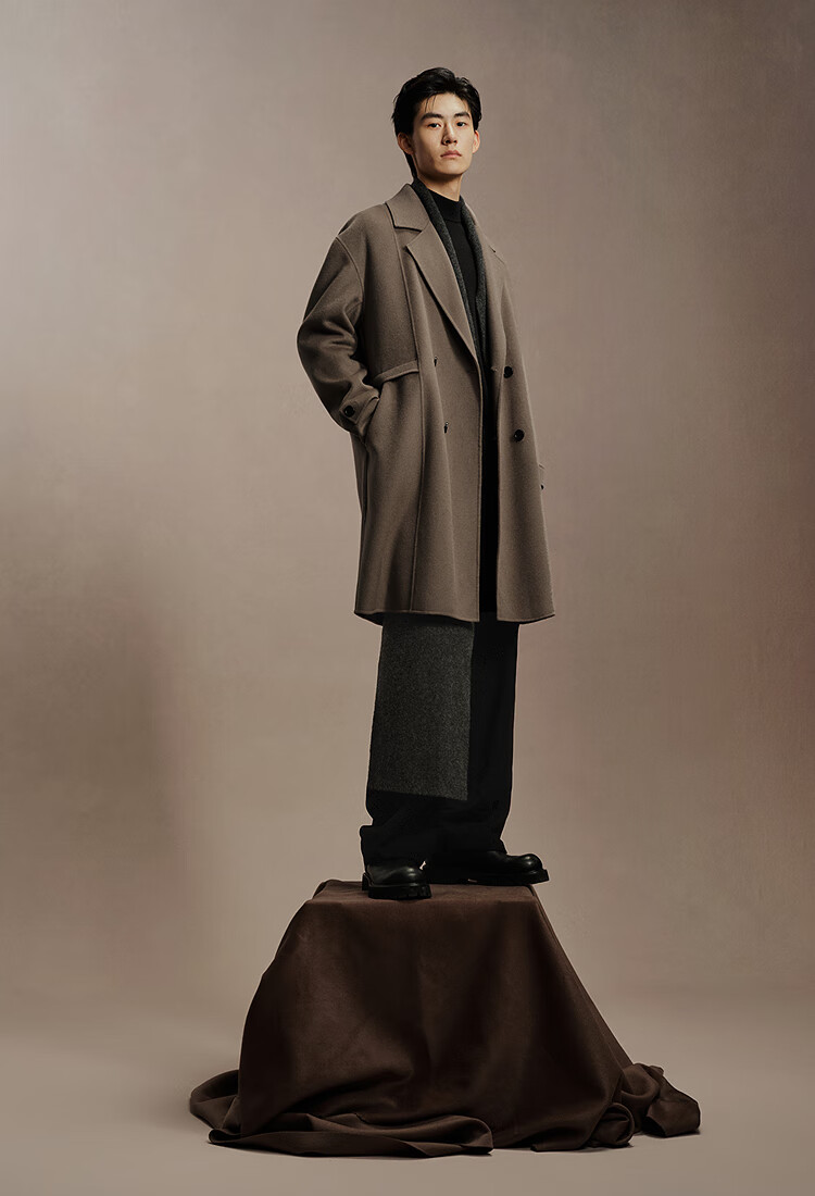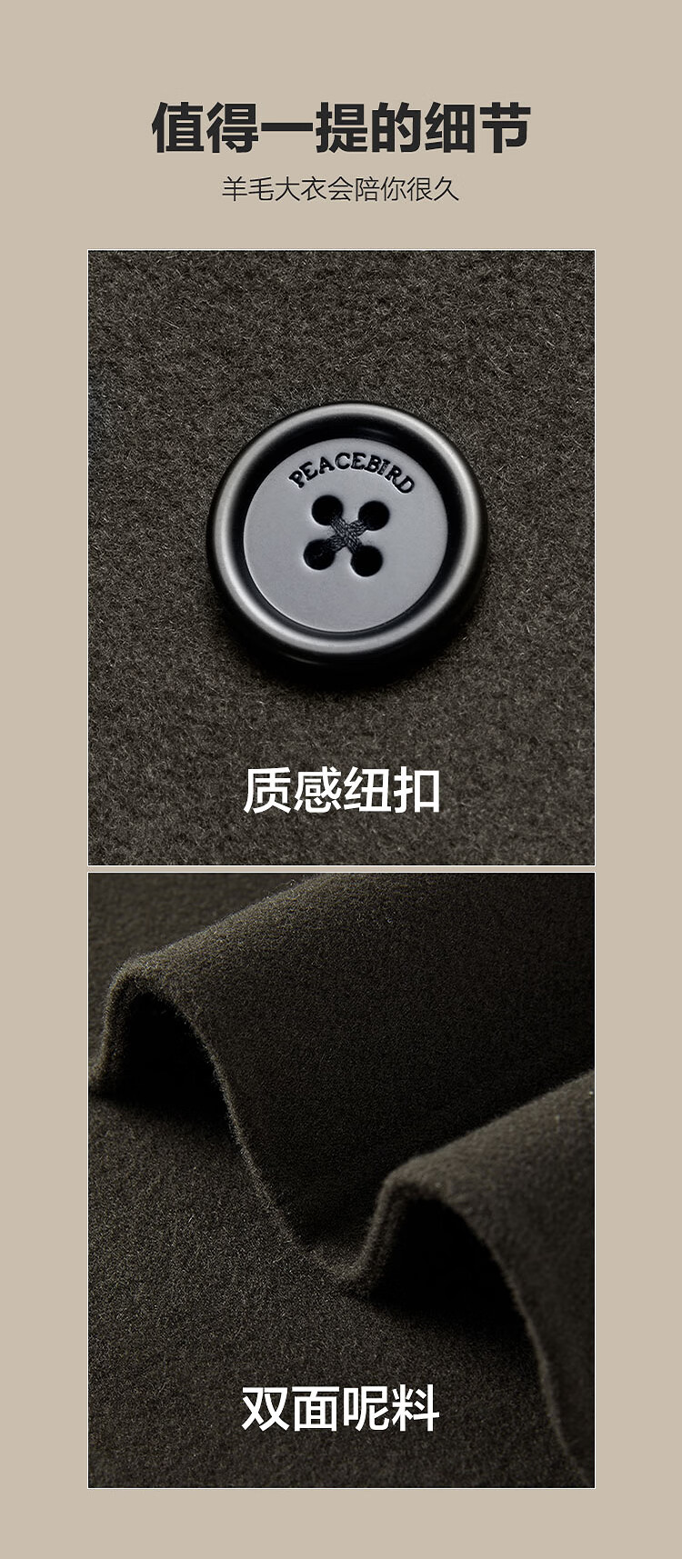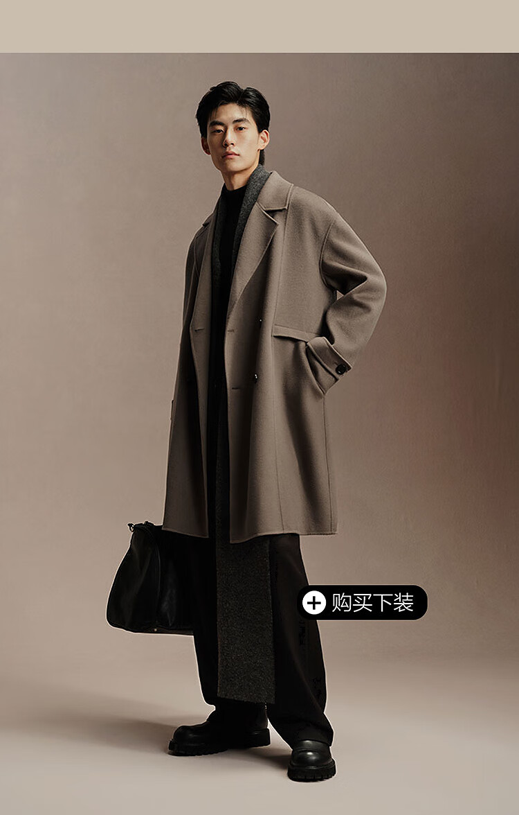 PEACEBIRD Men's Lenzing Tencel Double-sided Woolen Coat Men's Mid-Length Winter Wool Jacket Khaki First Batch M