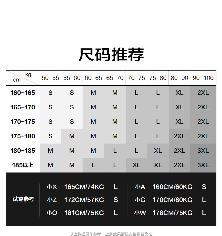 China (cm) 165 / 88-90 170 / 96-98 175 / 108-110 180 / 118-122 185 / 126-130