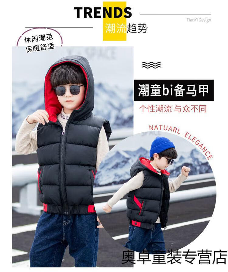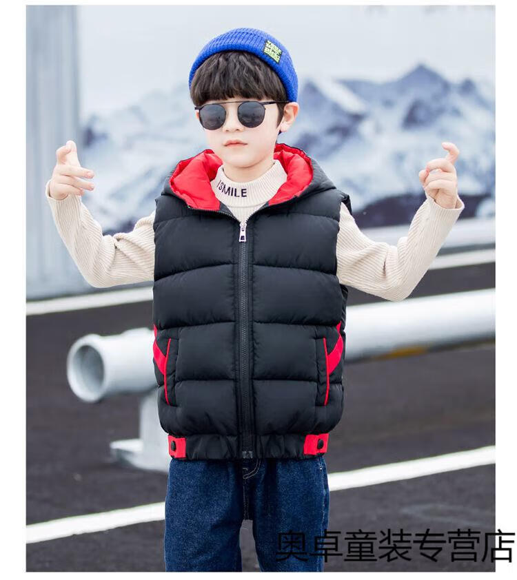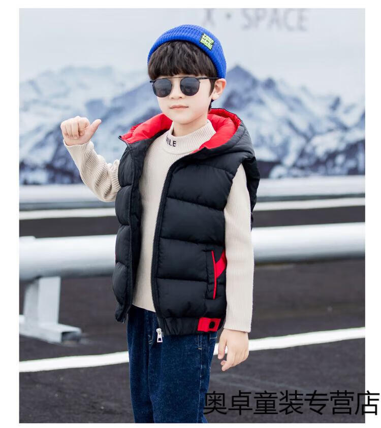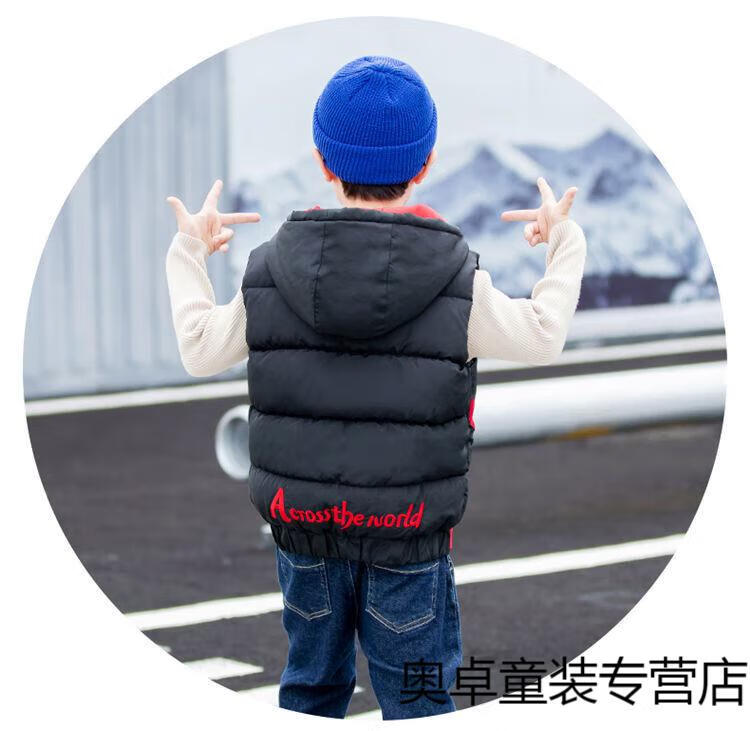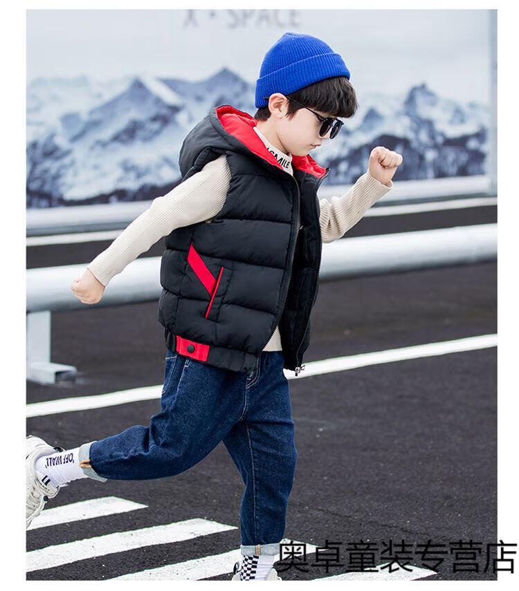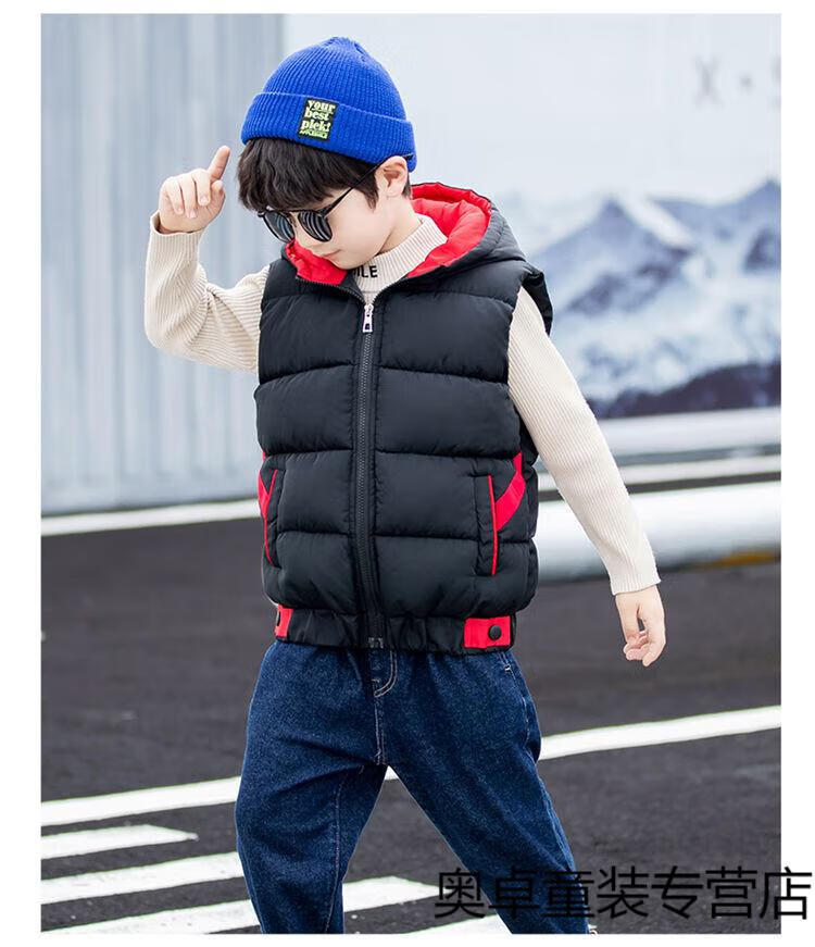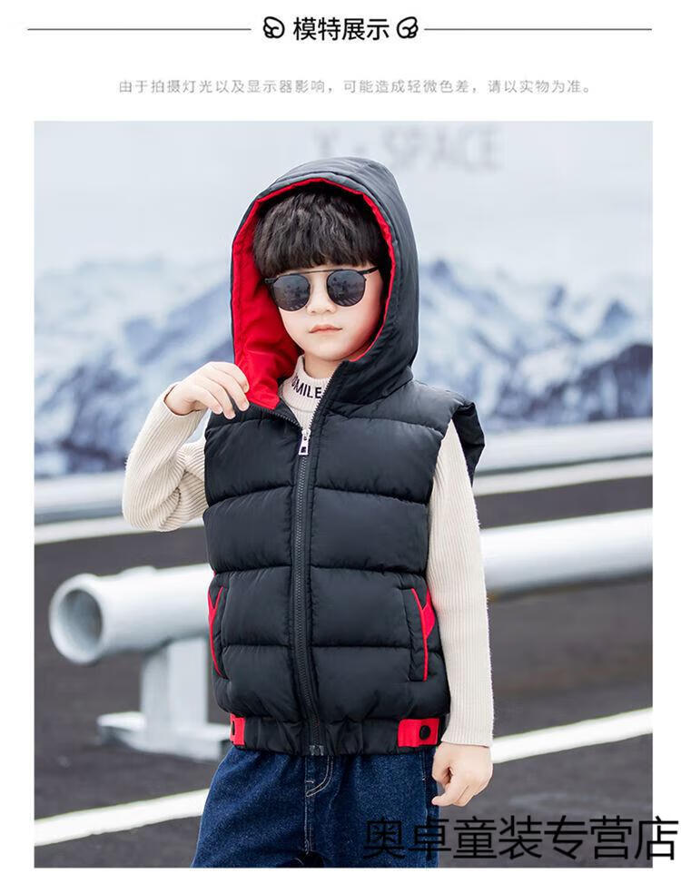 Disney boys down cotton vest outer wear 5 vest 6 autumn and winter 7 child boy vest thickened jacket 8 years old style black (21 color hooded vest) 140 size (recommended height is about 130)