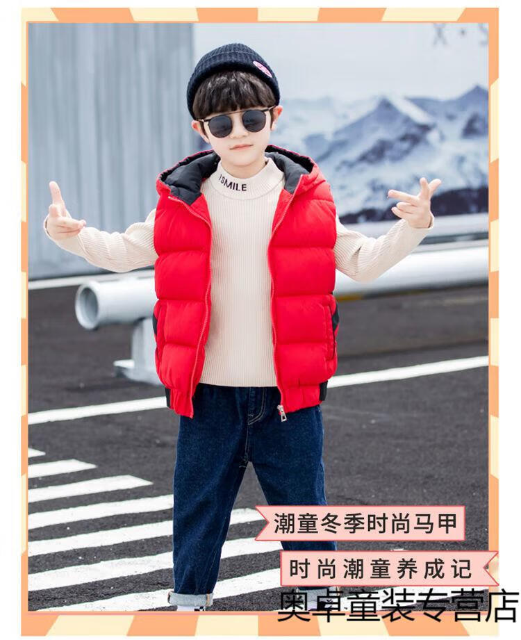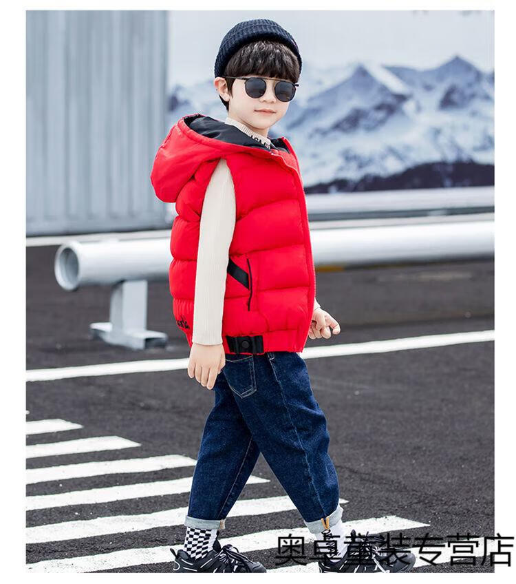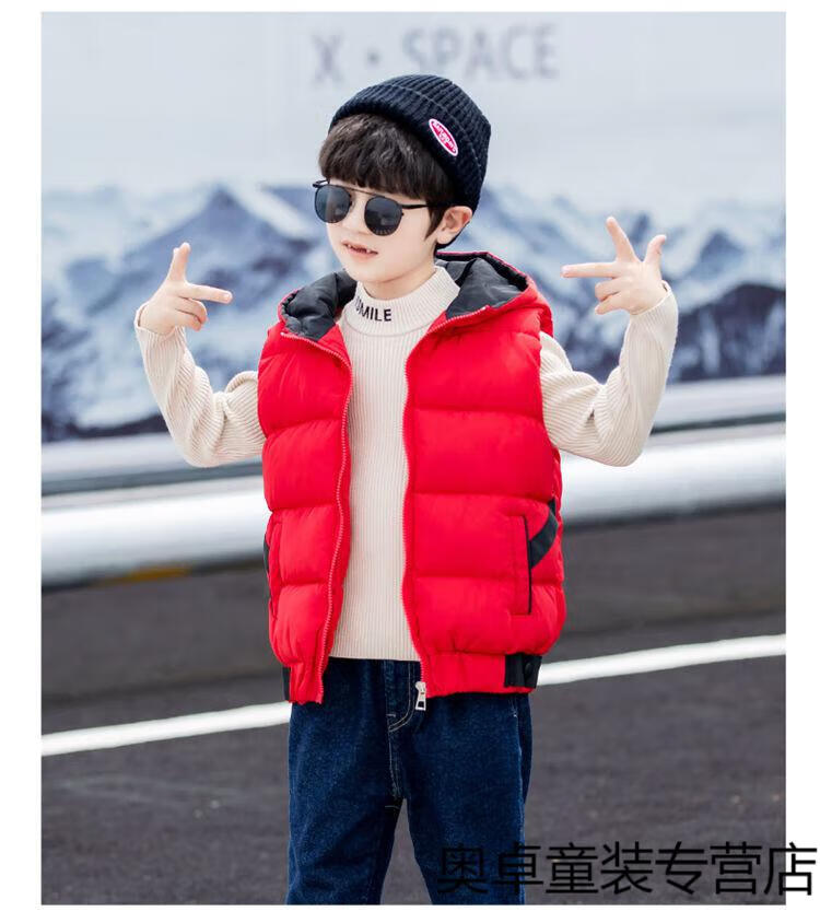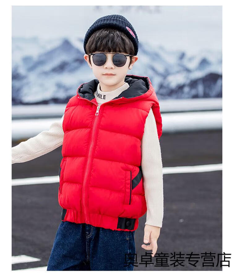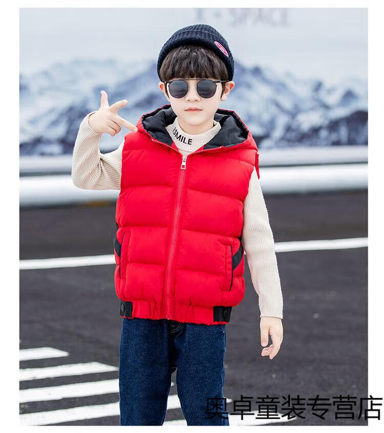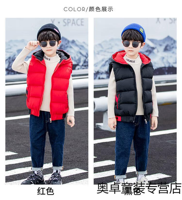 Disney boys down cotton vest outer wear 5 vest 6 autumn and winter 7 child boy vest thickened jacket 8 years old style black (21 color hooded vest) 140 size (recommended height is about 130)