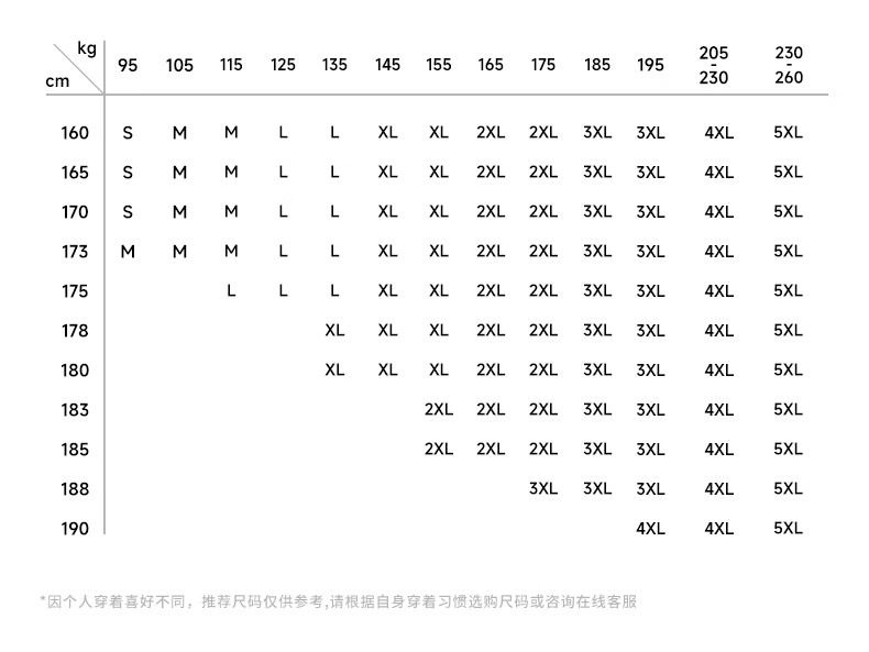 China (cm) 160-165/84-86 165-170 / 88-90 167-172 / 92-96 168-173 / 98-102 170-176 / 106-110