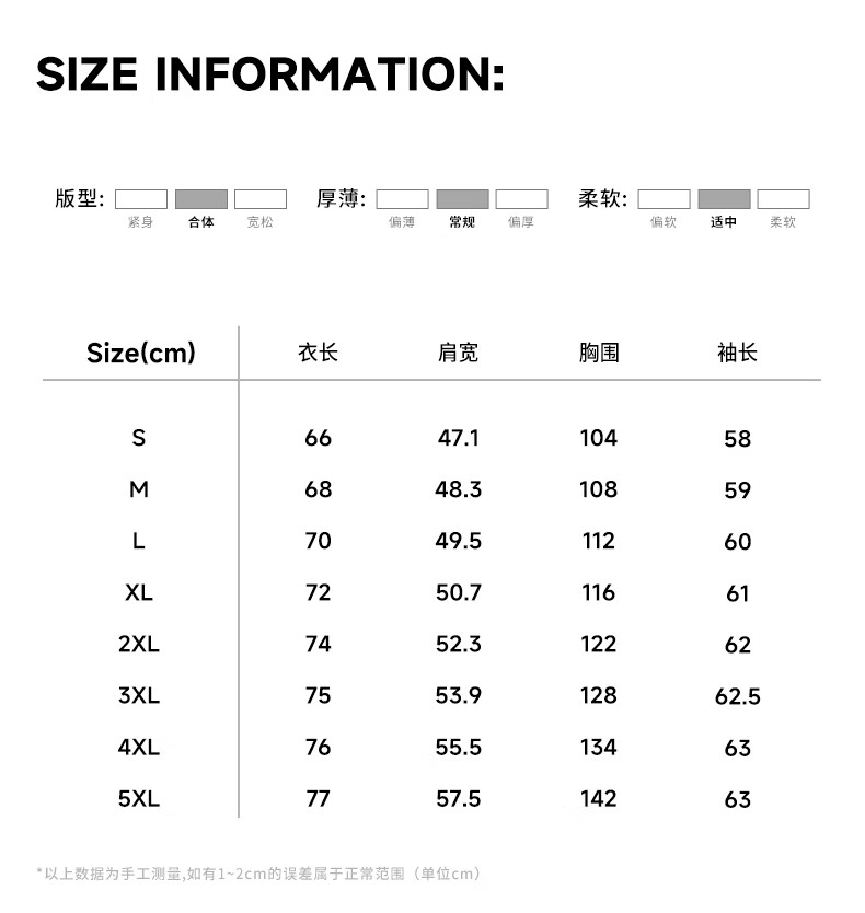 Size (cm) 42 44 46 48 50