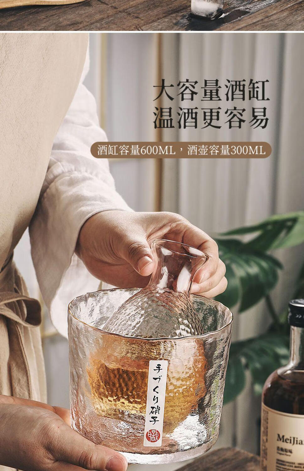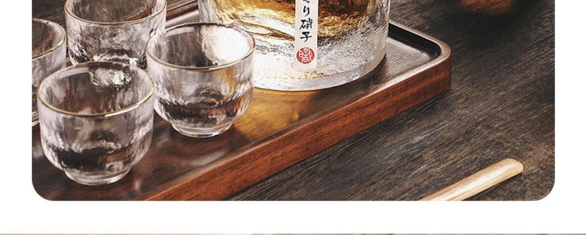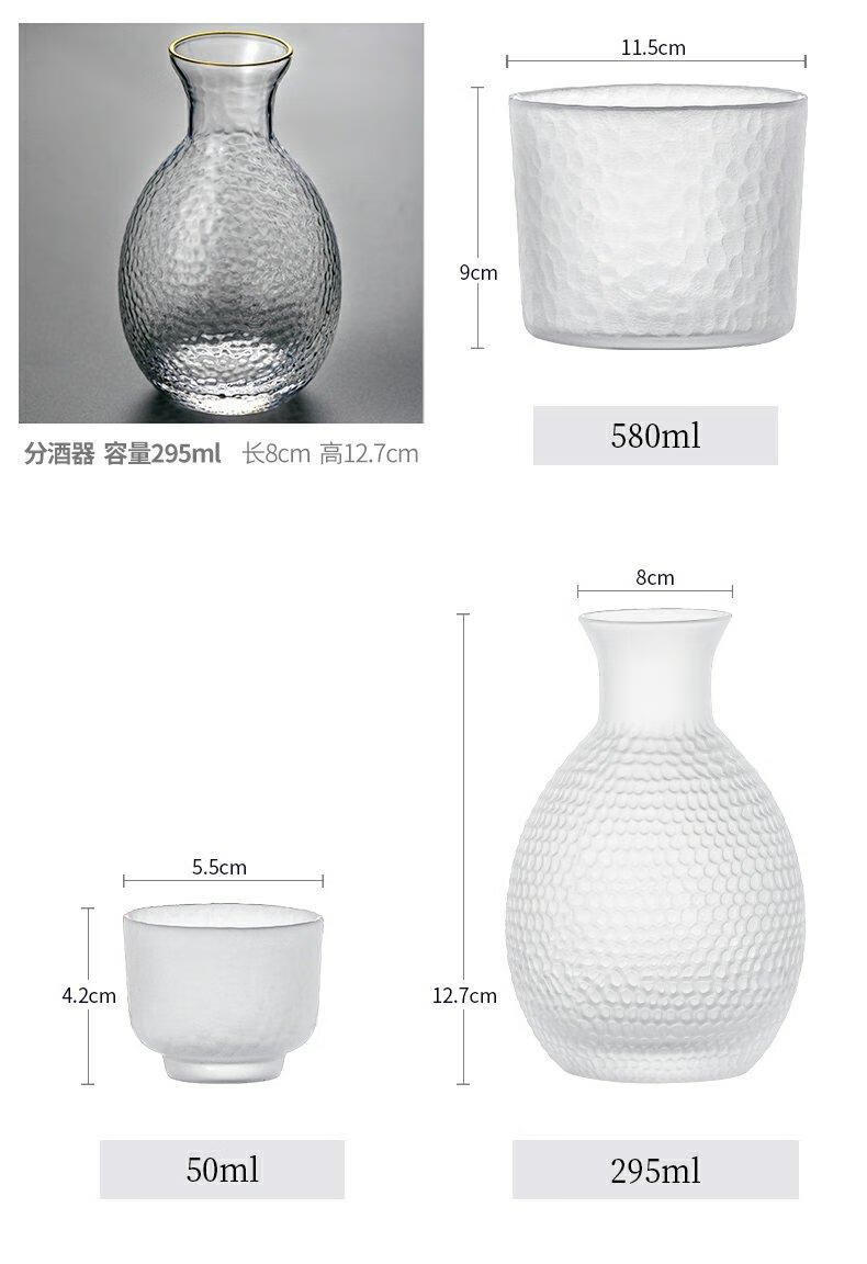 Handmade retro sake pot set, warm wine and hot wine glass pot, simple household one or two white wine glasses, hammer pattern, antique style, transparent sake pot, one pot, one cylinder and four cups