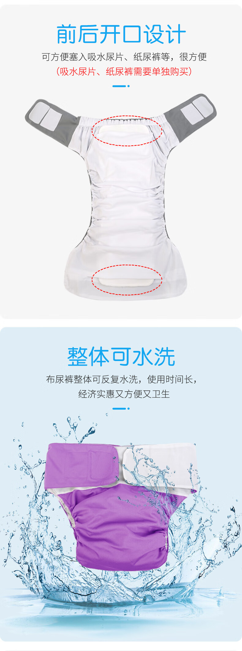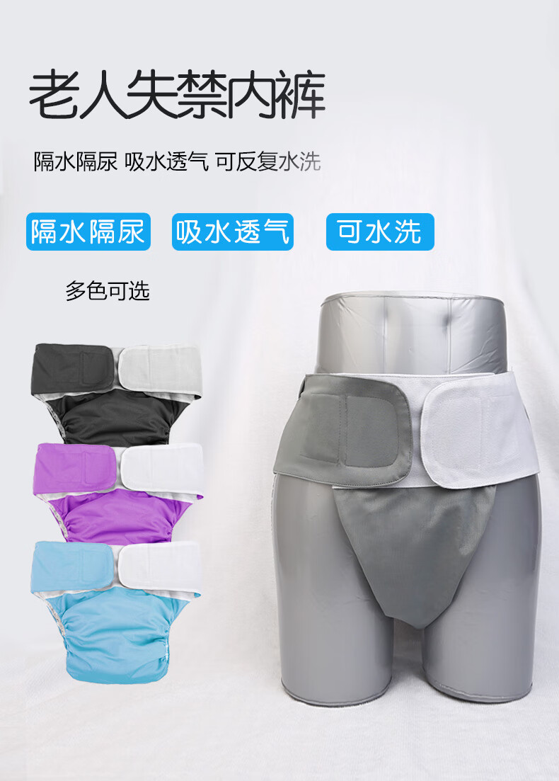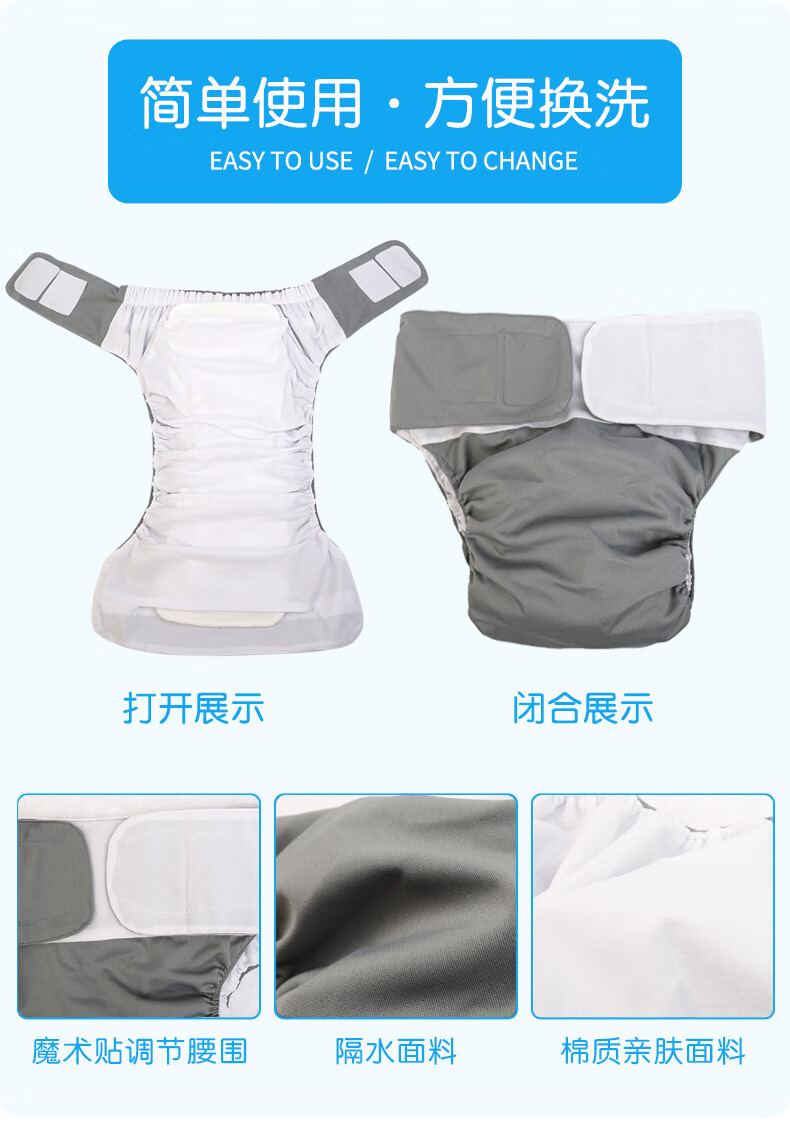 CLCEY Paralyzed bedridden elderly with severe incontinence underwear leak-proof cotton pants washable pull-up pants adult diapers blue diapers adjustable waist 1 feet 3 to 3 feet 8