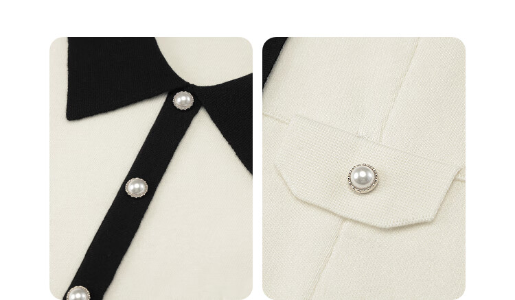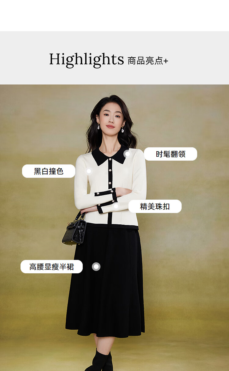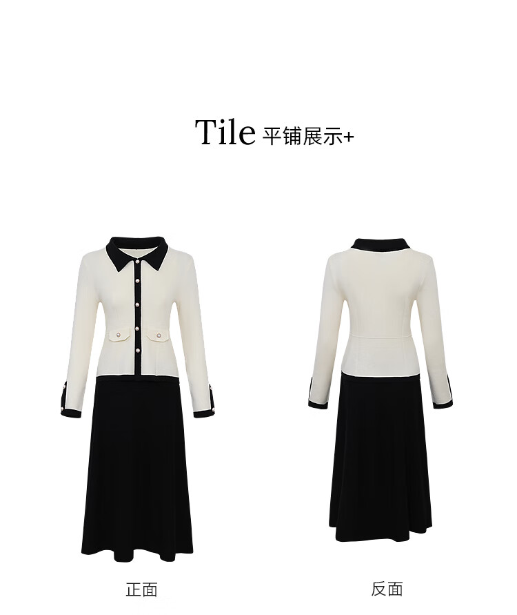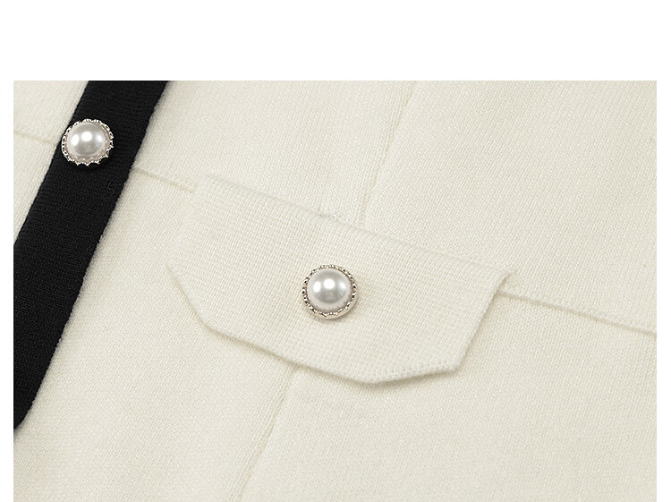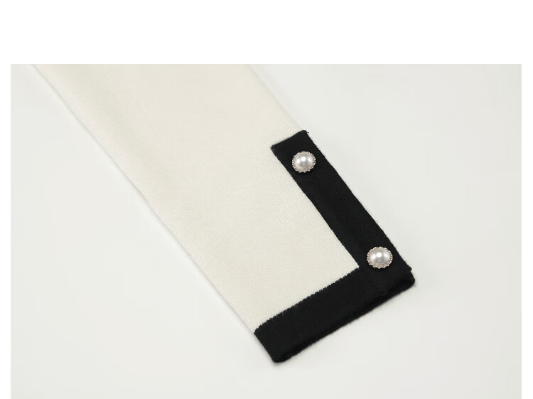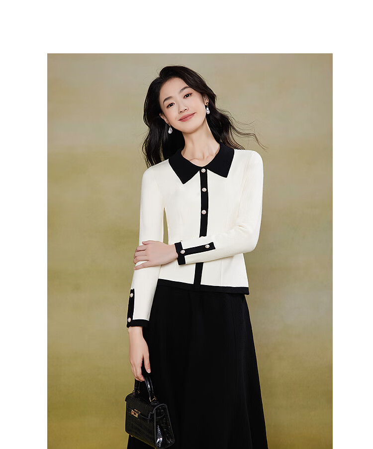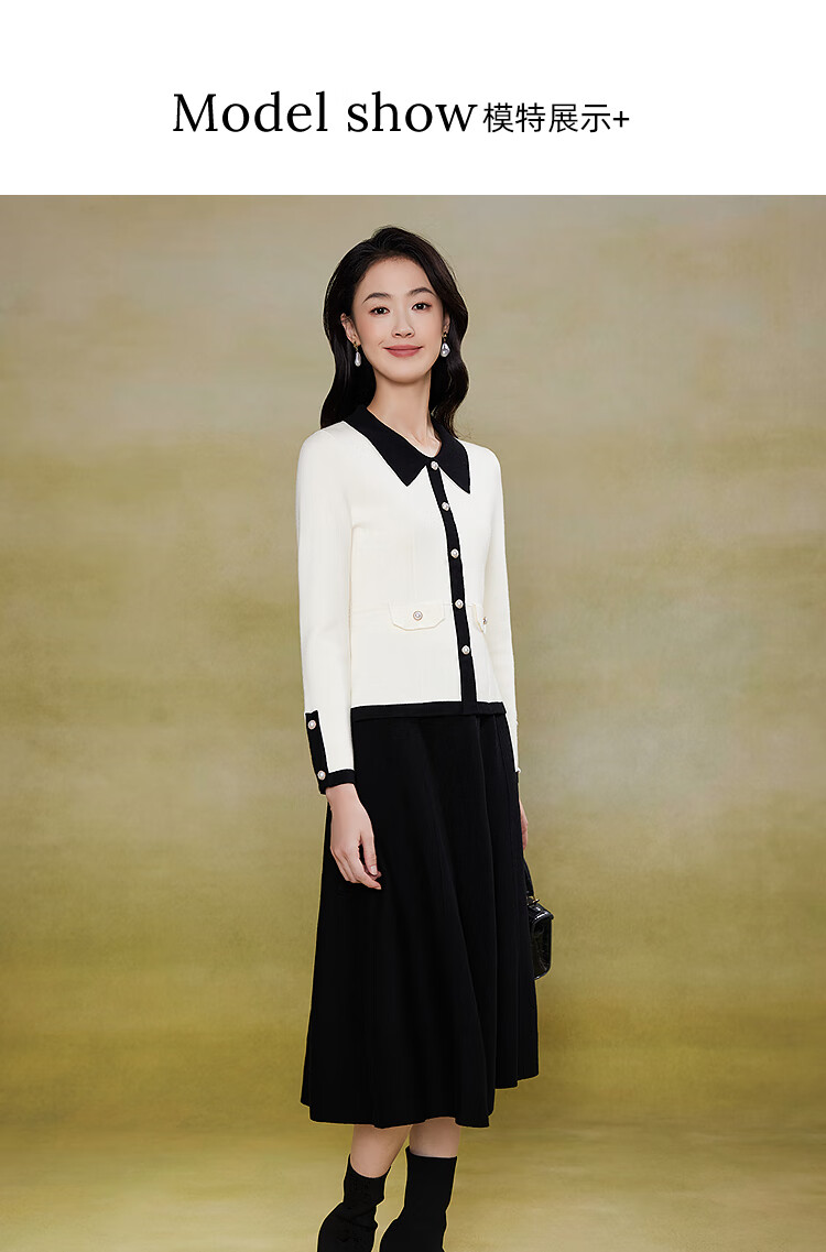 Daimax autumn new knitted suit color-blocked long-sleeved pullover sweater covering the flesh umbrella skirt two-piece set for women white XL