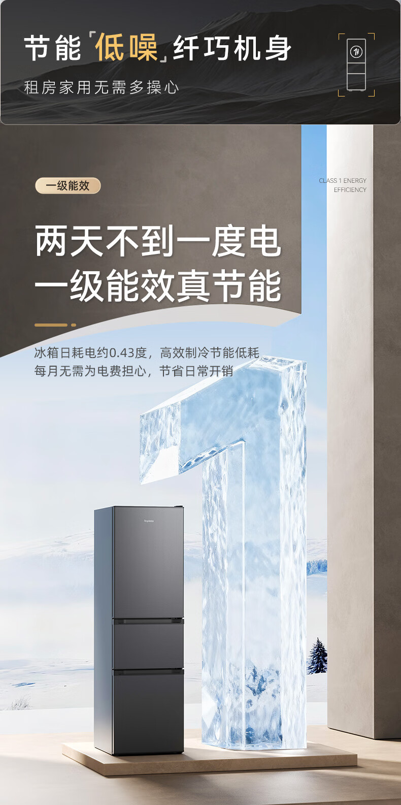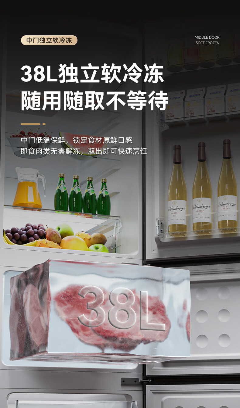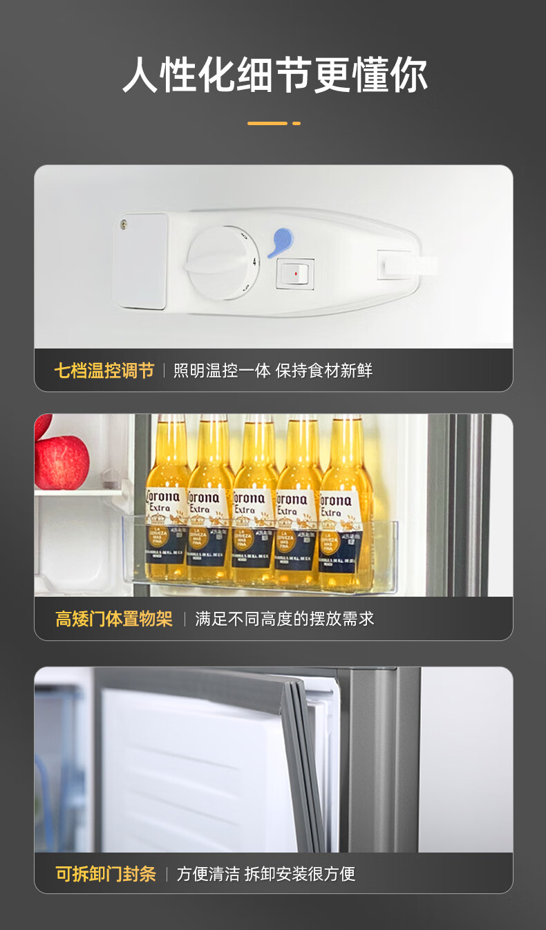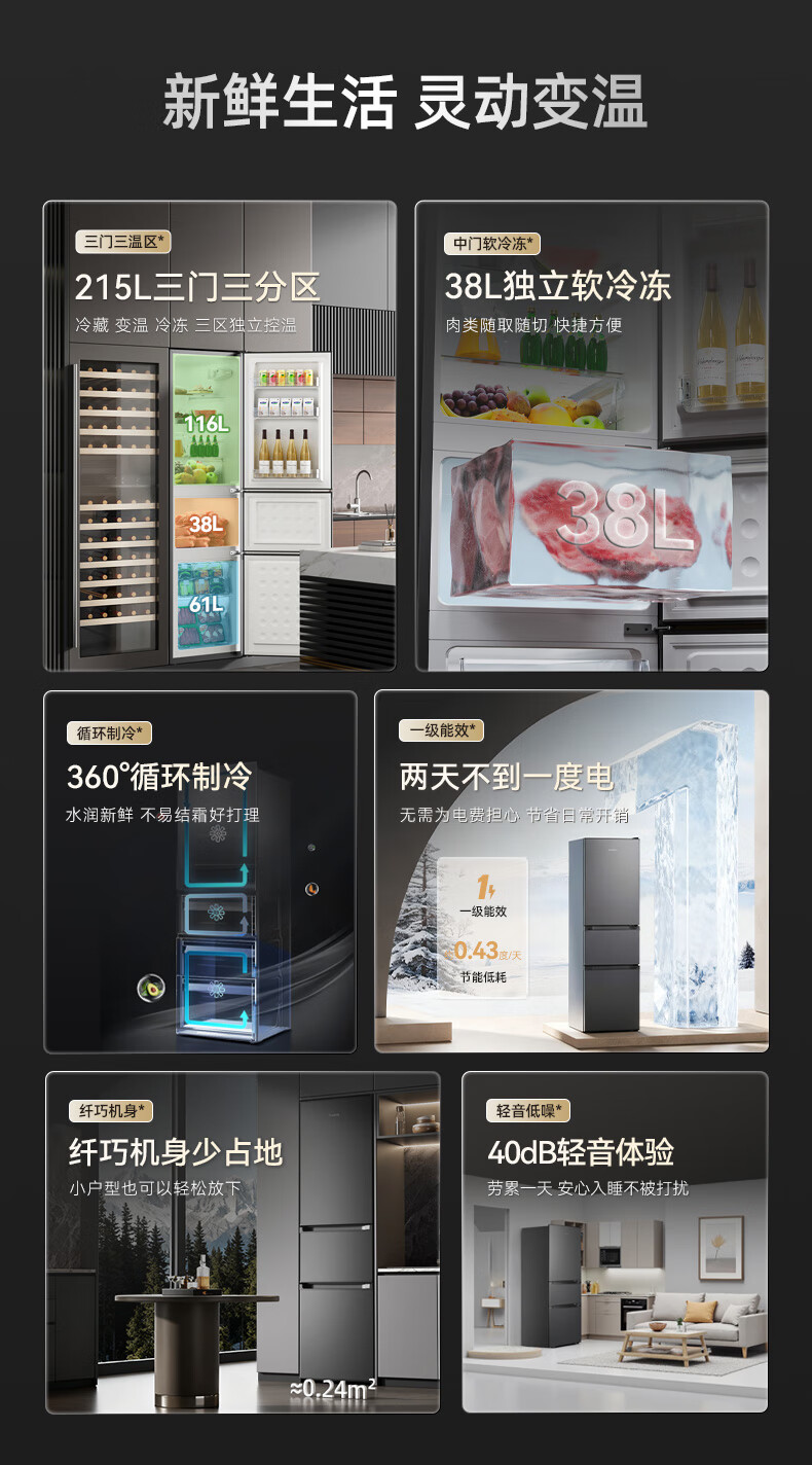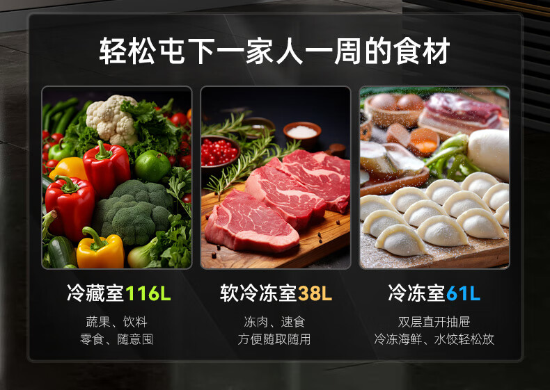 Royalstar 215 liter three-door refrigerator household large-capacity small and medium-sized three-door energy-saving low-noise rental mid-door soft freezing ultra-thin micro-frost bass preservation refrigerator trade-in 215 liters first-class energy efficiency two days of electricity titanium dark gray