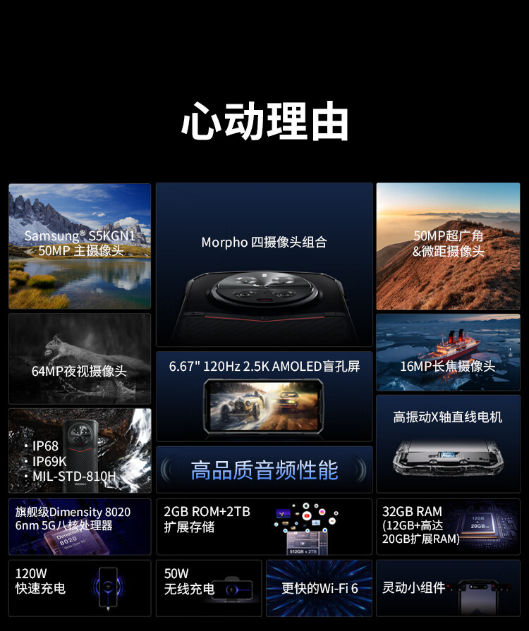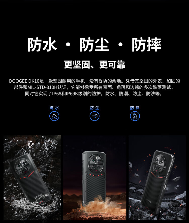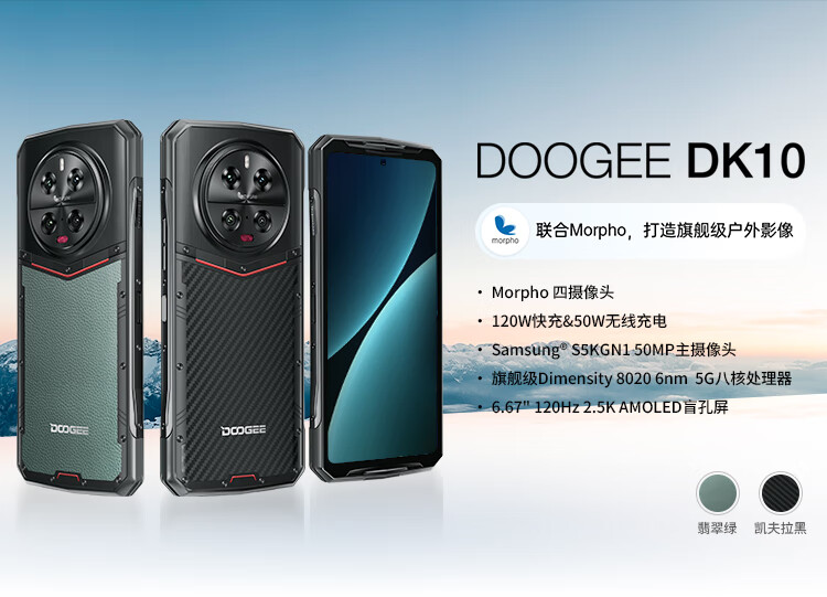 DOOGEE Xuanwu 10 outdoor three-proof 5G full network smartphone IP68 waterproof and drop-proof 120w fast charge 120Hz high refresh screen supports 50w wireless charging Kevlar (black) 32GB+512GB