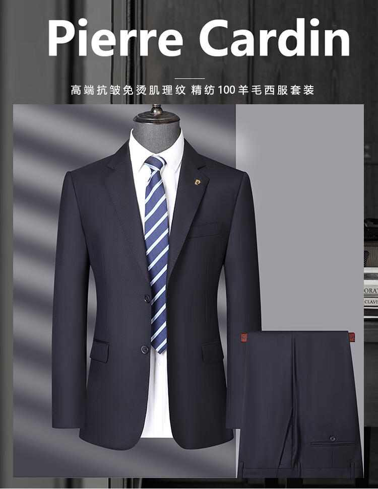Pierre Cardin worsted pure wool suit men's high-end middle-aged men's business formal wedding suit navy blue L 175 size recommended 130 Jin Jin equals 0.5 kg -140 Jin Jin equals 0.5 kg