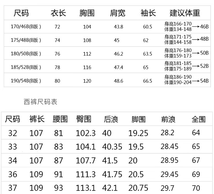 China (cm) 160-165/84-86 165-170 / 88-90 167-172 / 92-96 168-173 / 98-102 170-176 / 106-110