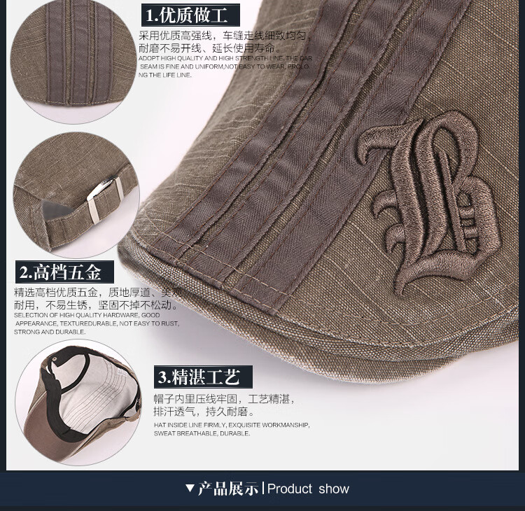 JINGJINGYI (JINGJINGYI) Korean Spring and Summer Beret Hat Men's Sun Protection Summer Visor Hat British Retro Plaid Peaked Cap Outdoor Leisure Advance Coffee Adjustable
