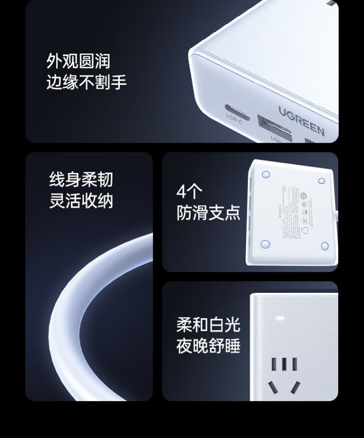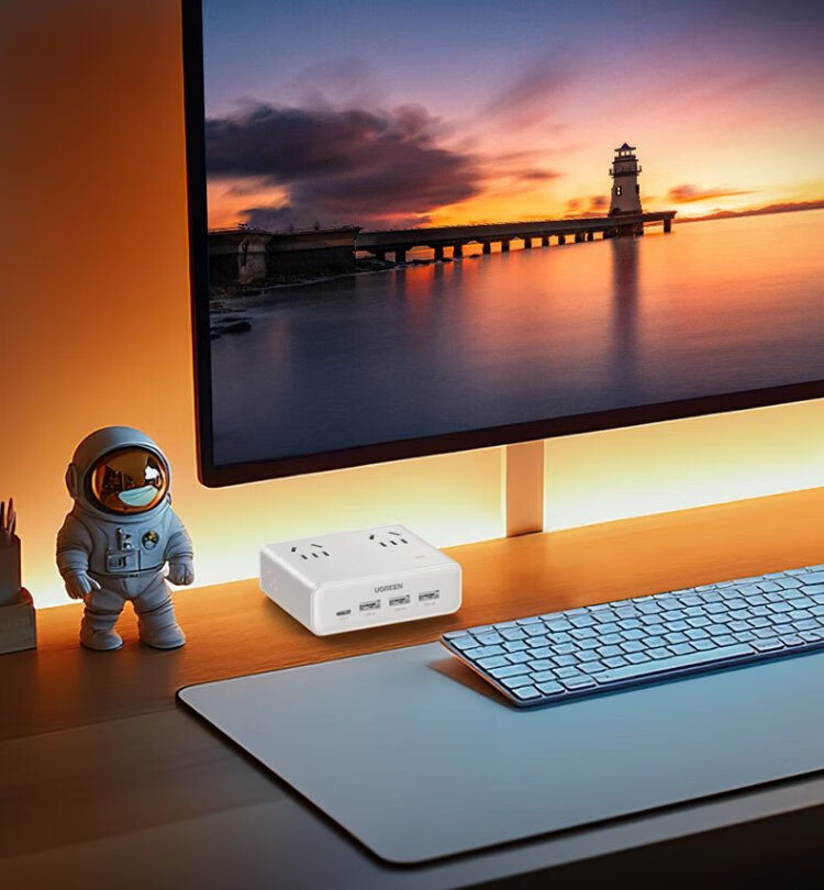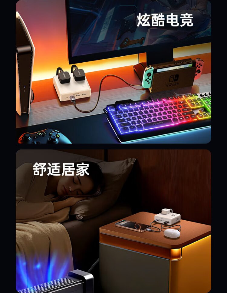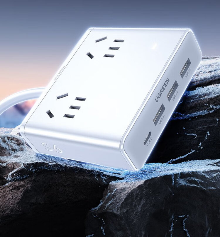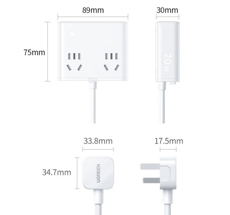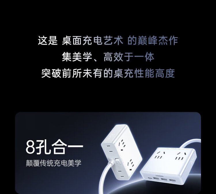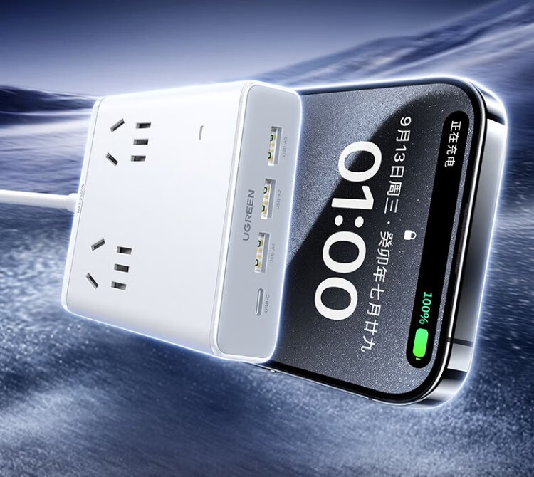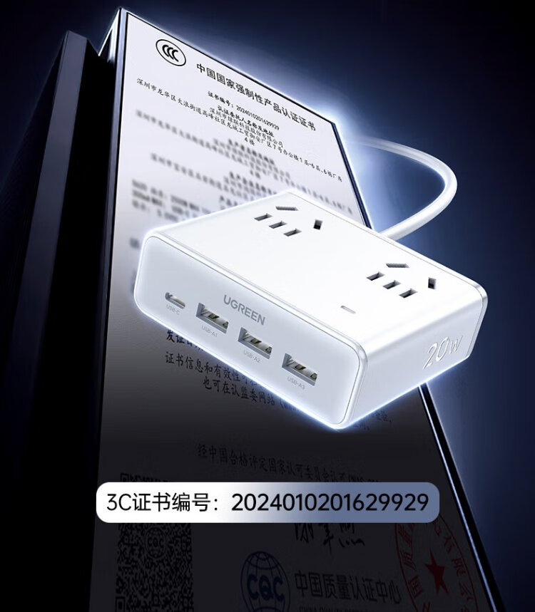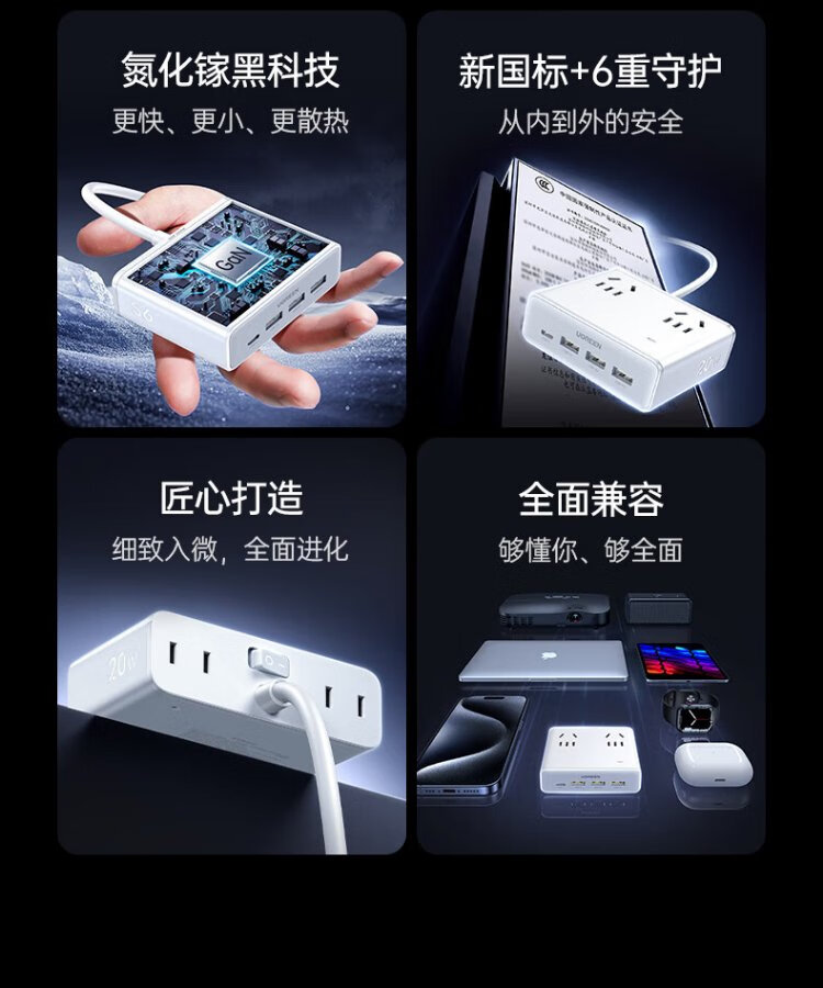 Green Alliance 3C certified plug strip/socket/gallium nitride 20W magic box fast charging switch portable power strip multi-functional suitable for Apple Xiaomi mobile phone dormitory home live broadcast room hot recommendation 20W 8 holes in one total length 1.5 meters