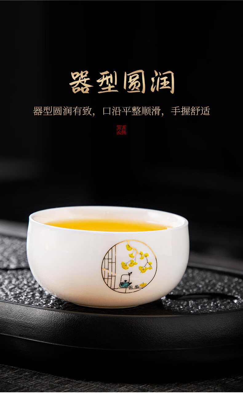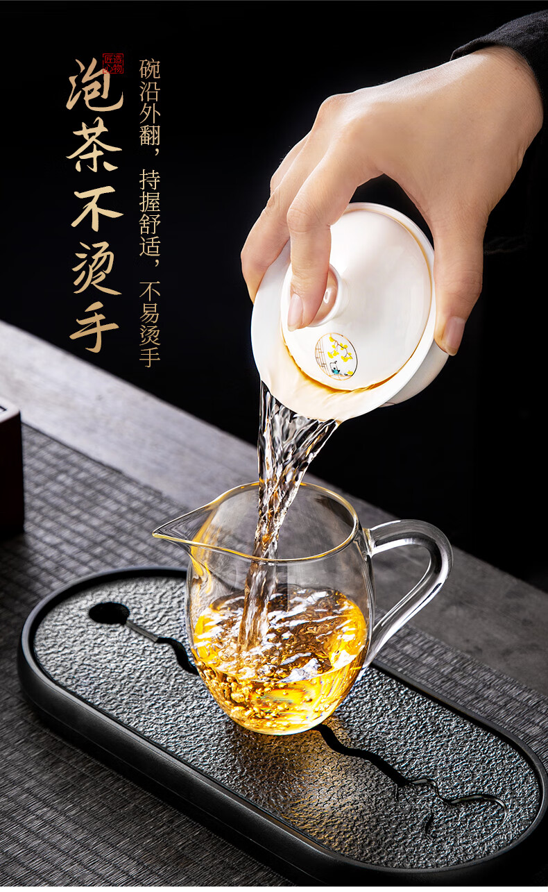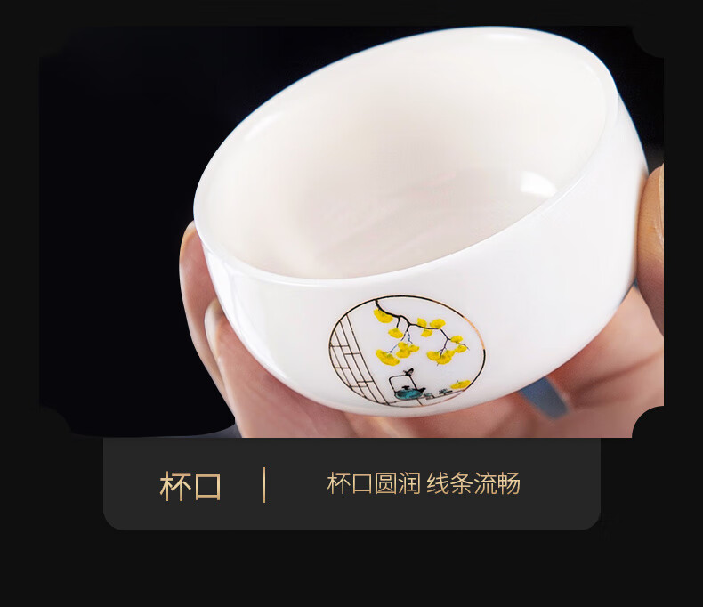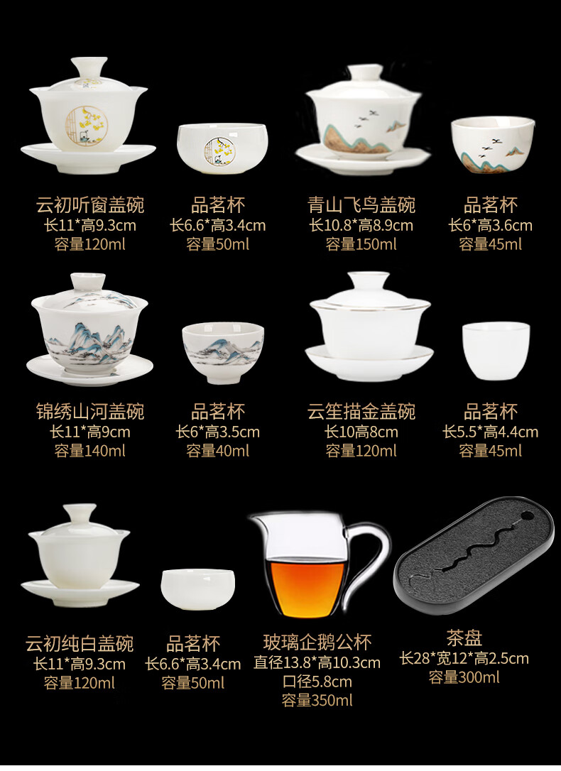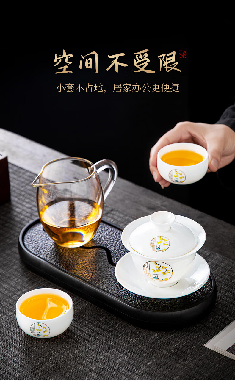 Xiangye Mutton Fat Jade Kung Fu Tea Set Sancai Covered Bowl Three-piece Set with Tea Tray Complete Set for Guests to Make Teapot and Drink Tea Cup Yunchu Pure White Covered Bowl Two-cup 4-piece Set + Gourd Tray