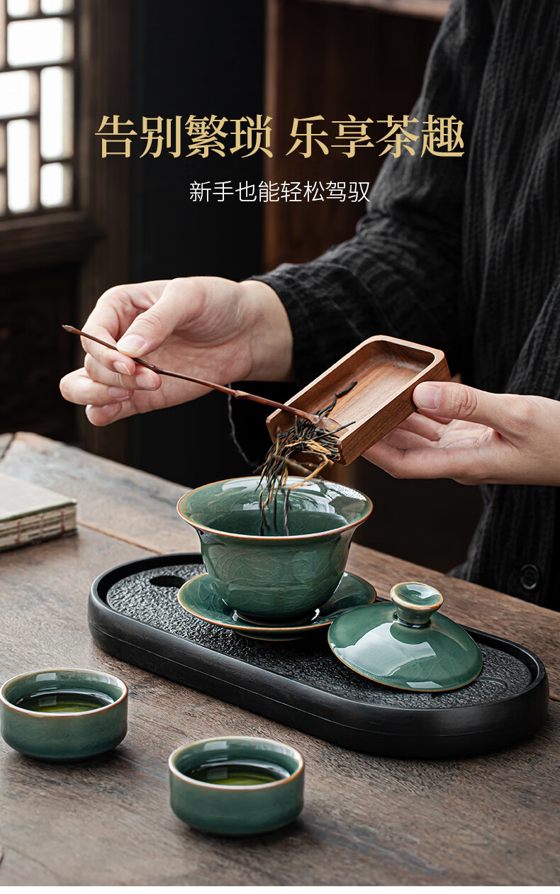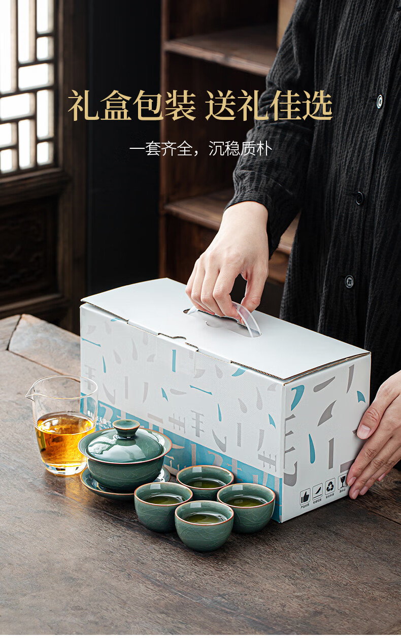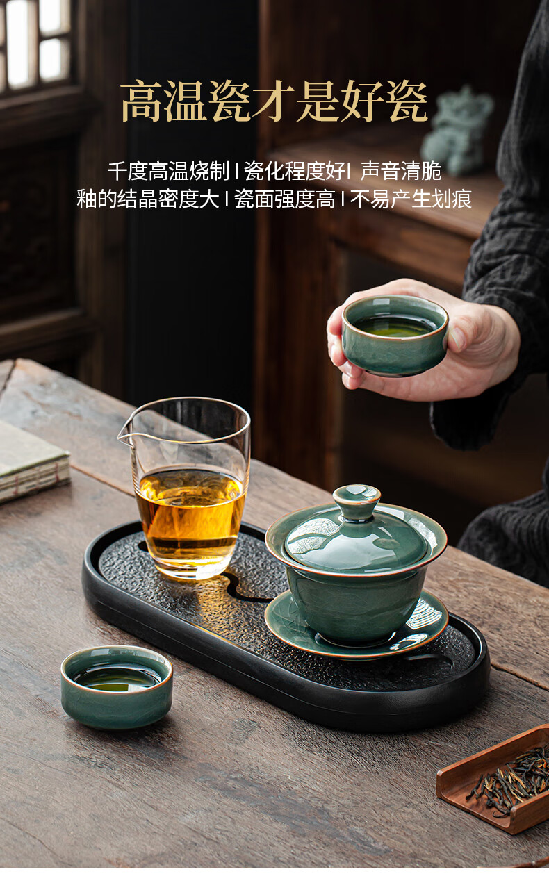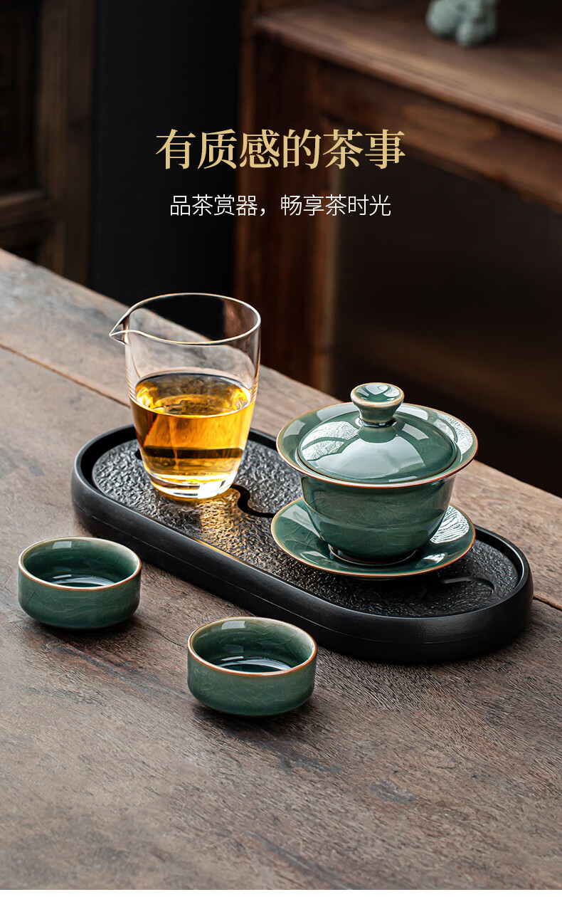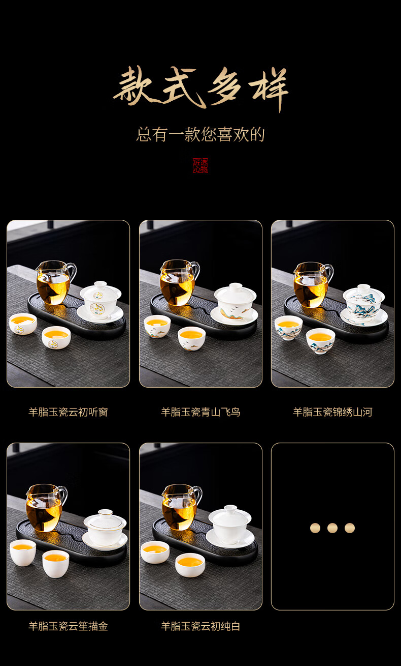 Xiangye Mutton Fat Jade Kung Fu Tea Set Sancai Covered Bowl Three-piece Set with Tea Tray Complete Set for Guests to Make Teapot and Drink Tea Cup Yunchu Pure White Covered Bowl Two-cup 4-piece Set + Gourd Tray