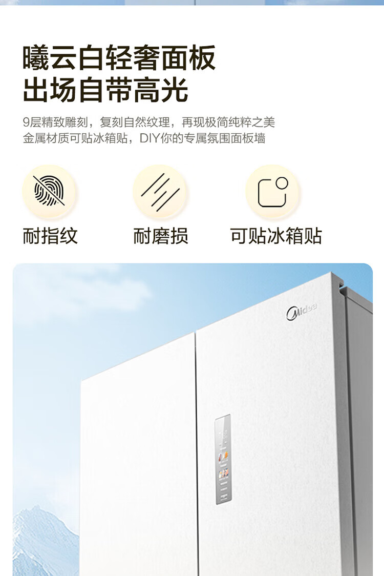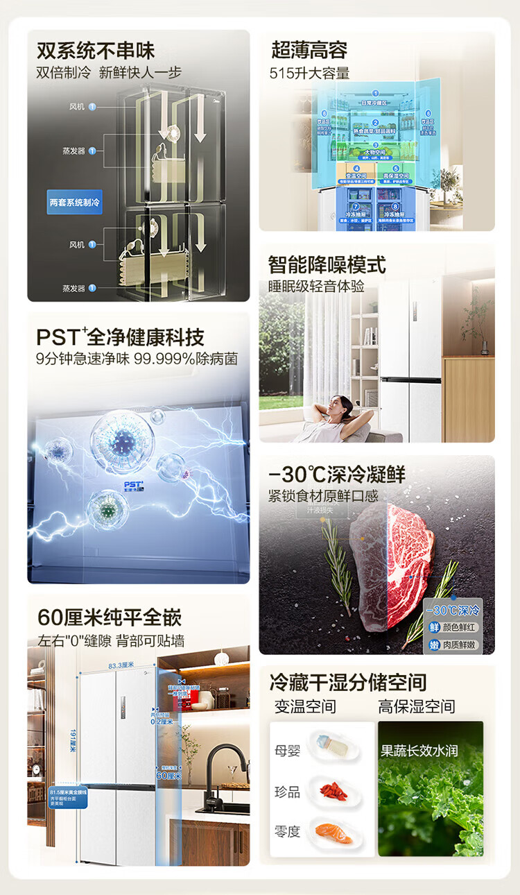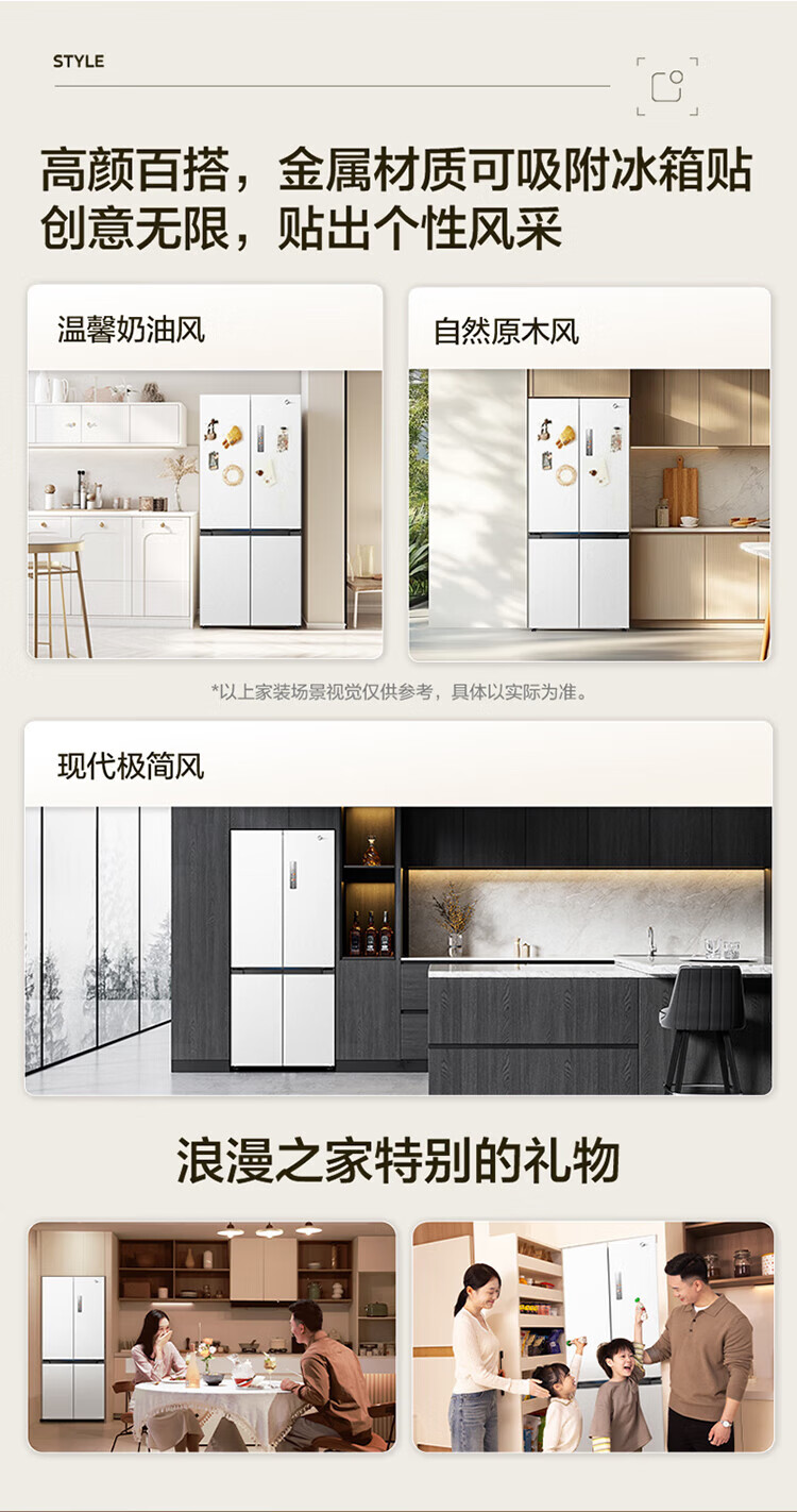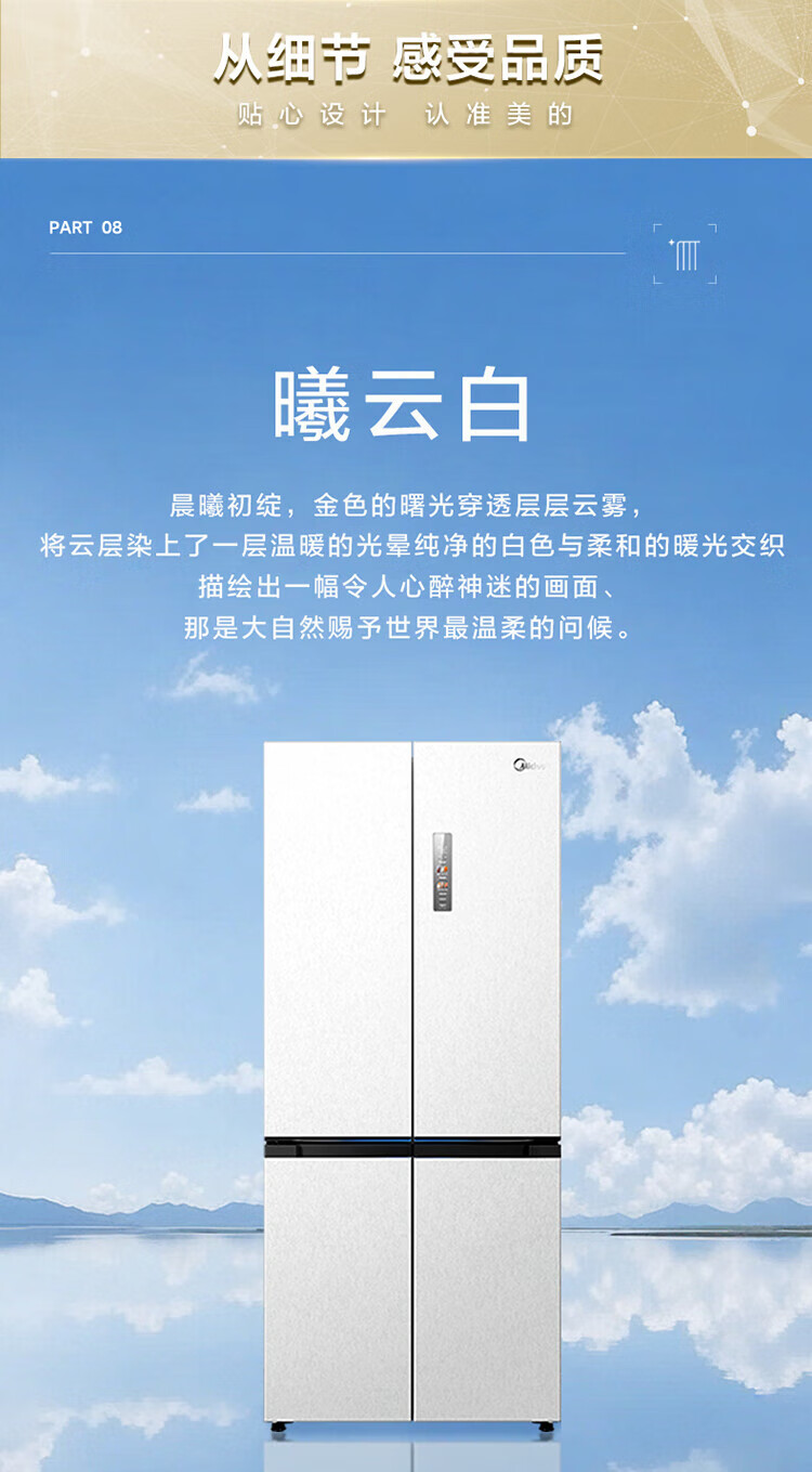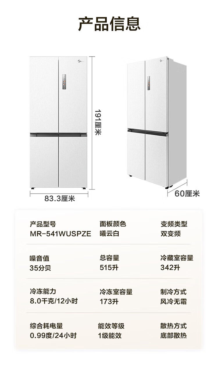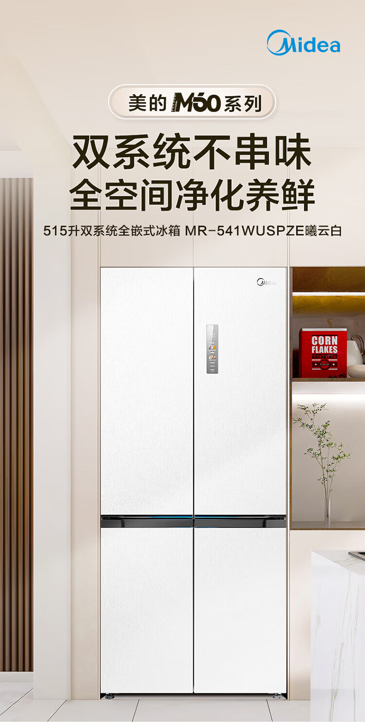 Midea M60 Mini Refrigerator 541 Cross Door Refrigerator 515L Dual System Large Capacity Flat Screen Fully Embedded Sterilization and Deodorization Level One Household White MR-541WUSPZE National Subsidy White