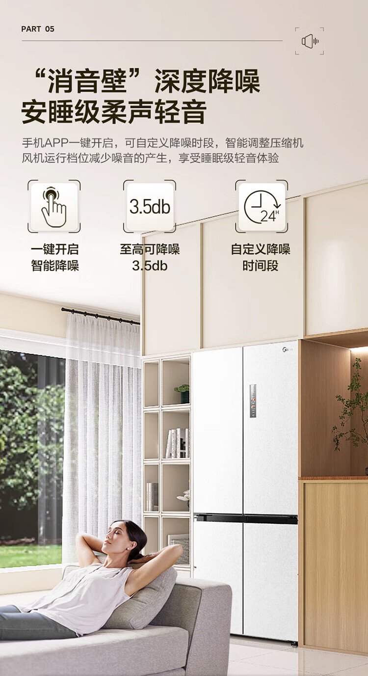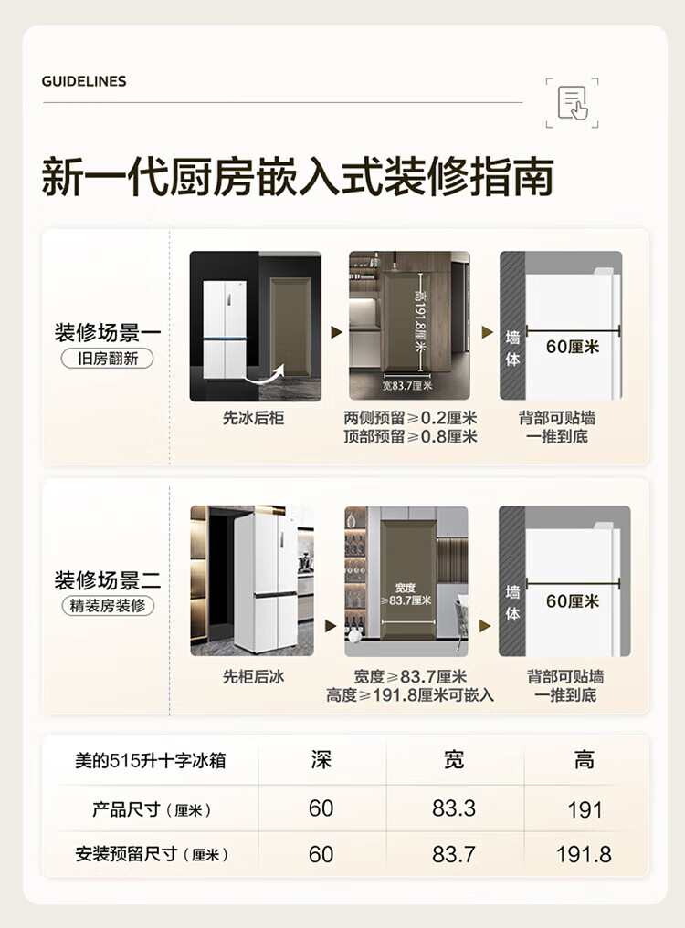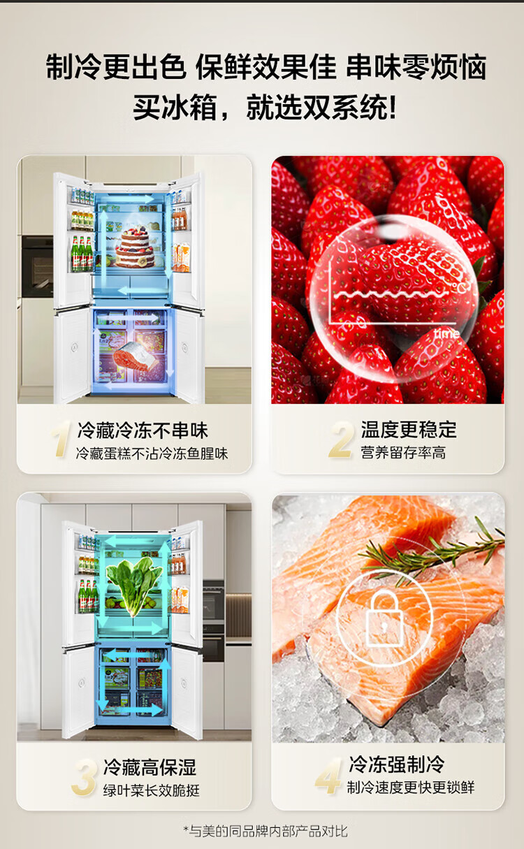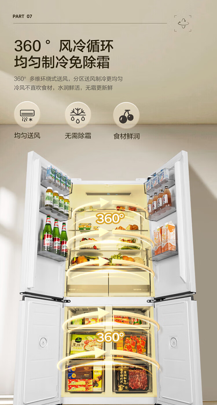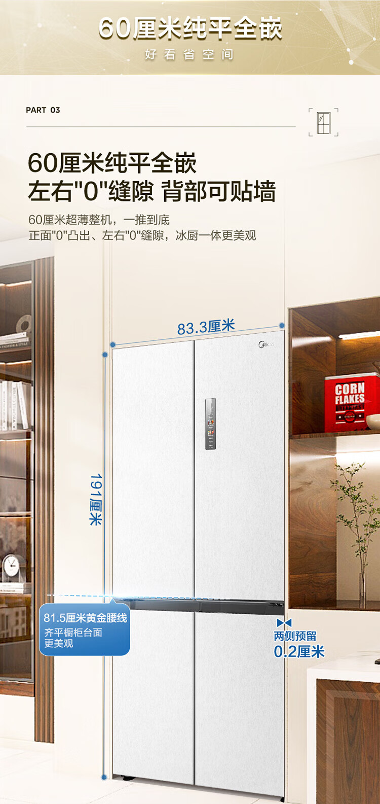 Midea M60 Mini Refrigerator 541 Cross Door Refrigerator 515L Dual System Large Capacity Flat Screen Fully Embedded Sterilization and Deodorization Level One Household White MR-541WUSPZE National Subsidy White