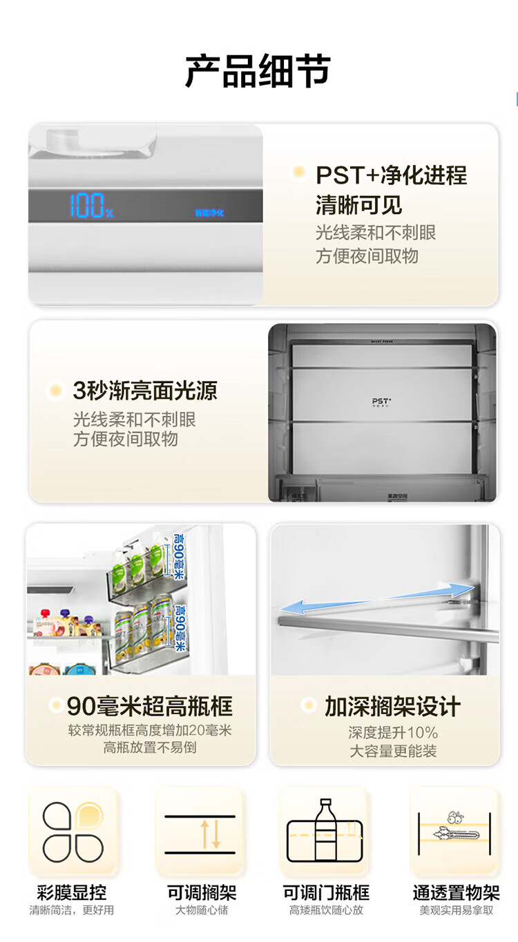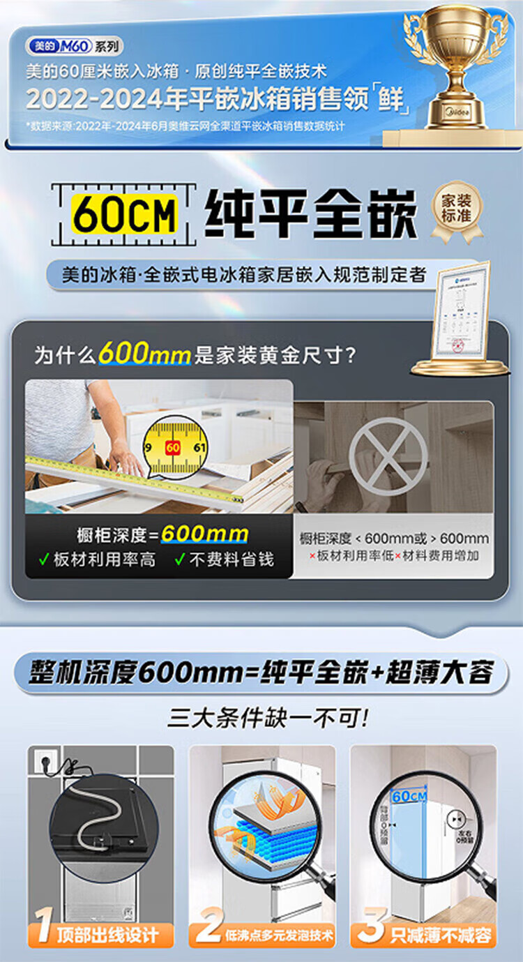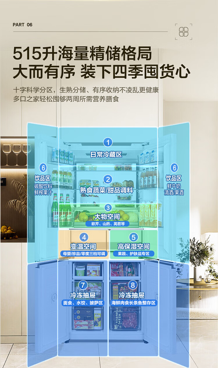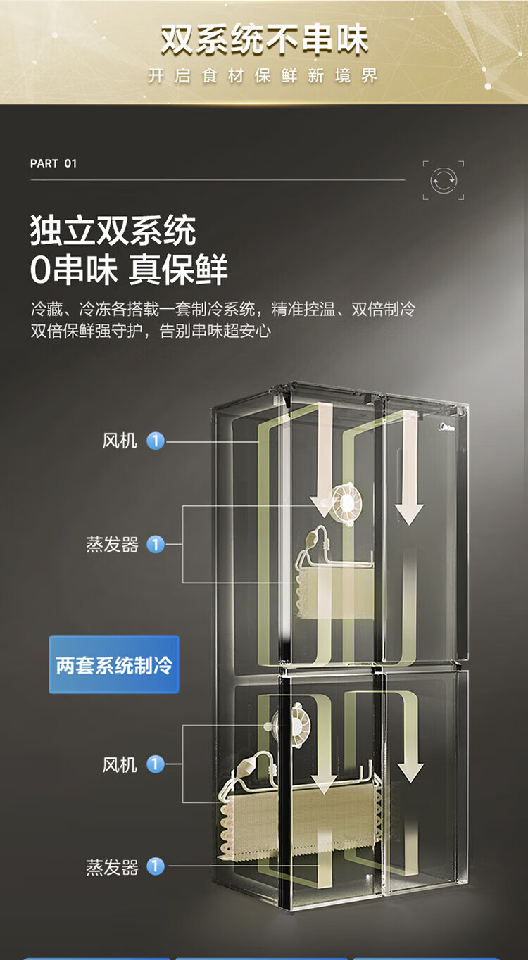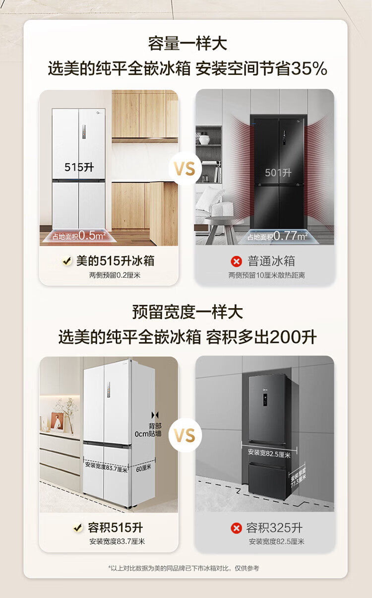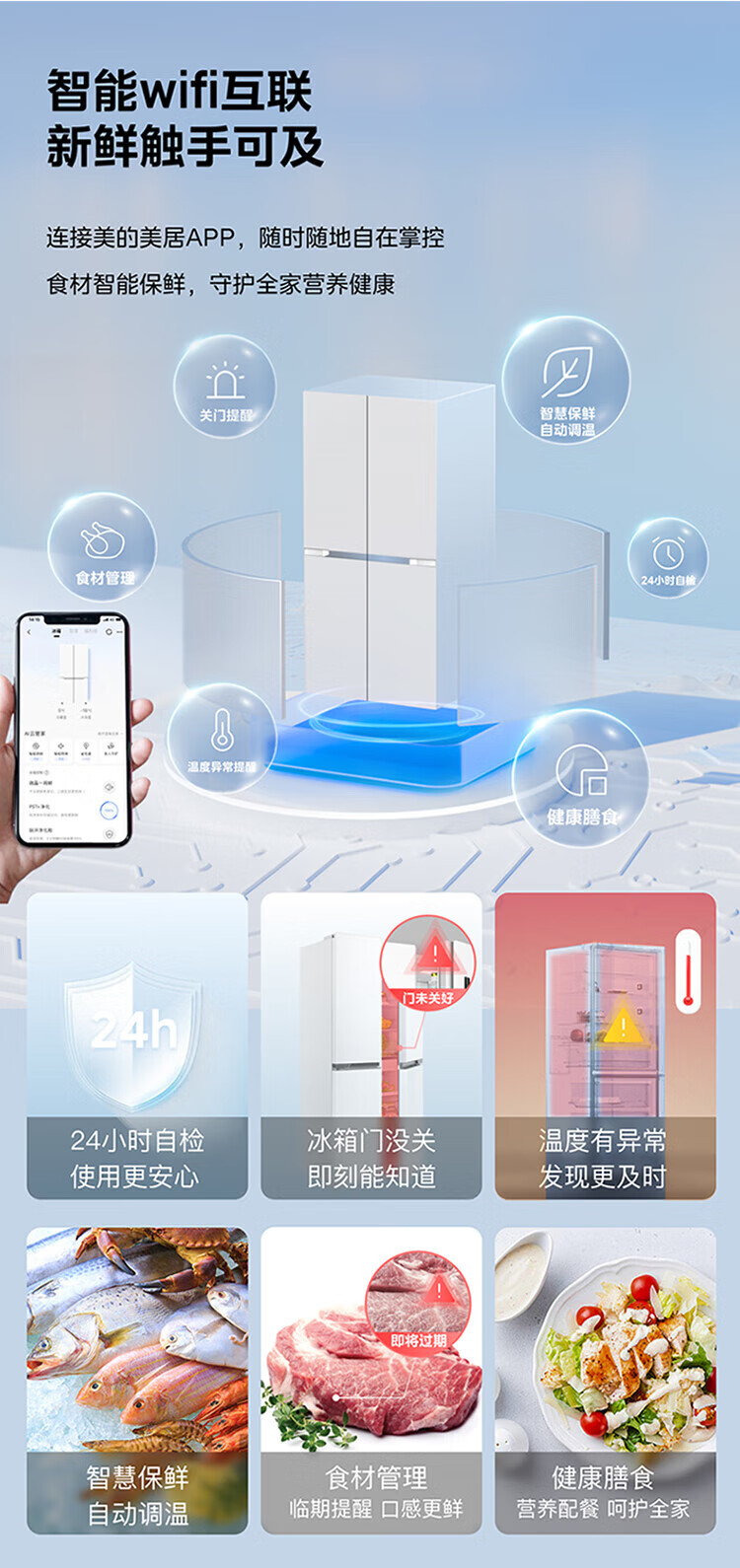 Midea M60 Mini Refrigerator 541 Cross Door Refrigerator 515L Dual System Large Capacity Flat Screen Fully Embedded Sterilization and Deodorization Level One Household White MR-541WUSPZE National Subsidy White