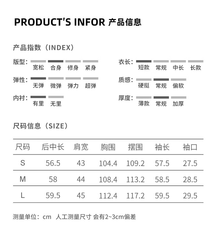 China (cm) 160-165/84-86 165-170 / 88-90 167-172 / 92-96 168-173 / 98-102 170-176 / 106-110