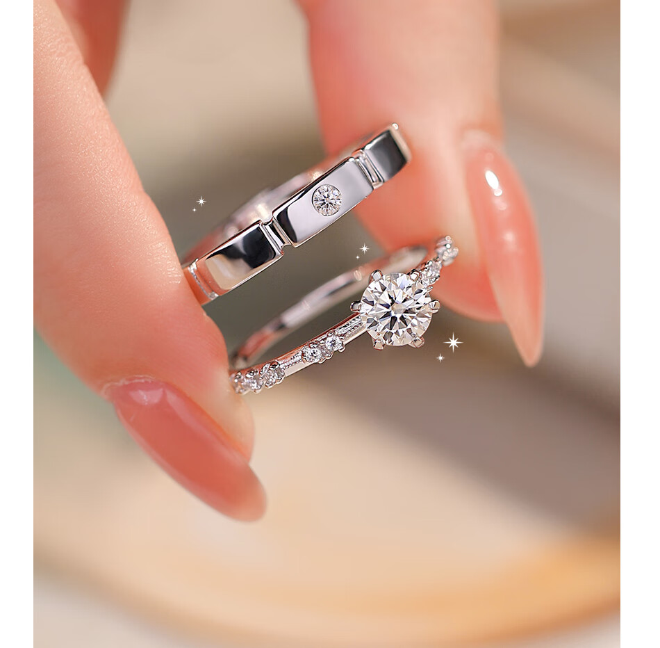 MZMZ Platinum Ring pt950 Platinum Moissanite Knot Engagement Fashion Ring Valentine's Day Birthday Gift for Girlfriend Same Day/Next Day Delivery - Light Luxury Sugar Cube Love Ring