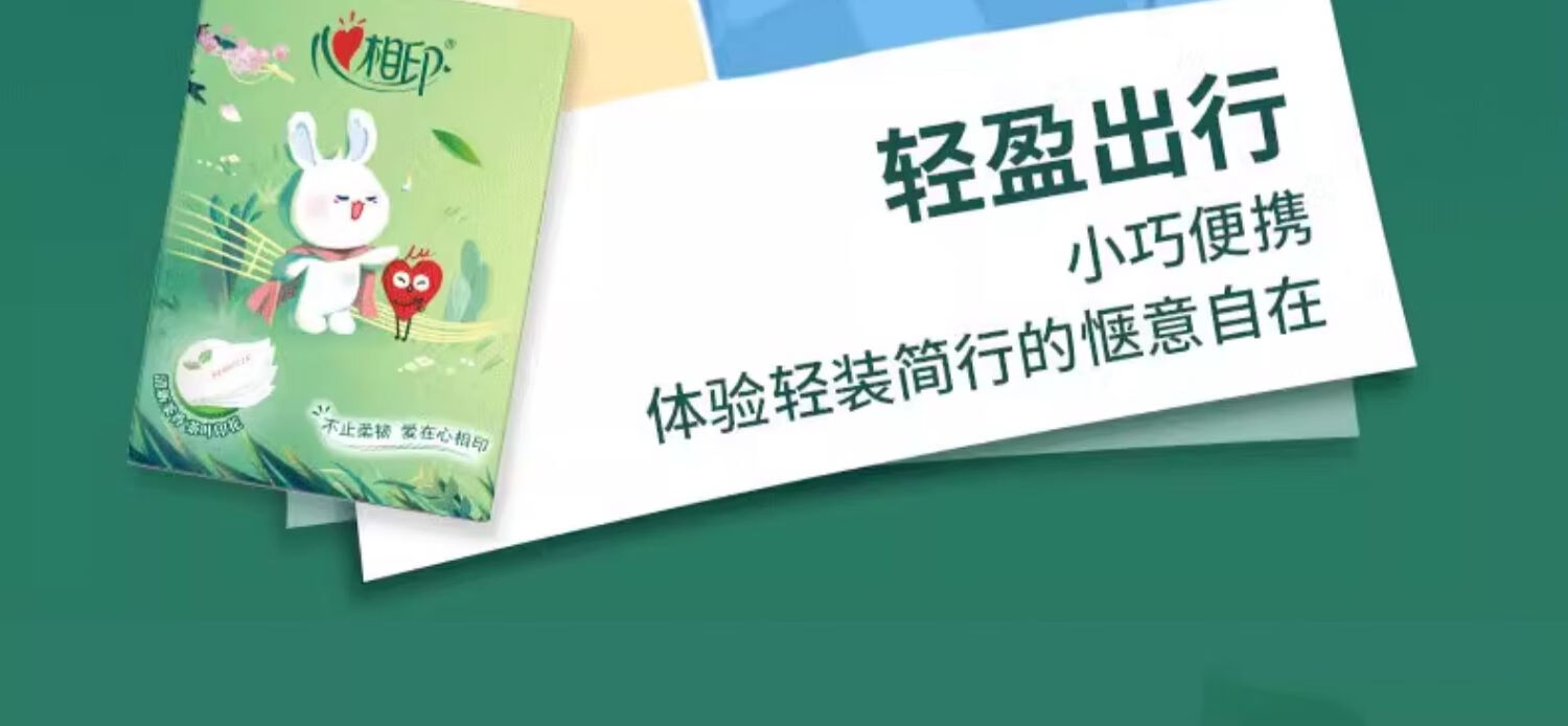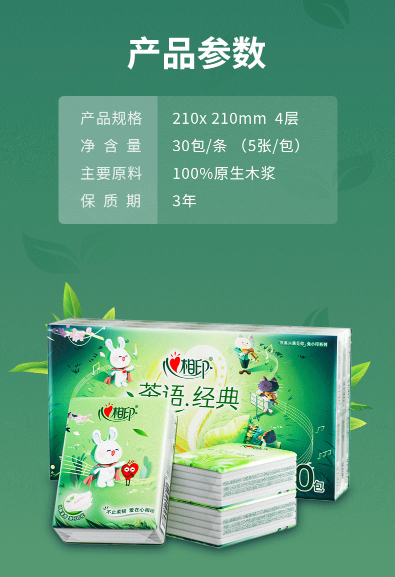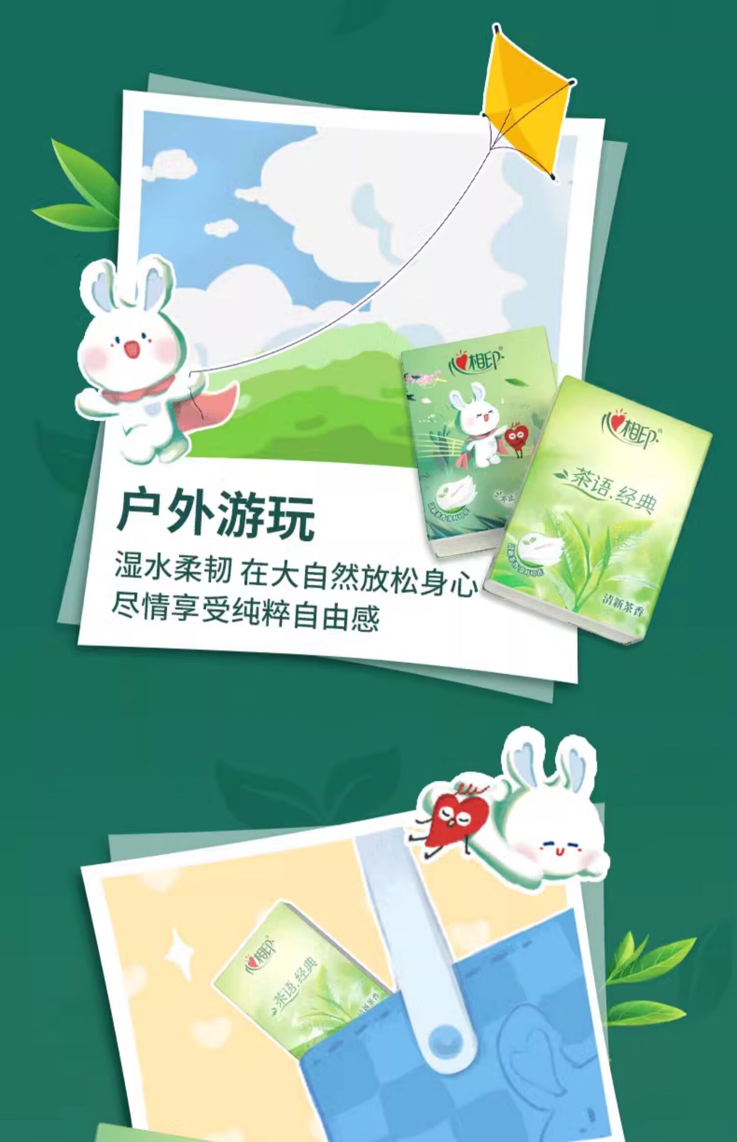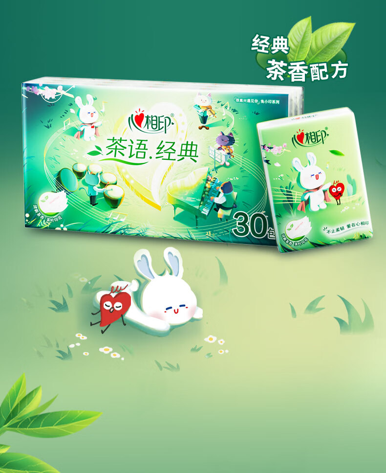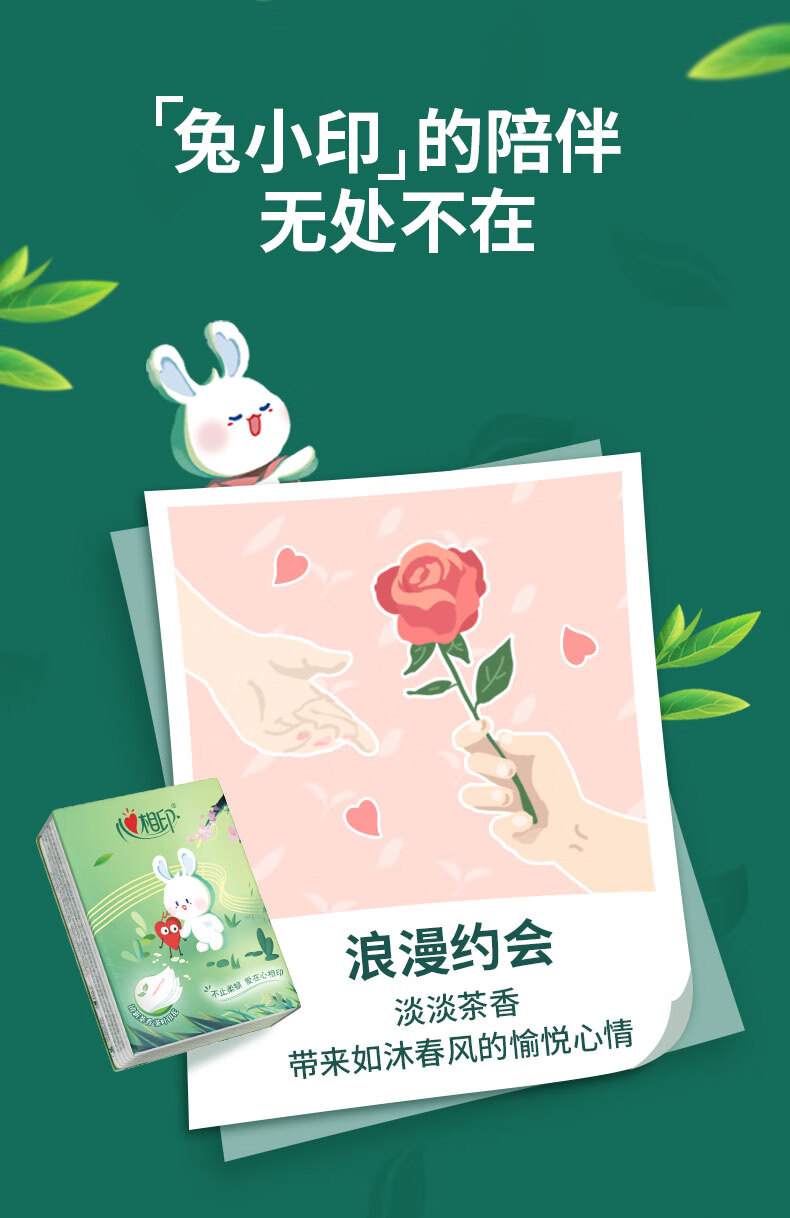 Heart-to-heart seal handkerchief paper packet portable napkin facial tissue toilet paper fresh tea fragrance portable pack 4 layers 5 sheets * 6 packs rabbit small print