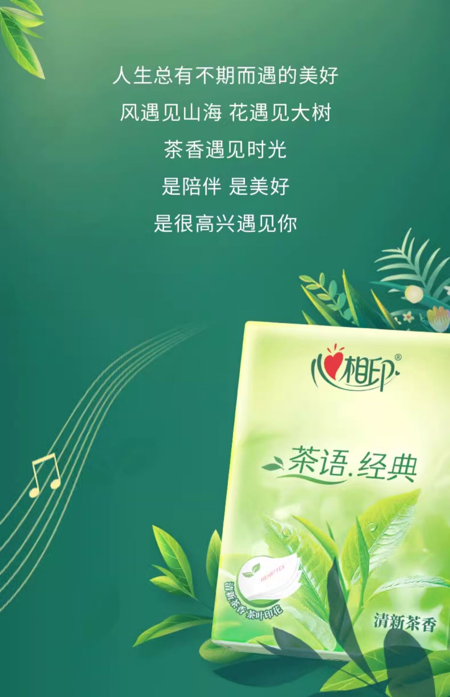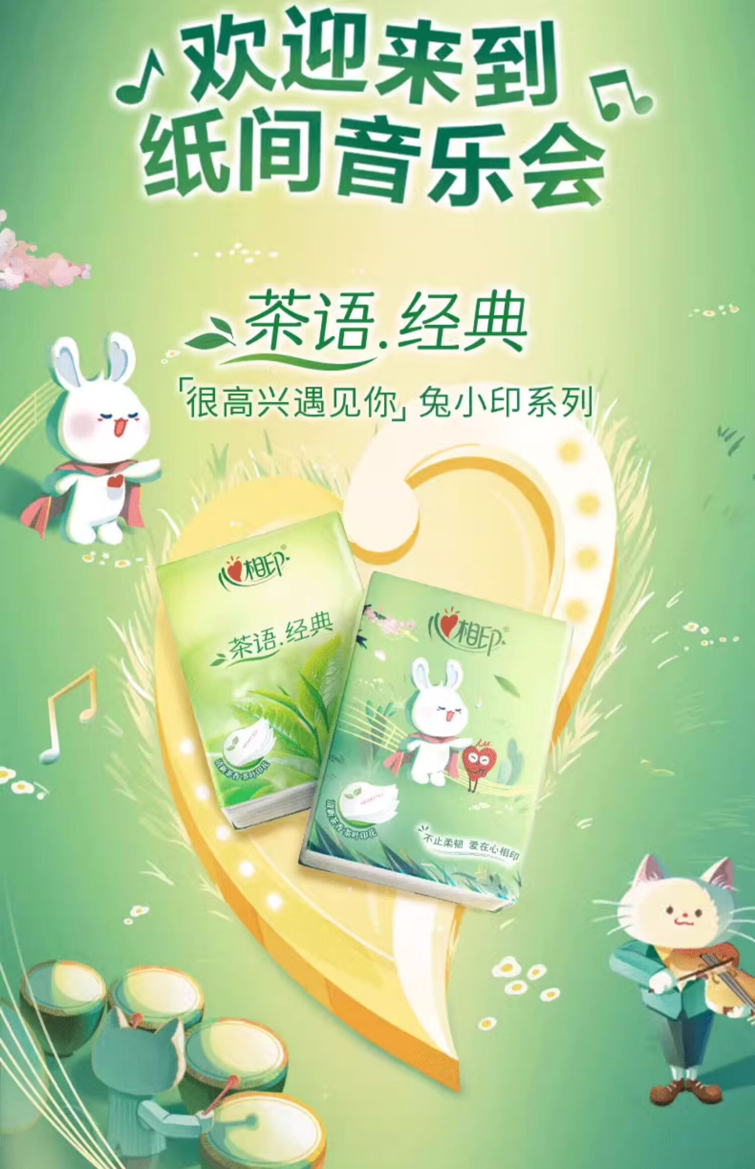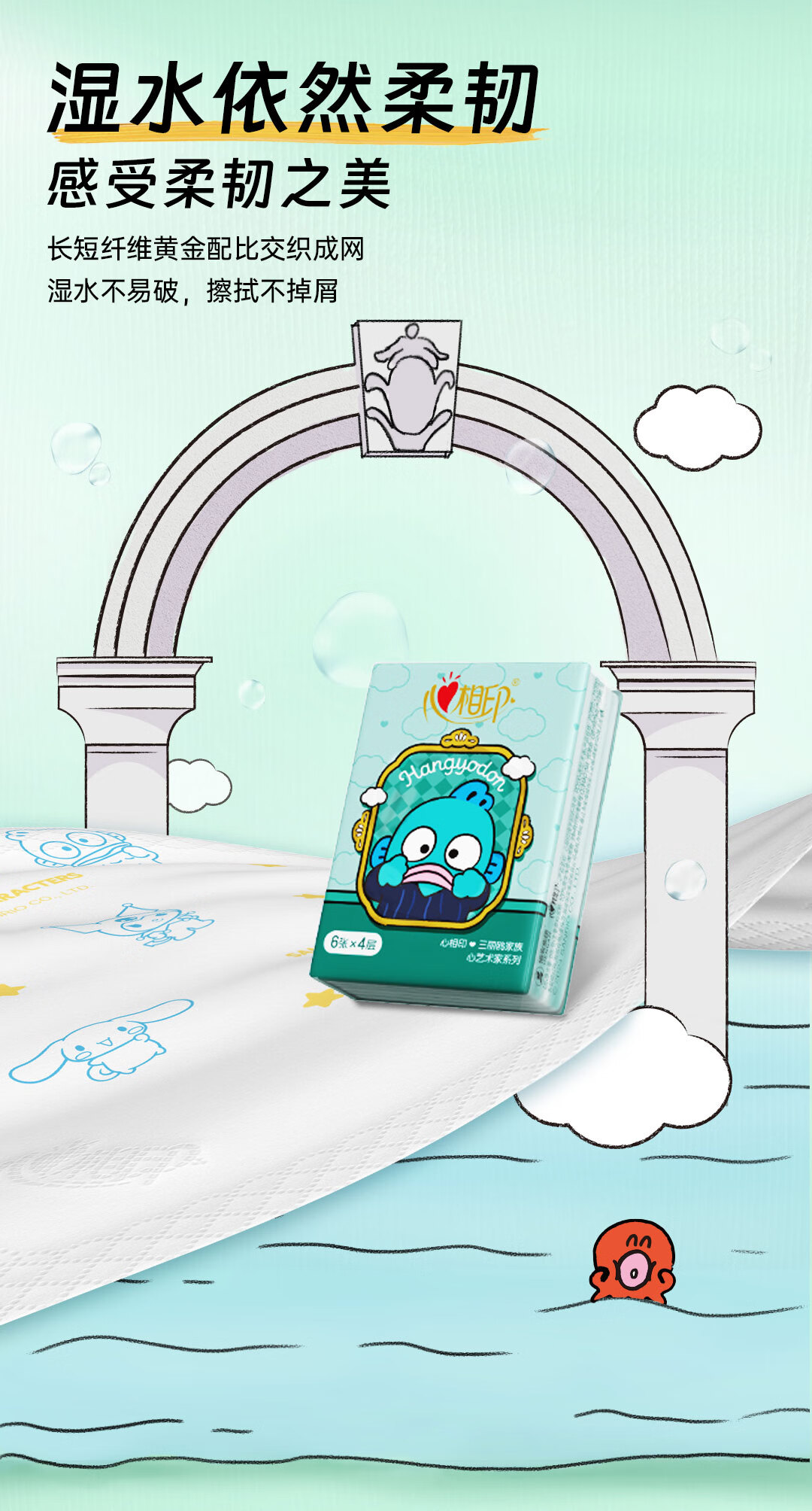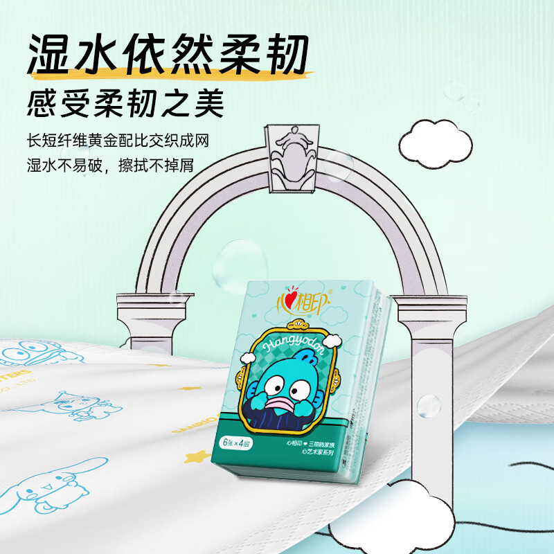 Heart-to-heart seal handkerchief paper packet portable napkin facial tissue toilet paper fresh tea fragrance portable pack 4 layers 5 sheets * 6 packs rabbit small print