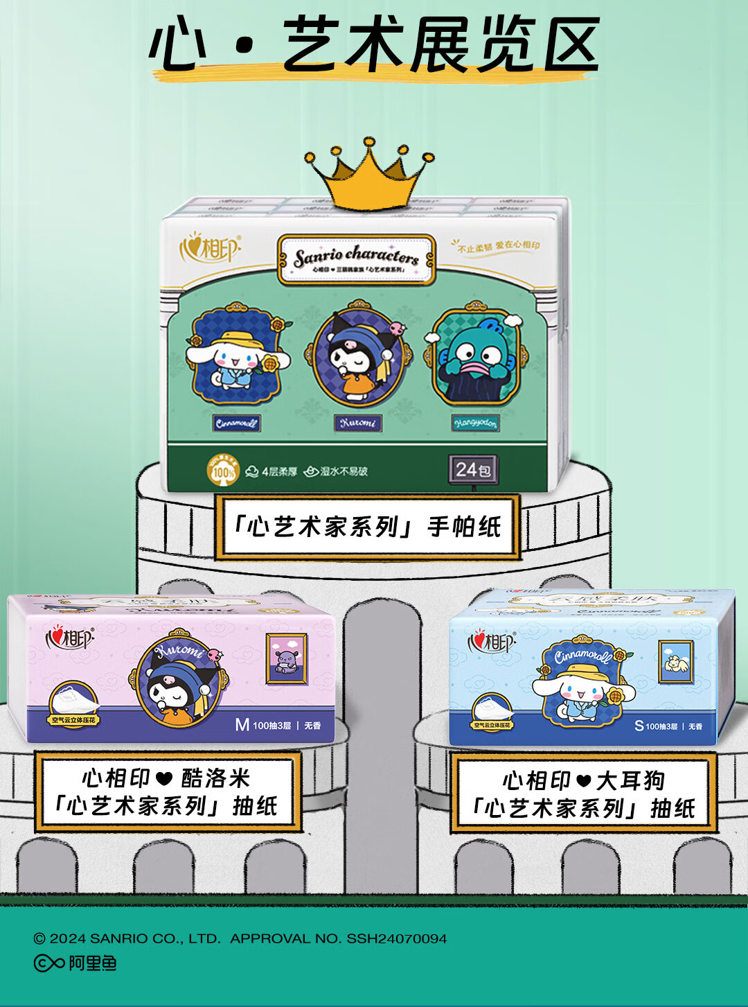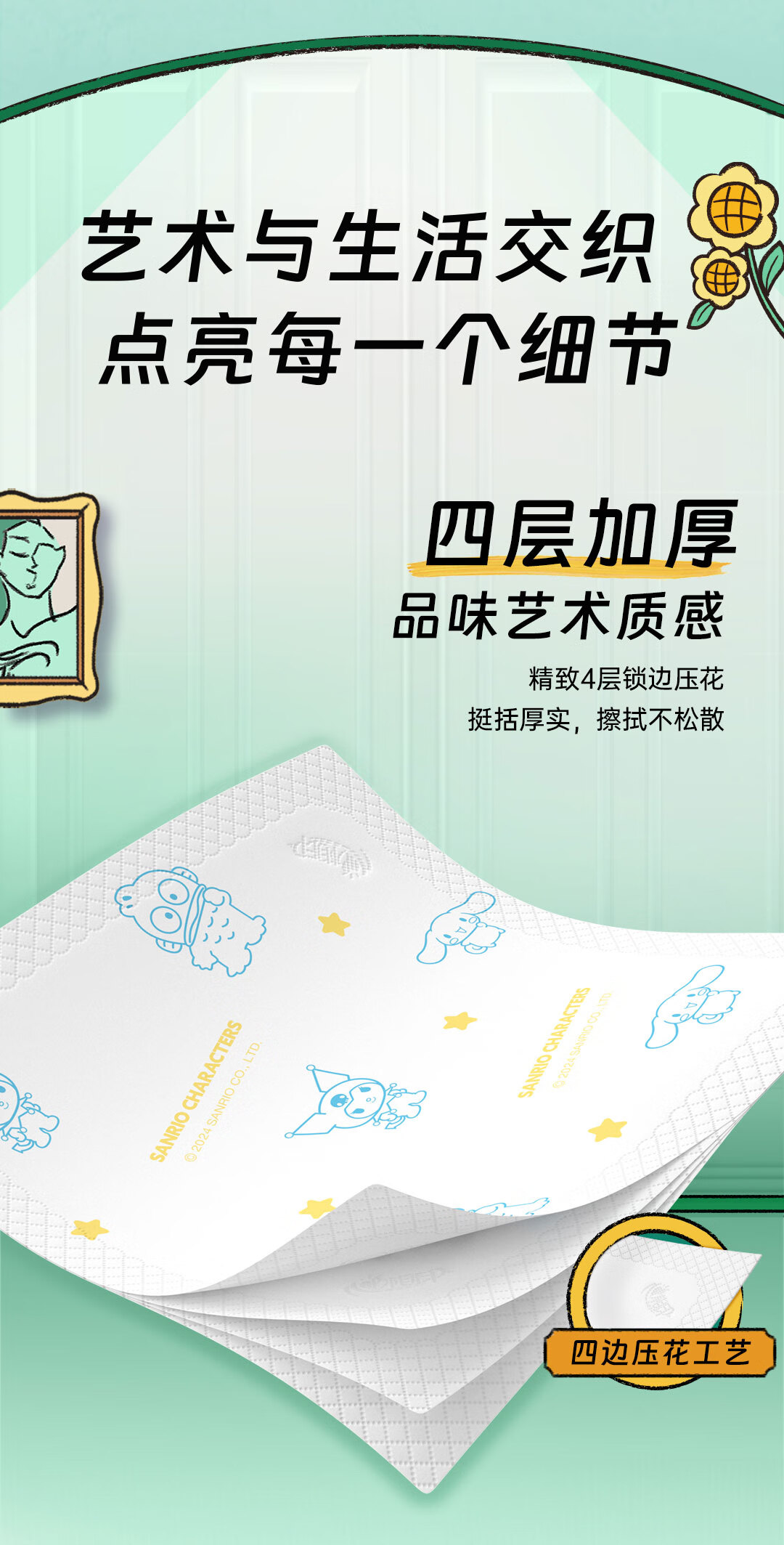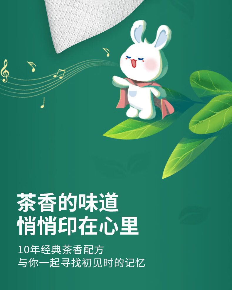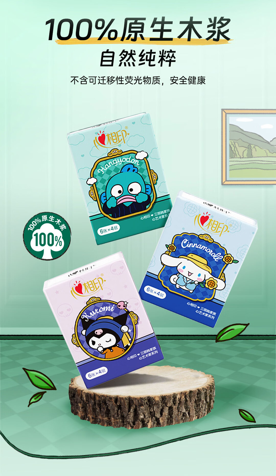 Heart-to-heart seal handkerchief paper packet portable napkin facial tissue toilet paper fresh tea fragrance portable pack 4 layers 5 sheets * 6 packs rabbit small print
