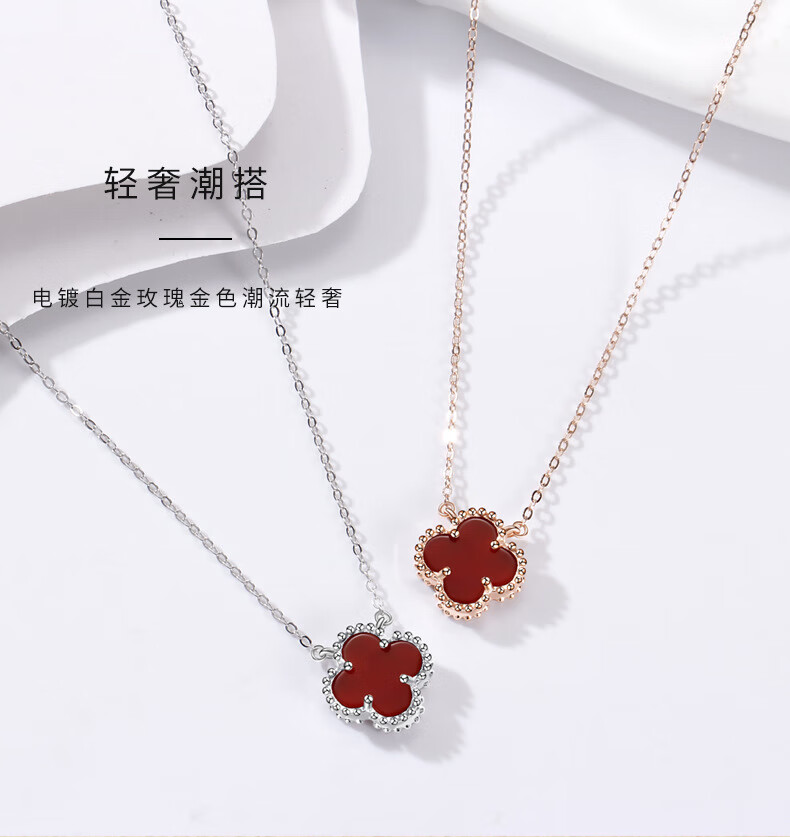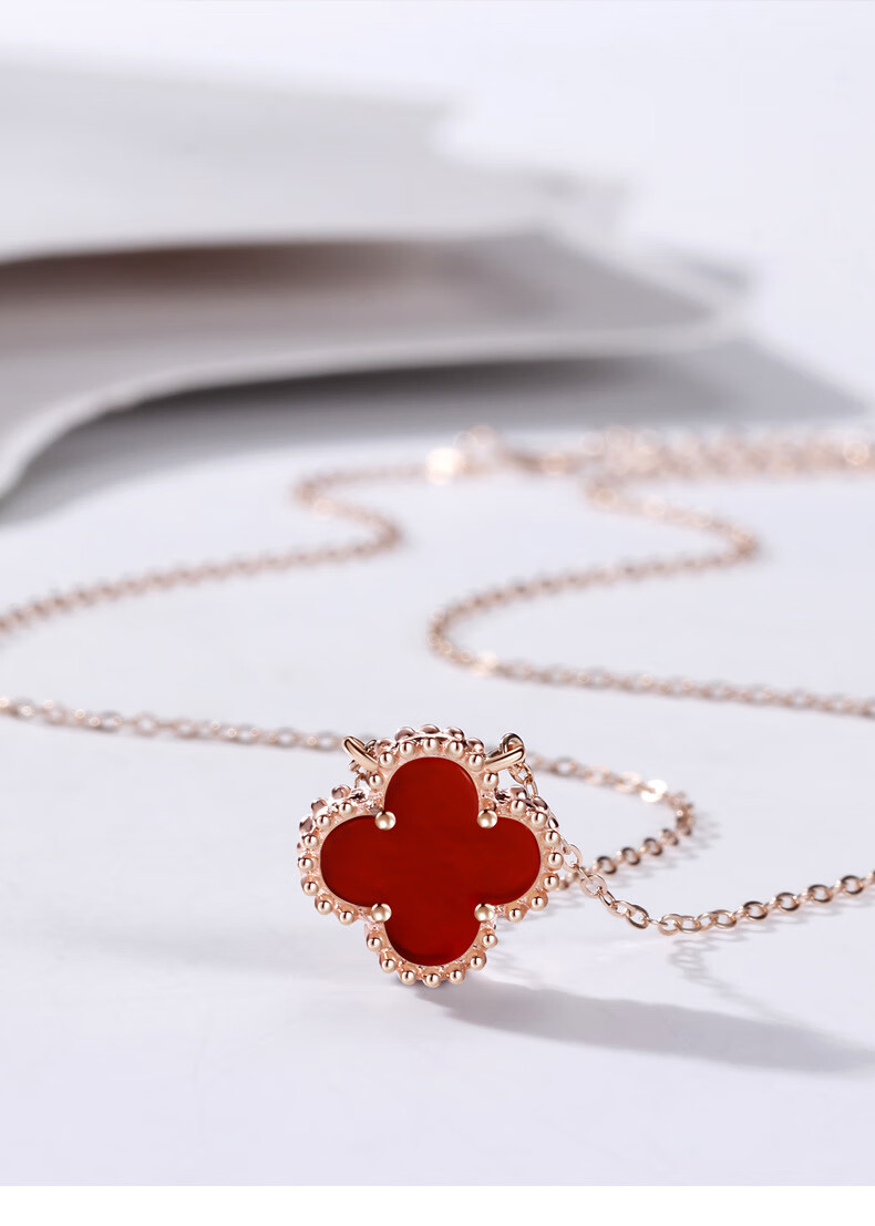 YaoYiZun agate four-leaf clover sterling silver necklace women's Valentine's Day gift light luxury niche birthday gift for wife four-leaf clover red agate white gold