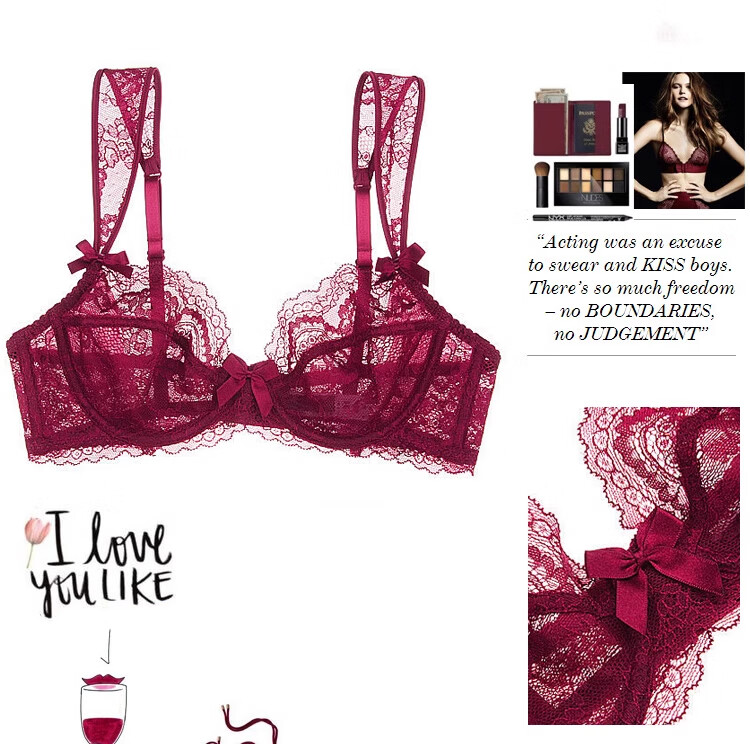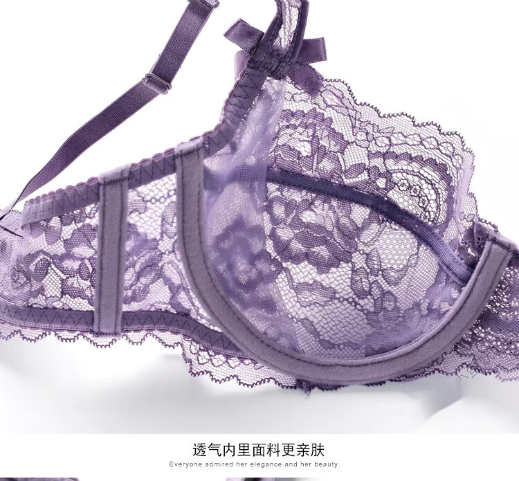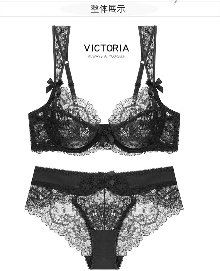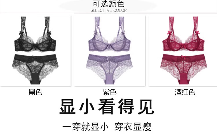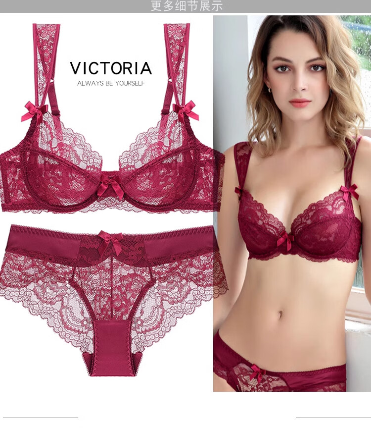 Triumph brand women's sexy lace bra set with wide straps European and American style black thin women's underwear burgundy + gift box + handbag 70A x Default selection of panty size and bra matching