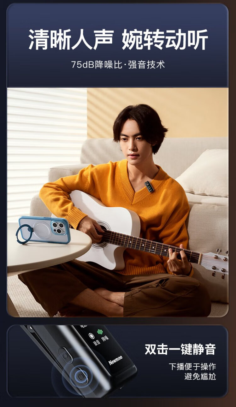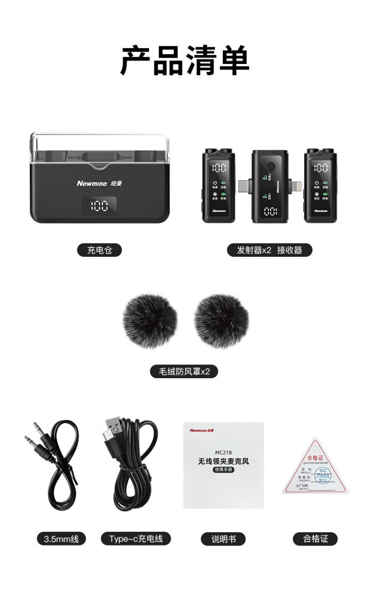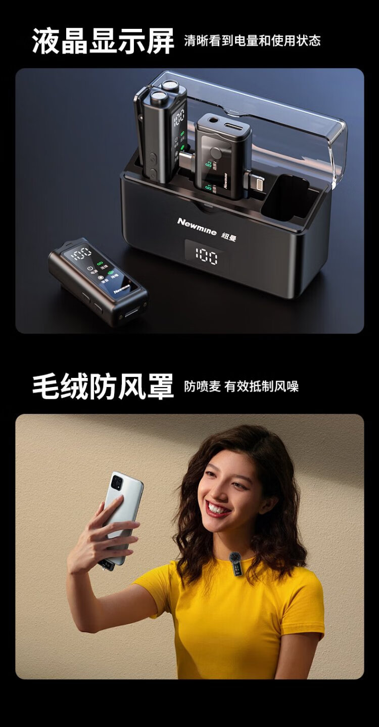 Newman MC218 Wireless Lavalier Microphone Douyin Live Recording Equipment Outdoor Short Video Radio Microphone Mobile Live Broadcast Special Portable Wireless Microphone Professional Noise Reduction Charging Box Version Two-person Version Apple and Android Universal
