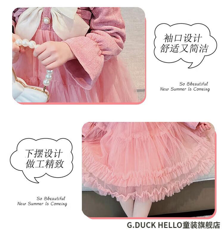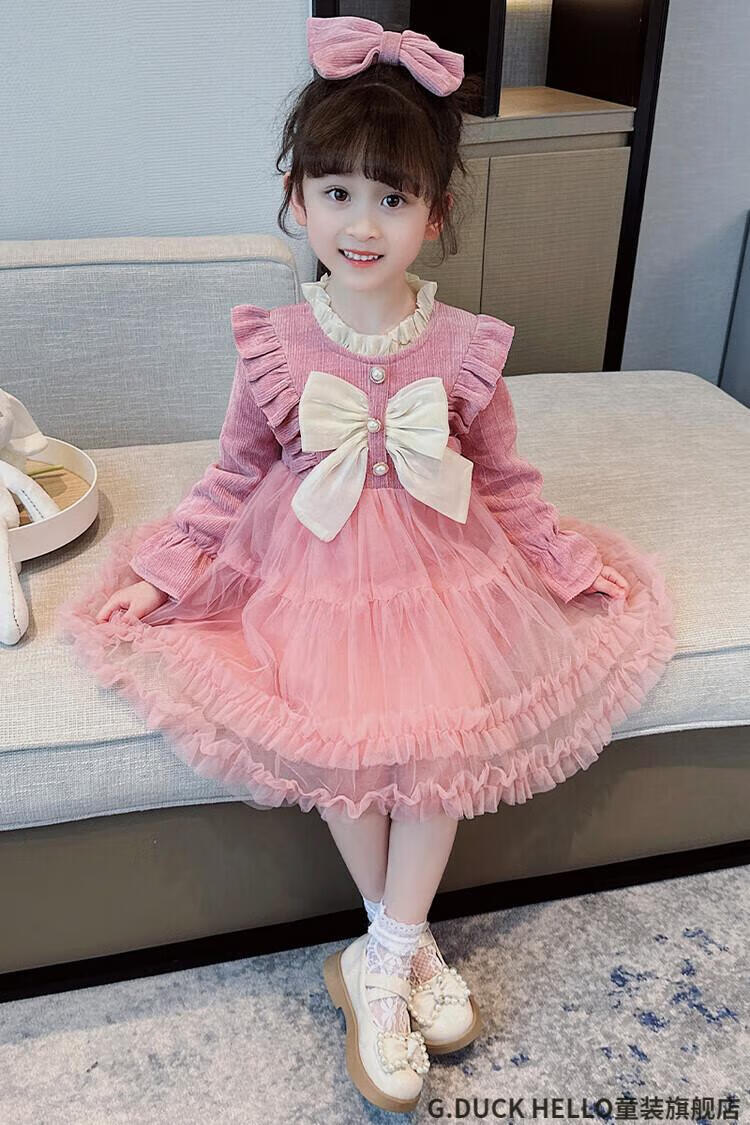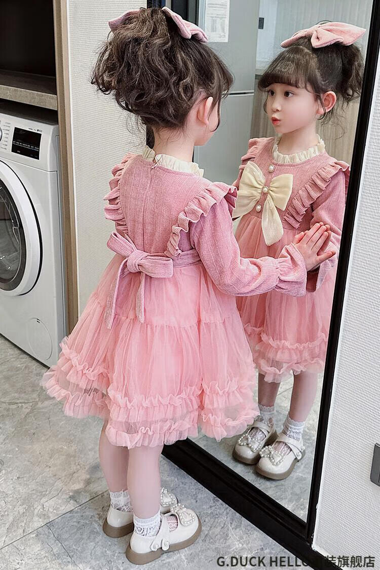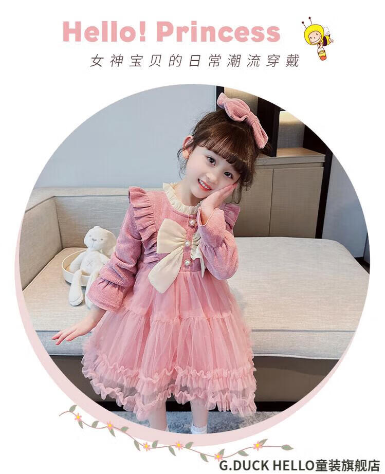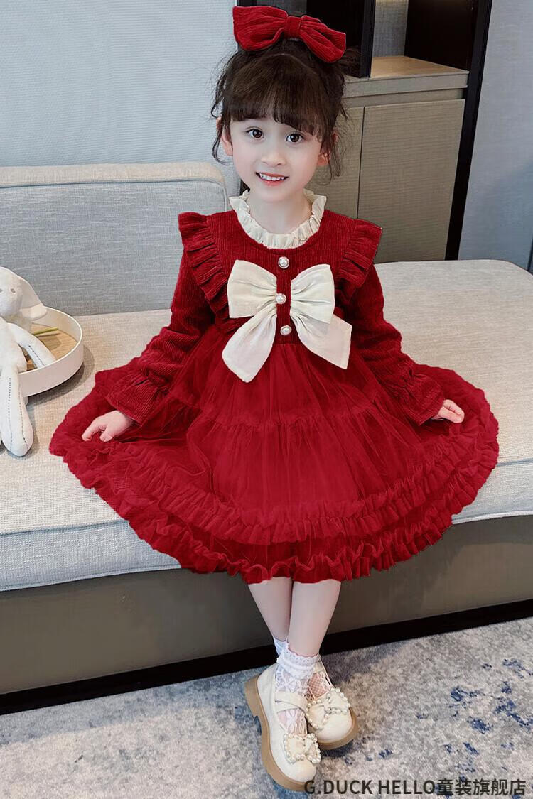 G.duck little yellow duck children's clothing girls' dress autumn and winter velvet children's princess dress small and medium-sized children's fashionable bow skirt burgundy size 100 recommended 2~3 years old 90-100cm cm