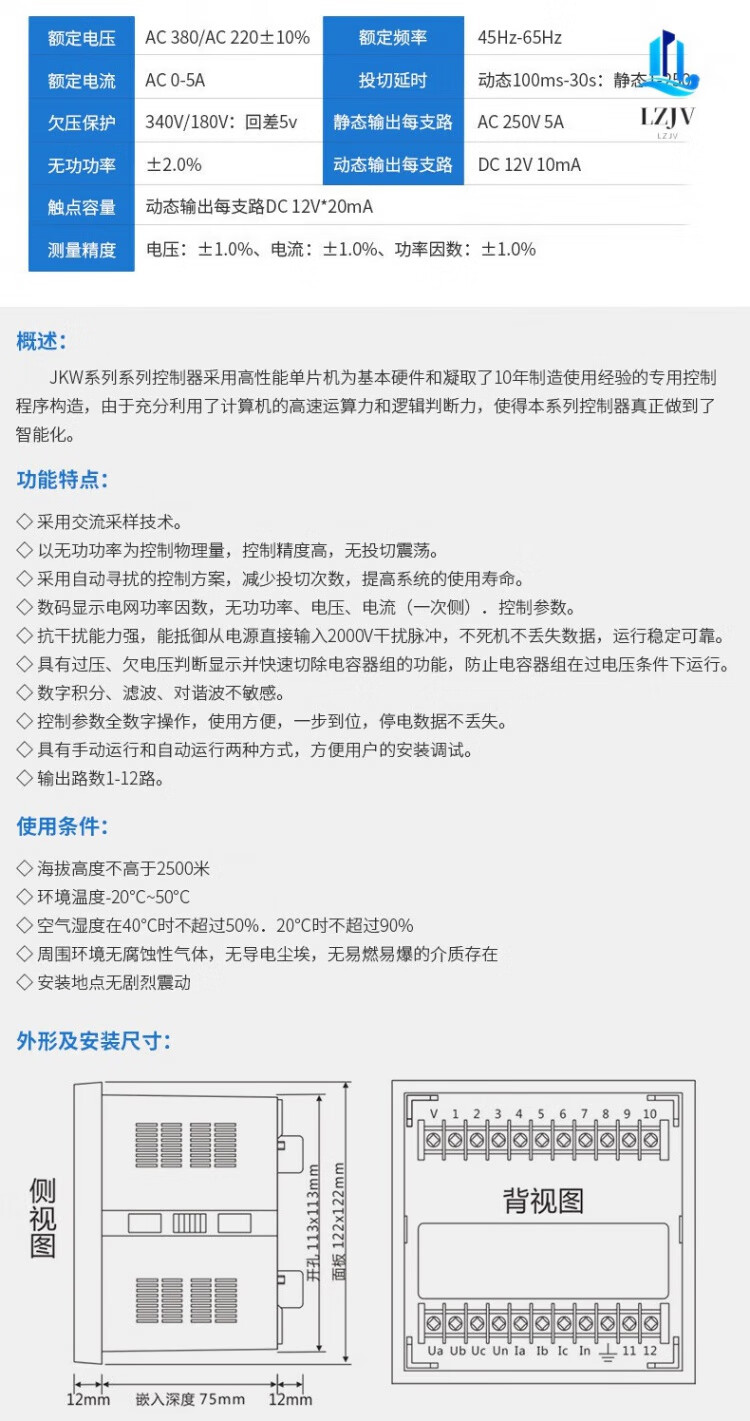 JKW5C -12 reactive power automatic capacitor compensation controller Shanghai power factor control table JKL5C10 (upgraded model without setting 10 channels) 380V