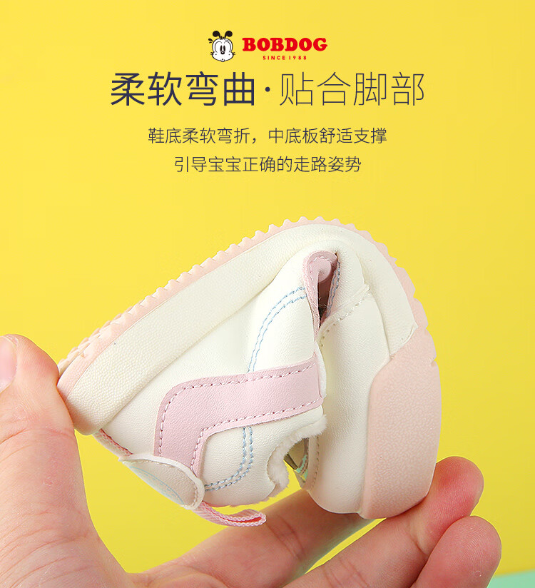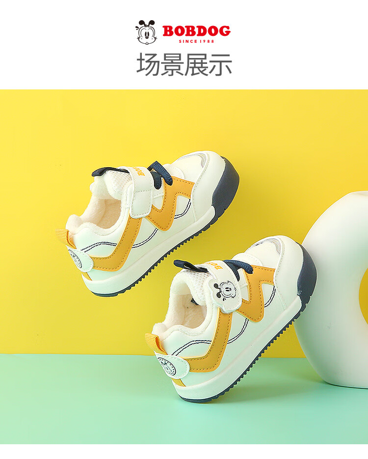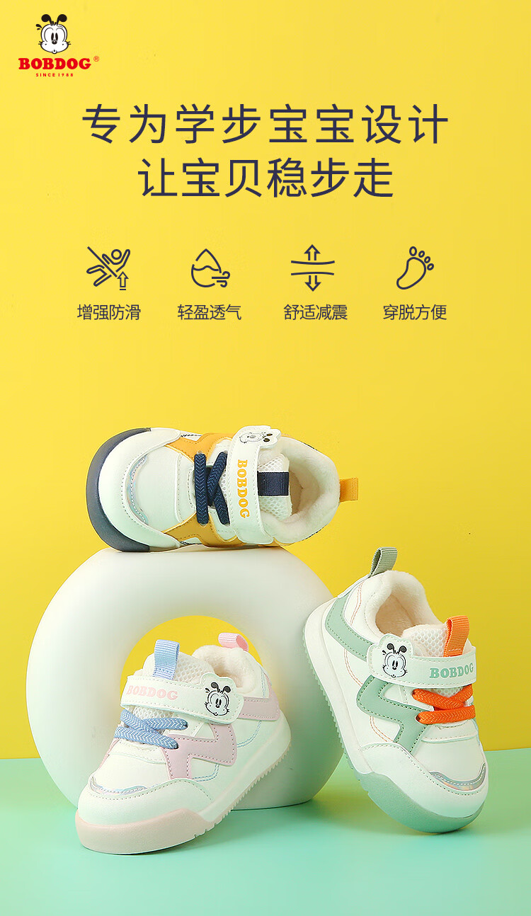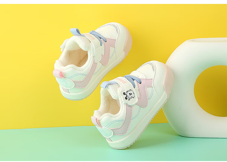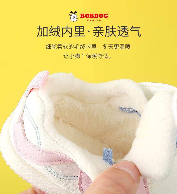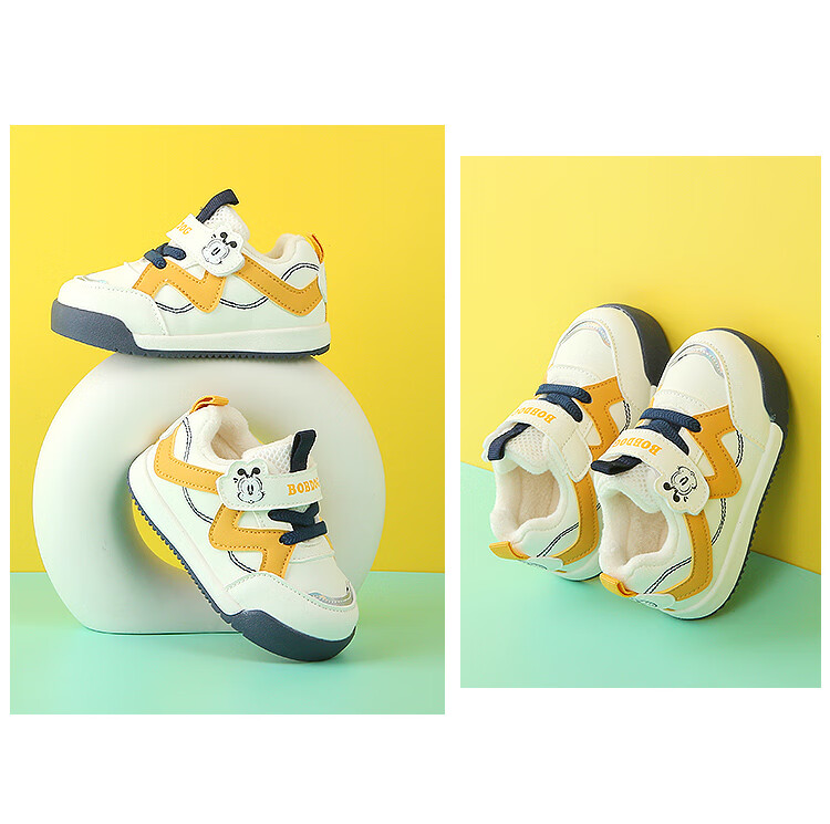Babudou children's shoes baby toddler shoes for men and women 2024 new indoor autumn and winter velvet anti-slip sports functional shoes beige plus velvet BBB389 20 shoe inner length 14cm