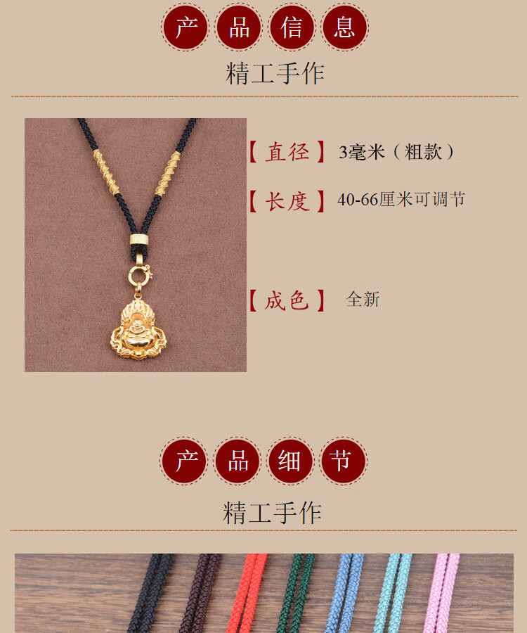 Nan Youli Free of Tie Adjustable Jade Pendant Lanyard Buddha Brand Pendant Rope Jade Pendant Necklace Rope Beeswax Gold Halter Neck Pendant Rope No Tie Buckle Lanyard (Pendant Not Included) - Black