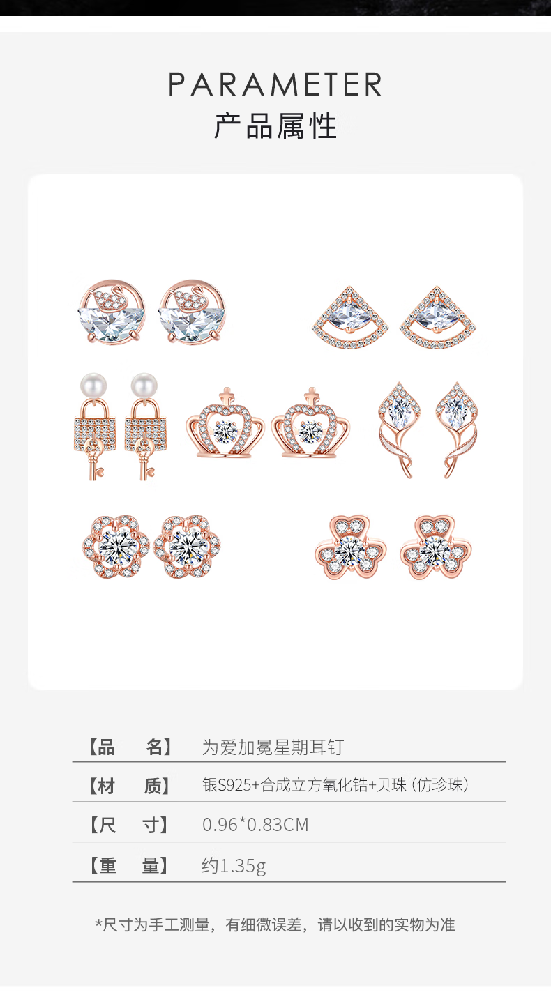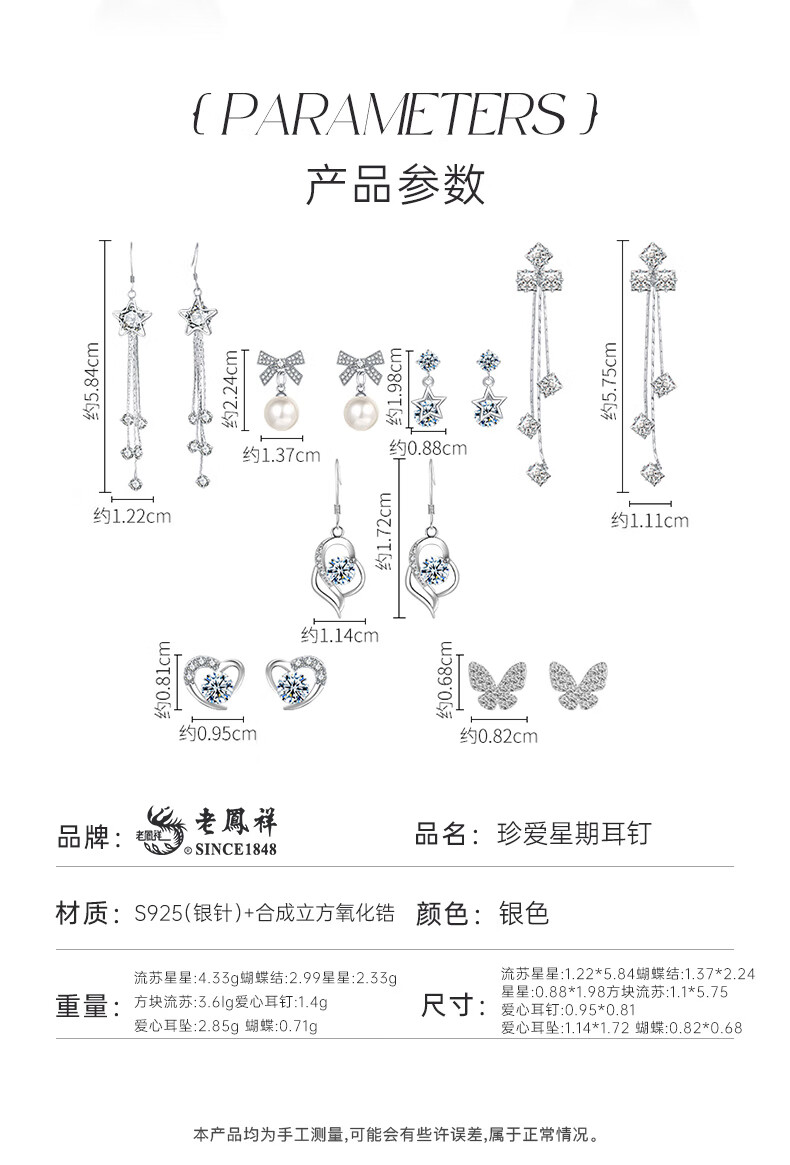 Lao Fengxiang Zhou Earrings Women's Light Luxury S925 Silver One Week Set Birthday Anniversary Gift for Girlfriend and Wife Zhou Earrings *Local warehouse/delivered nearby