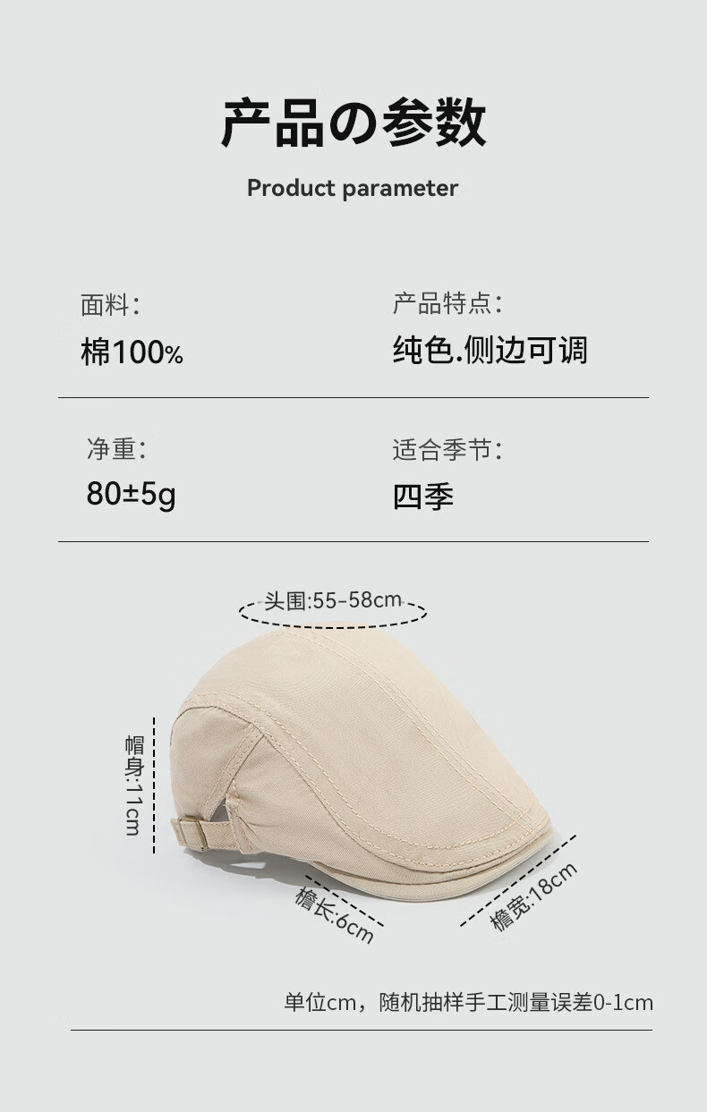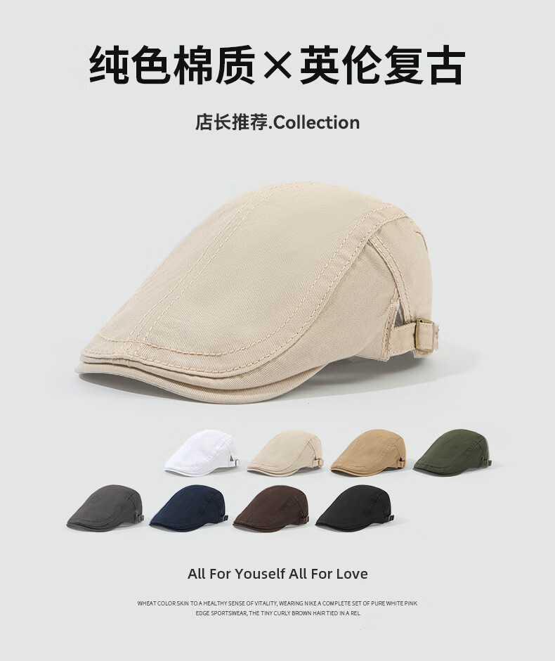 CHICORA British style painter hat fashion newsboy hat women summer new forward cap peaked cap versatile simple retro casual 239 forward hat-beige one size (55-58cm)
