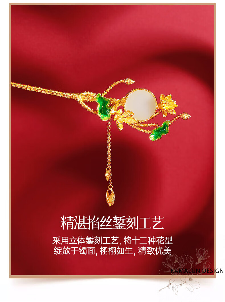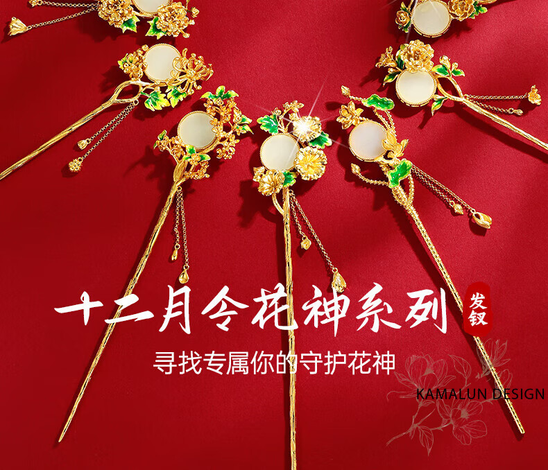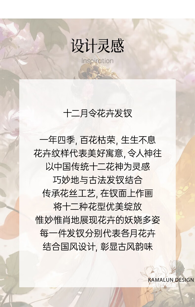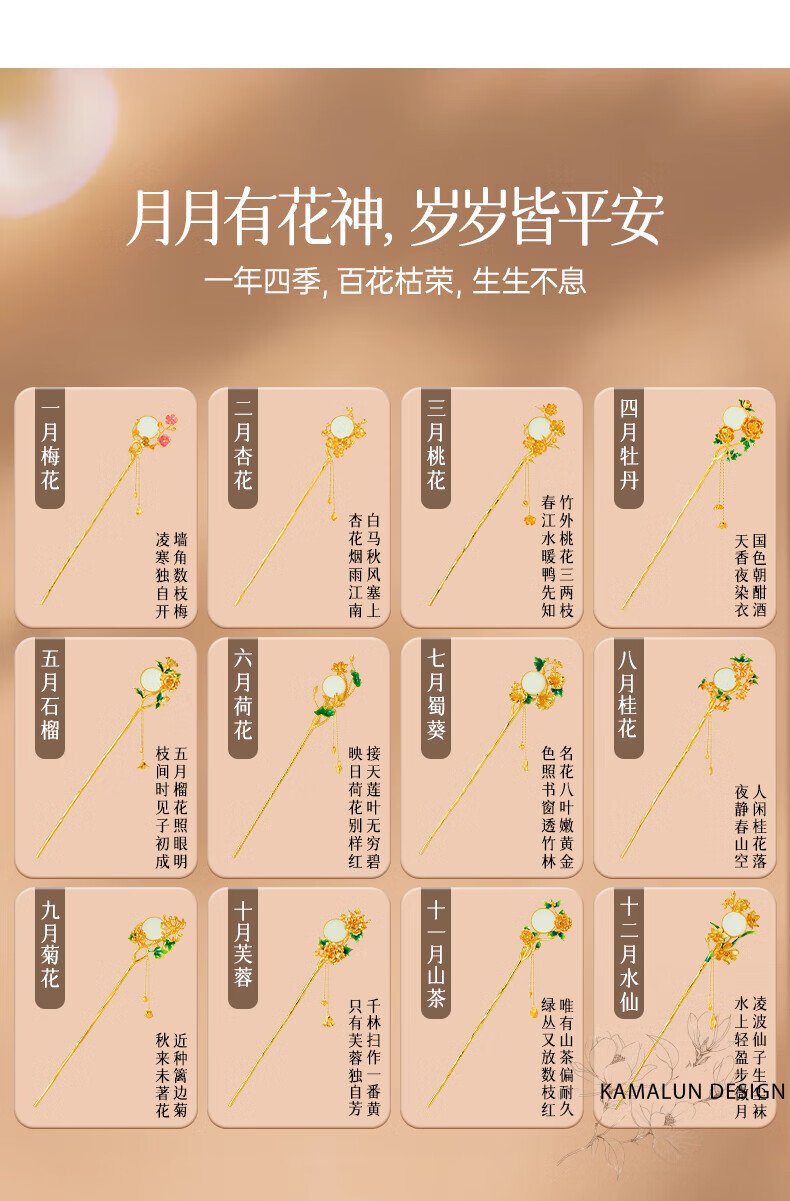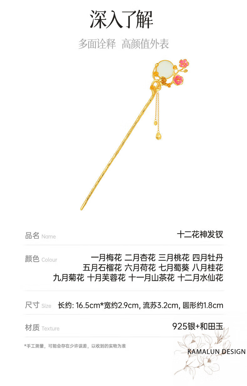 Kamalun (KAMALUN) New Twelve Flower God Hairpins Women's Ancient Style Silver Hairpins New Chinese Style Hairpins Hanfu Cheongsam Hair Accessories Valentine's Day Gift January Plum Blossoms Faithful Love + Brand Gift Box