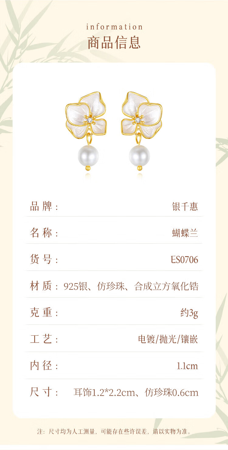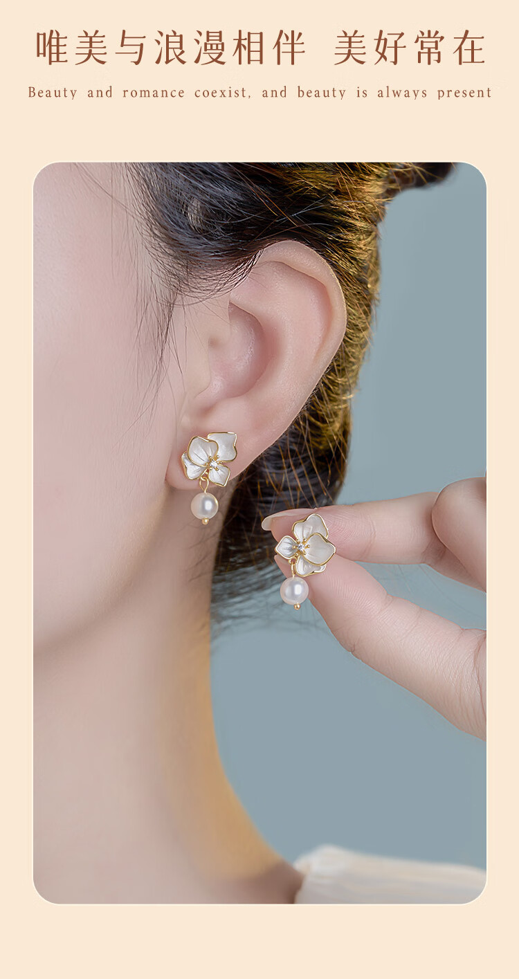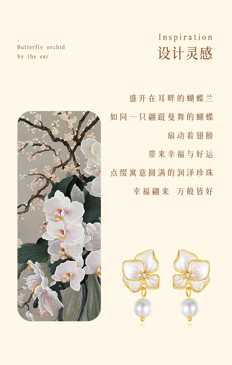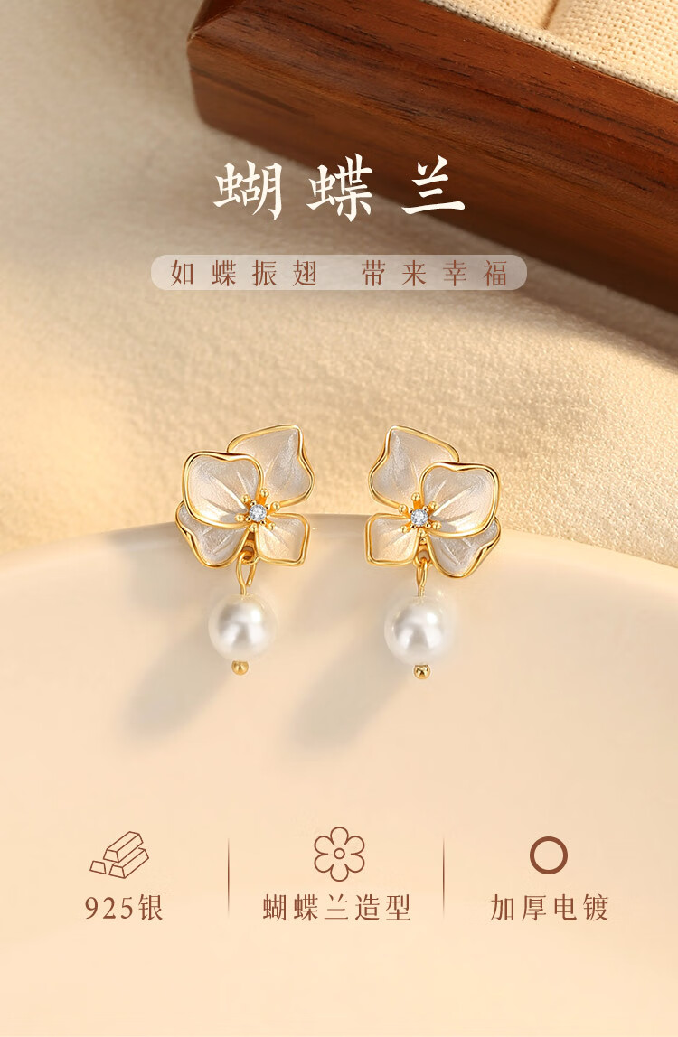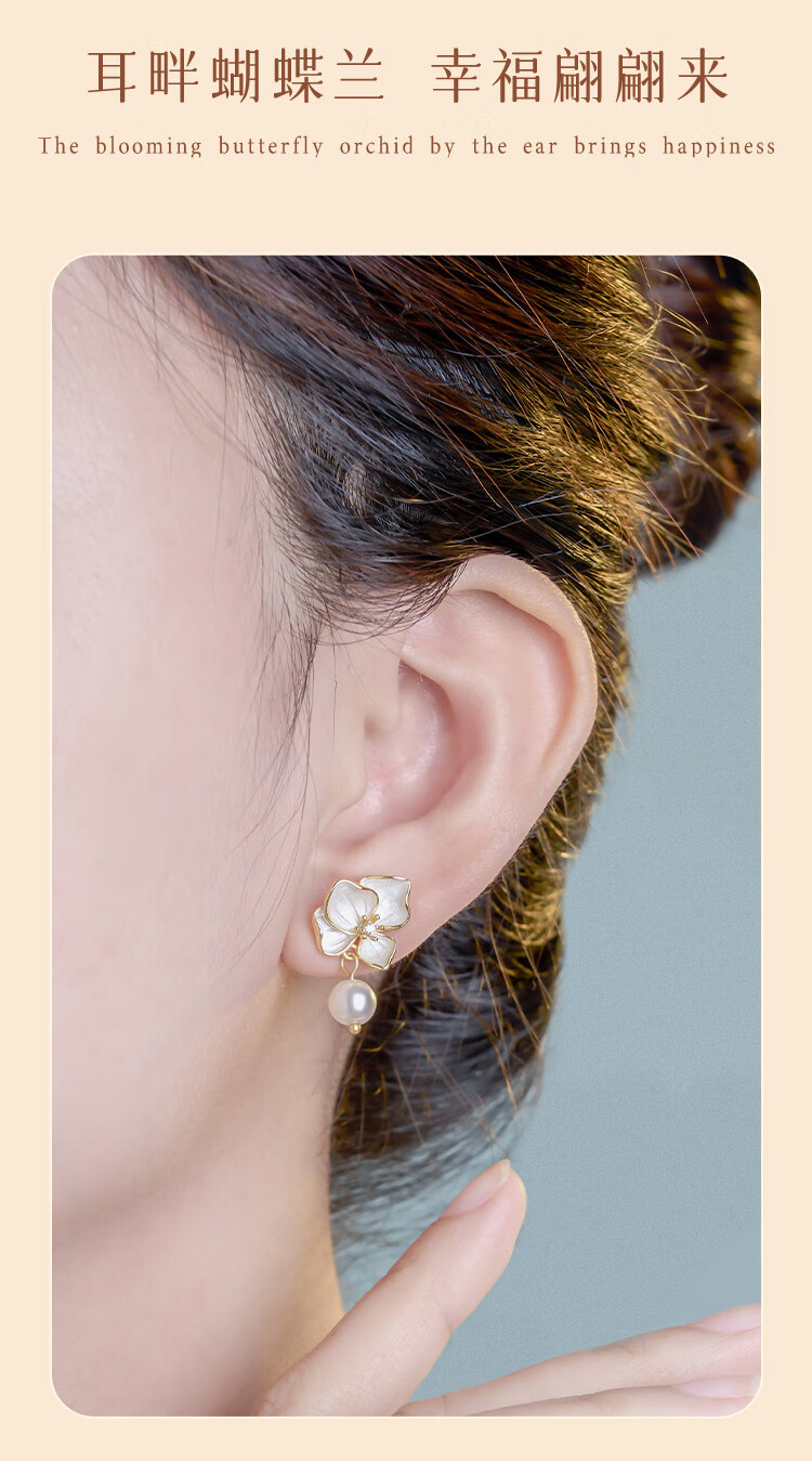 Gin Chie sterling silver pearl earrings for women, butterfly orchid earrings, 2025 new earrings, birthday gifts for girlfriends, butterfly orchid earrings/imitation pearls + seven warehouse delivery/same day delivery, Valentine's Day girl gift/exquisite gift box for wife/with jewelry certificate