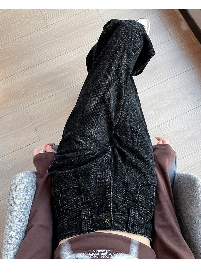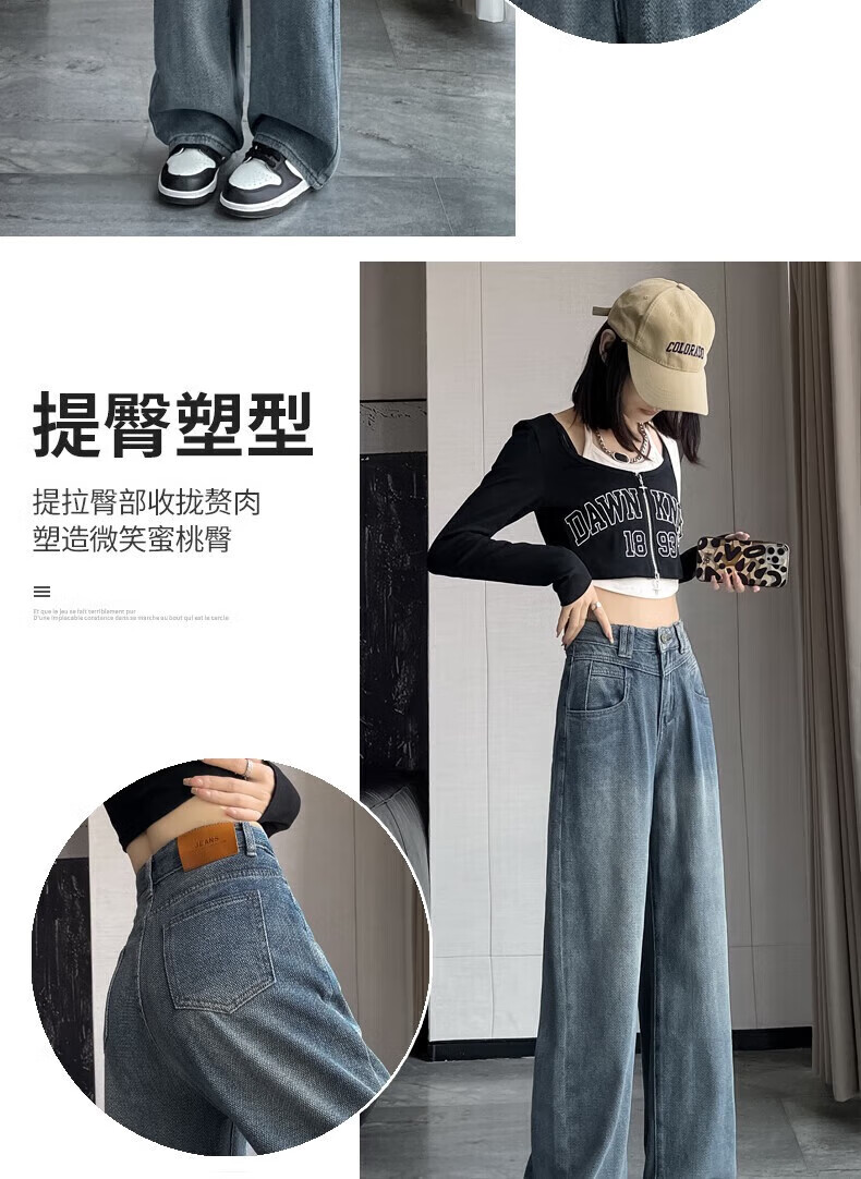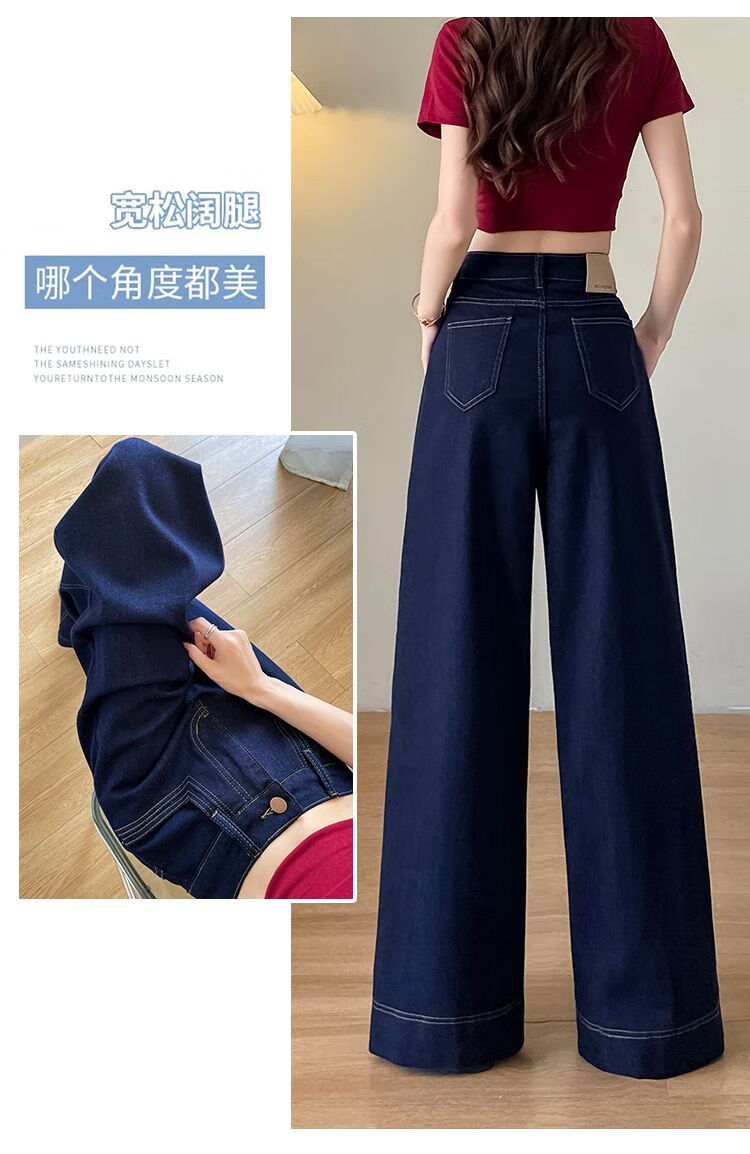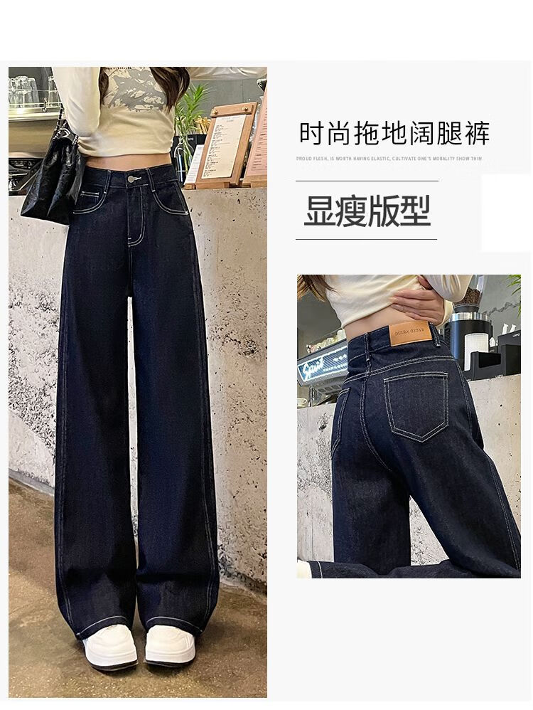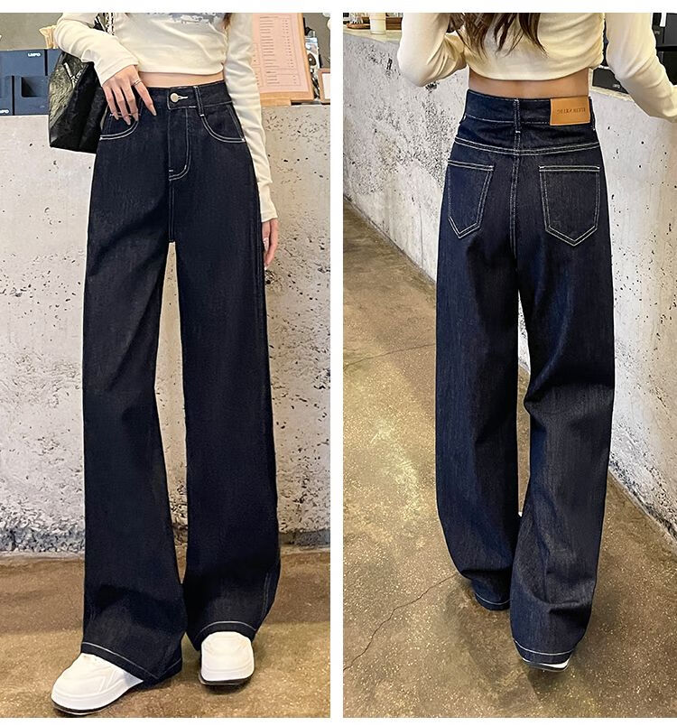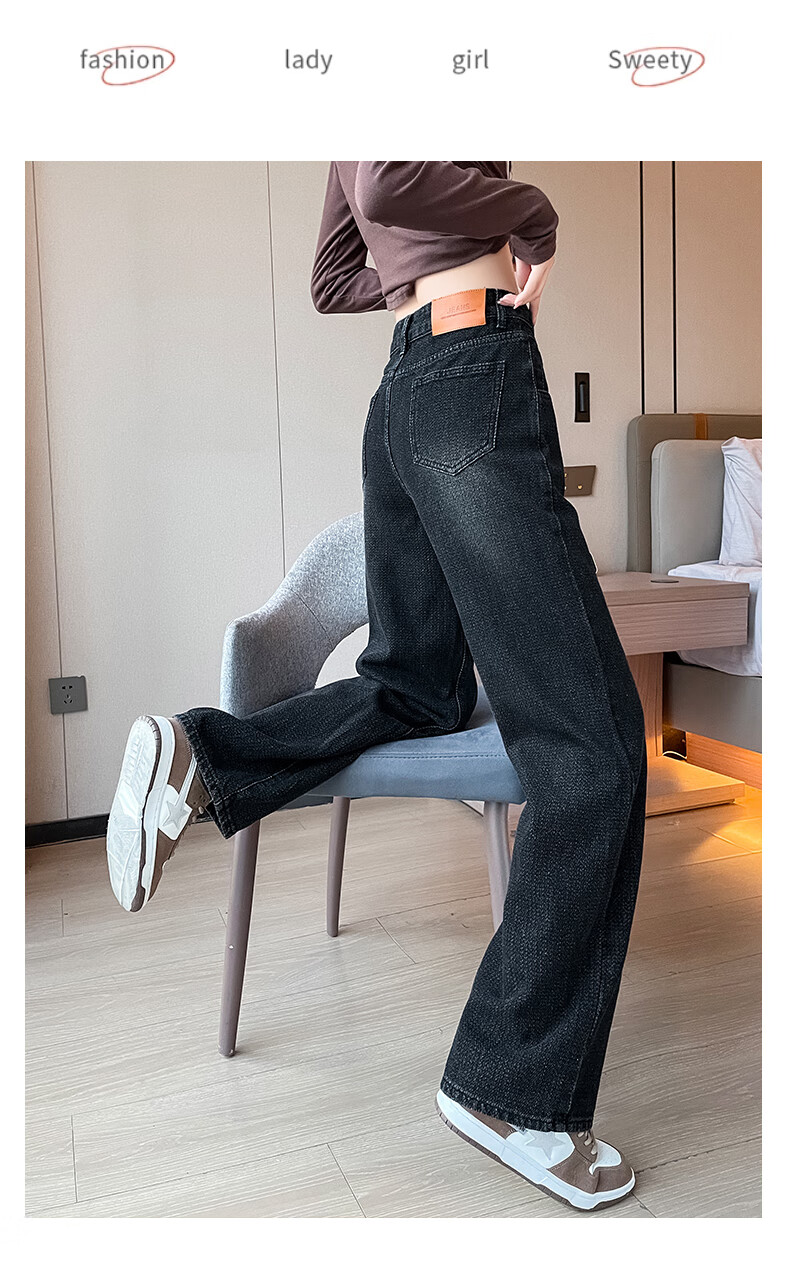 Jeanswest high-waisted wide-leg jeans for women in autumn and winter new style plus velvet warm straight loose loose drape soft denim floor mopping pants retro blue trousers starry sky pattern-velvet L 29-30 size