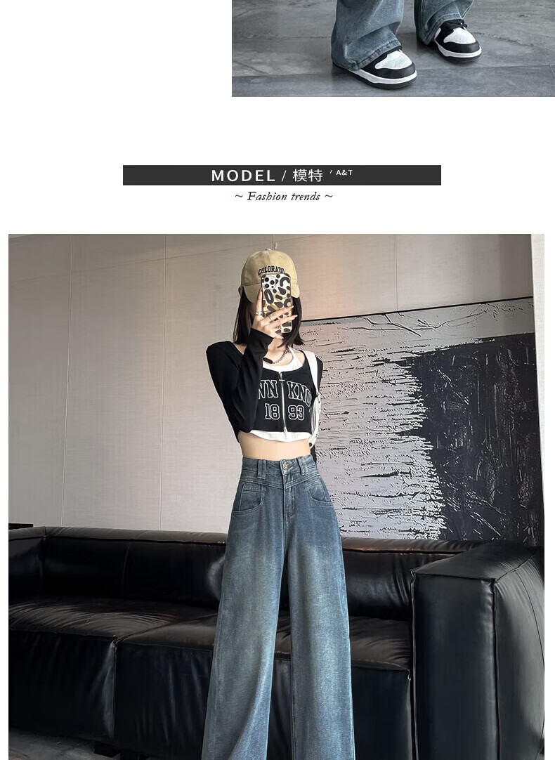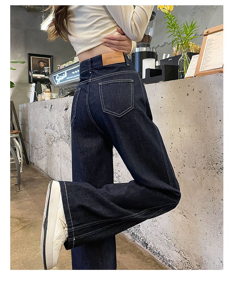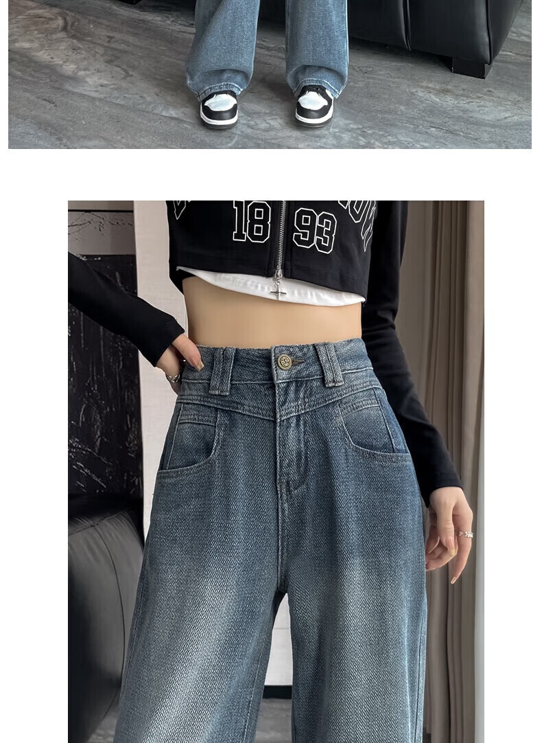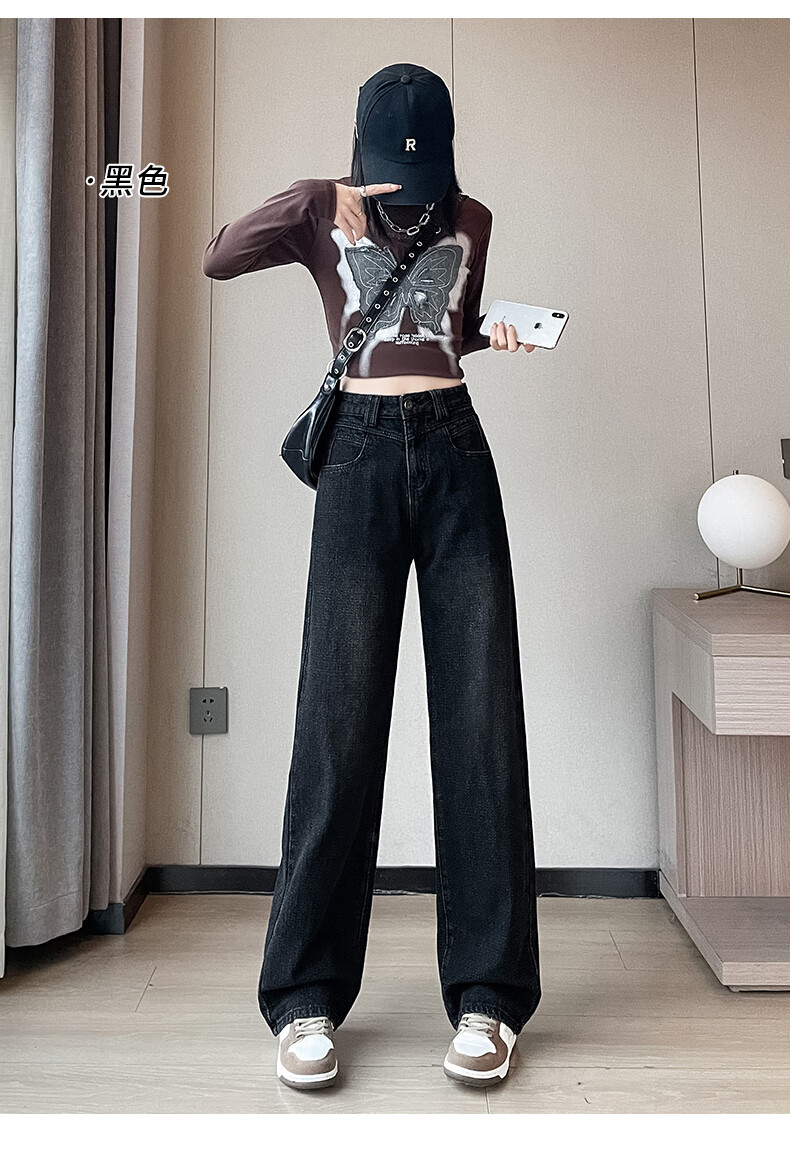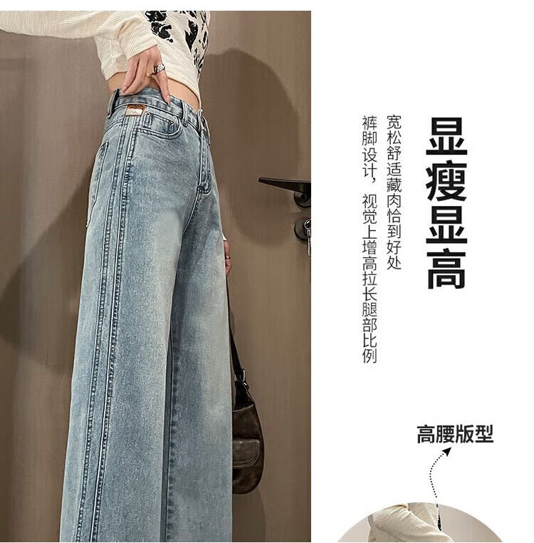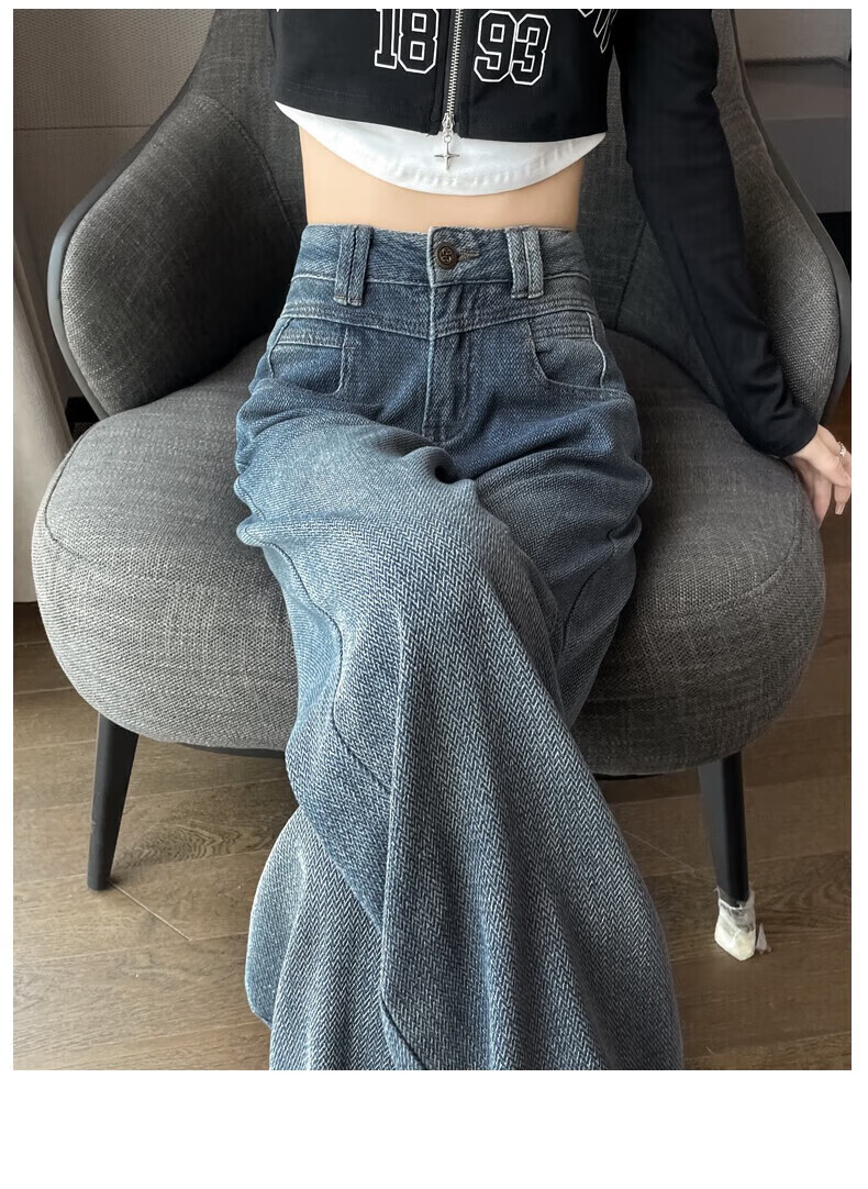 Jeanswest high-waisted wide-leg jeans for women in autumn and winter new style plus velvet warm straight loose loose drape soft denim floor mopping pants retro blue trousers starry sky pattern-velvet L 29-30 size