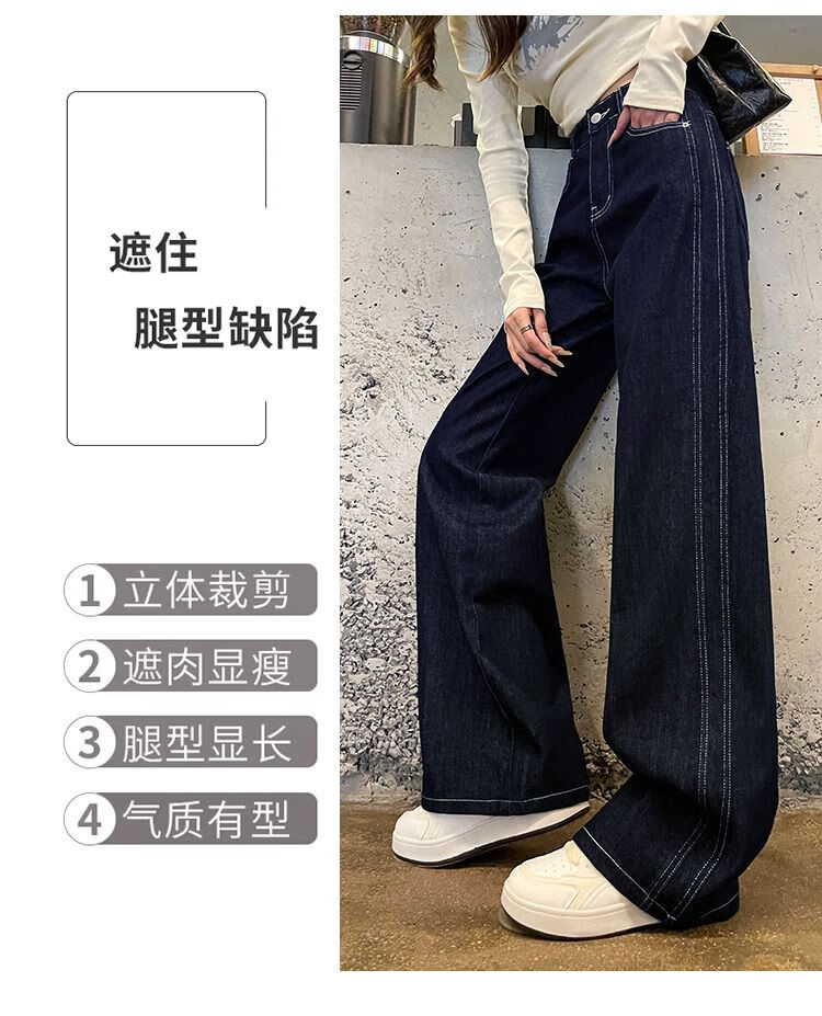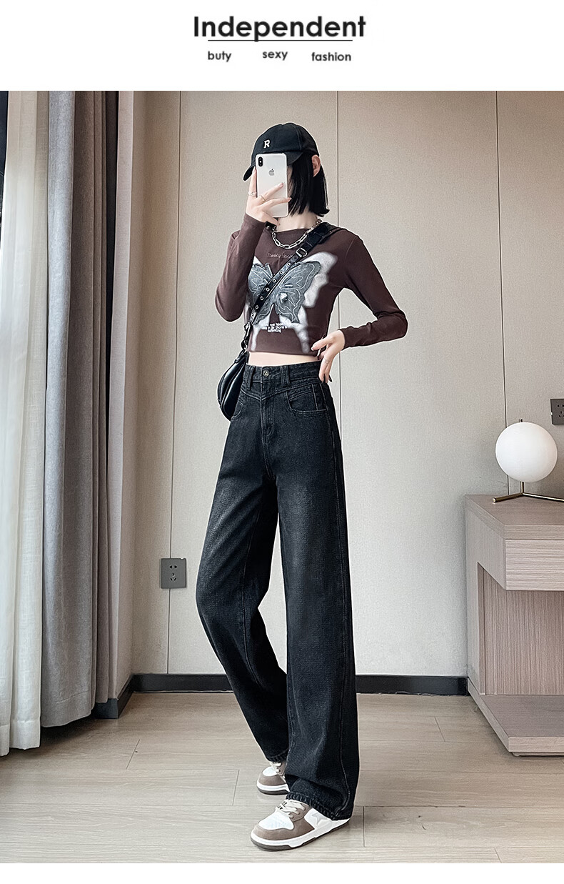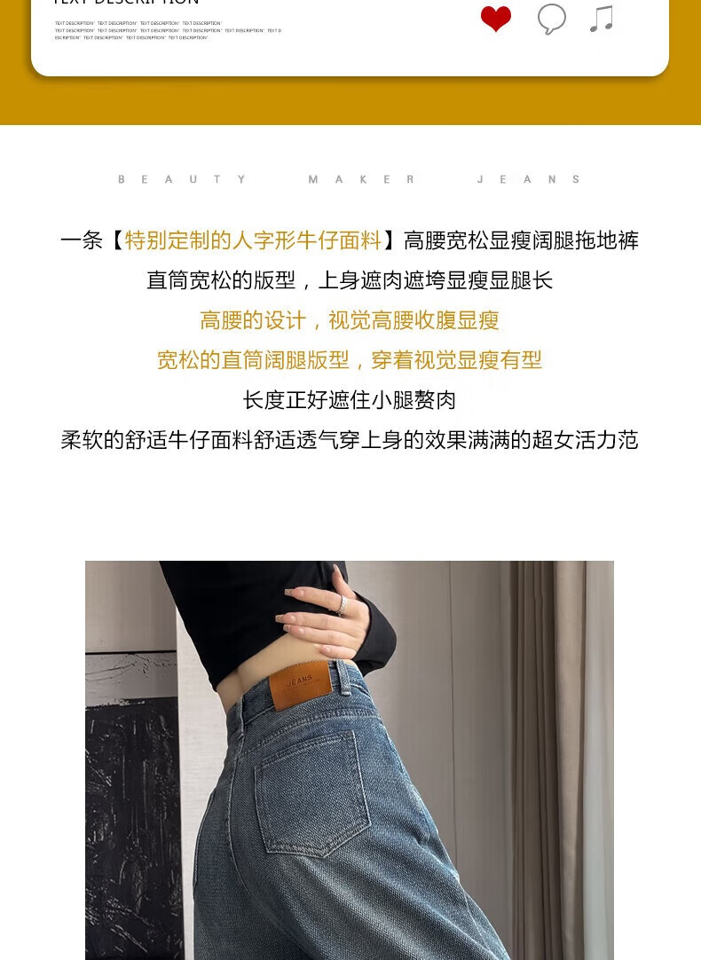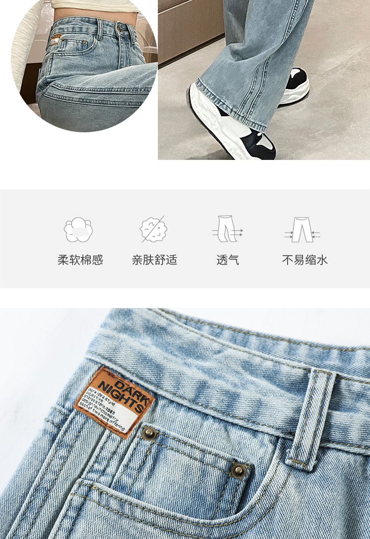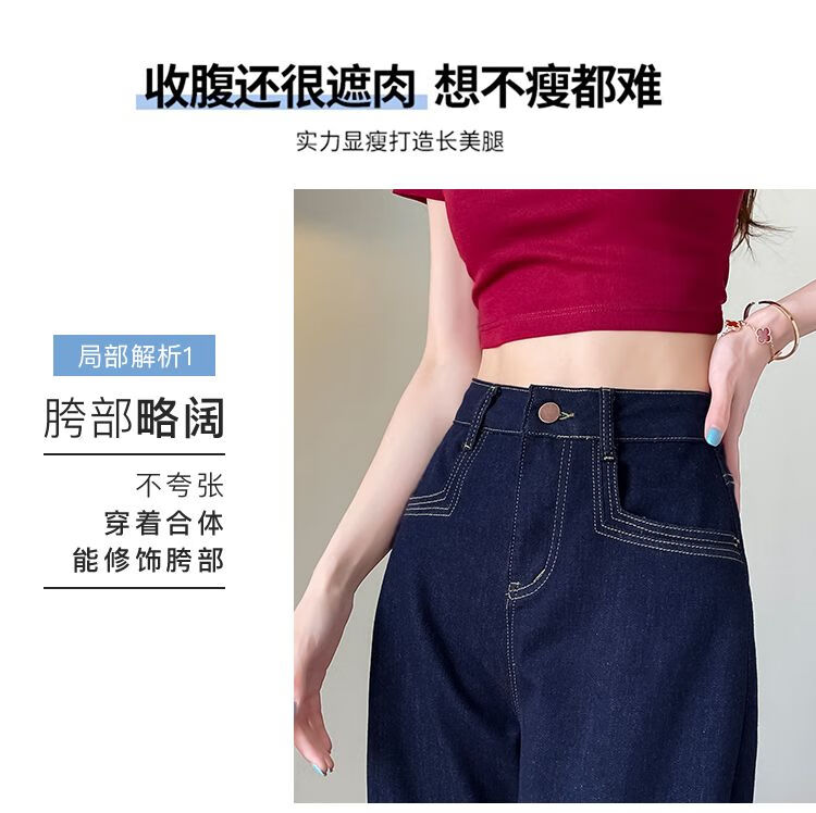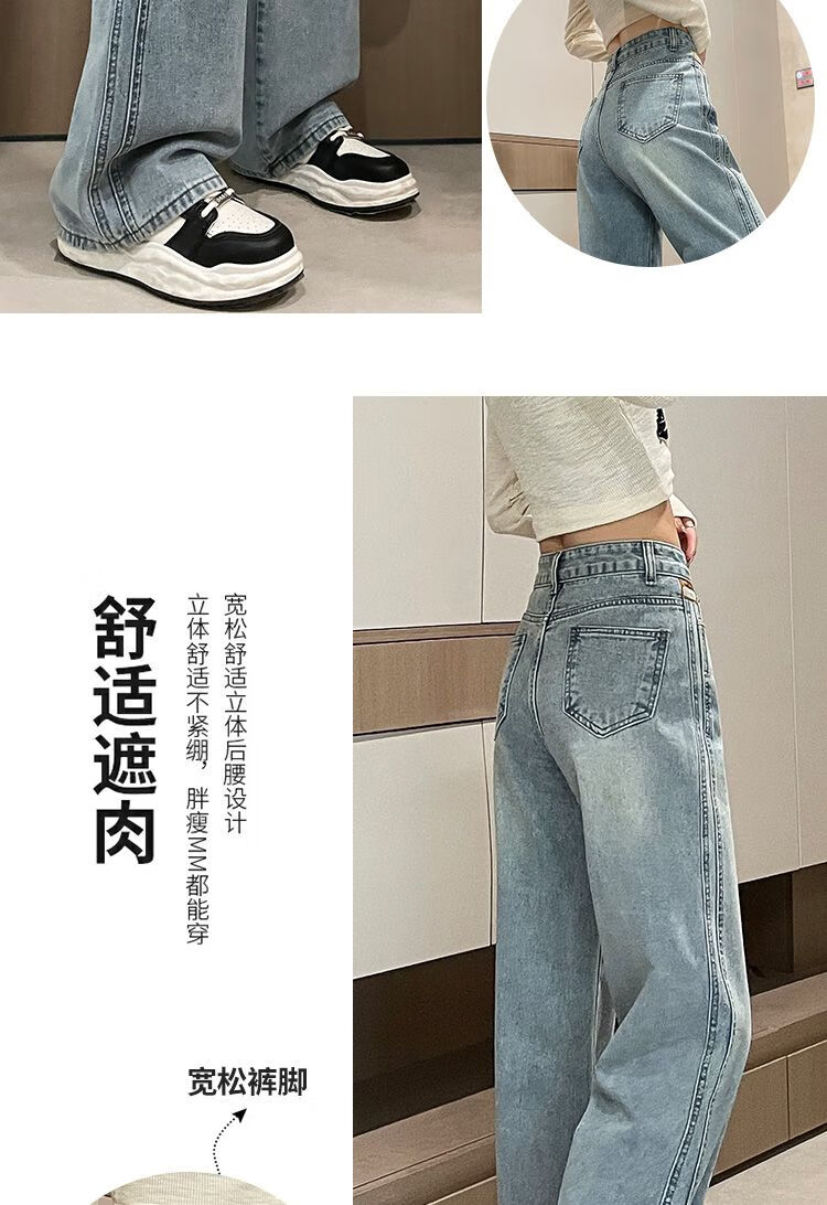 Jeanswest high-waisted wide-leg jeans for women in autumn and winter new style plus velvet warm straight loose loose drape soft denim floor mopping pants retro blue trousers starry sky pattern-velvet L 29-30 size