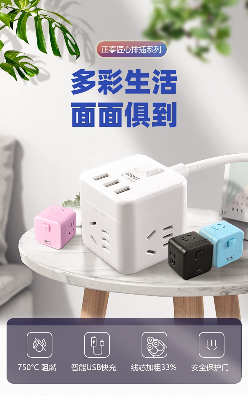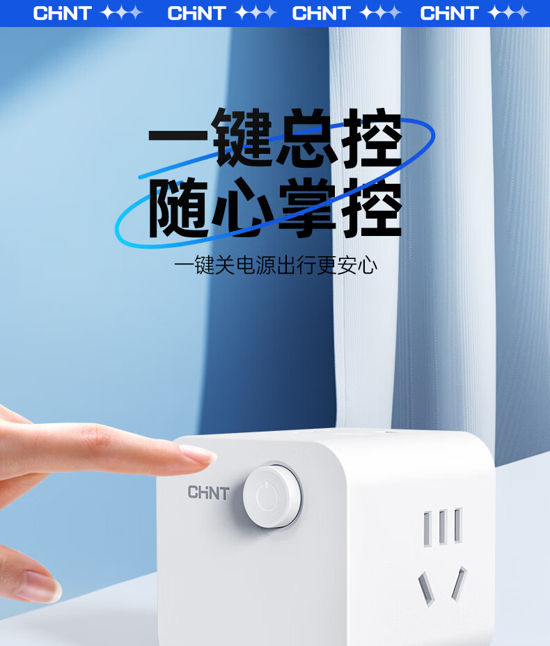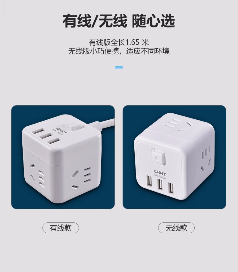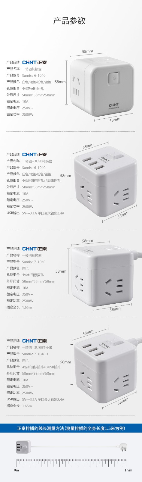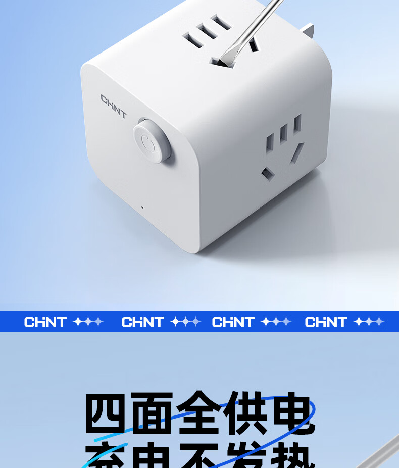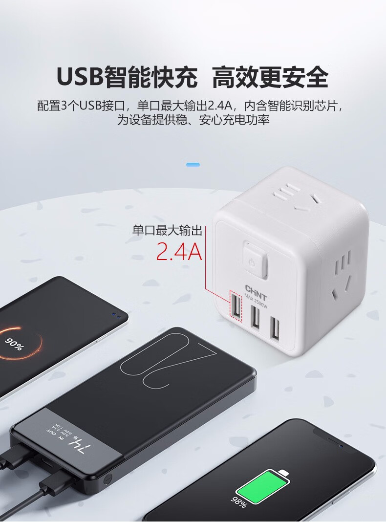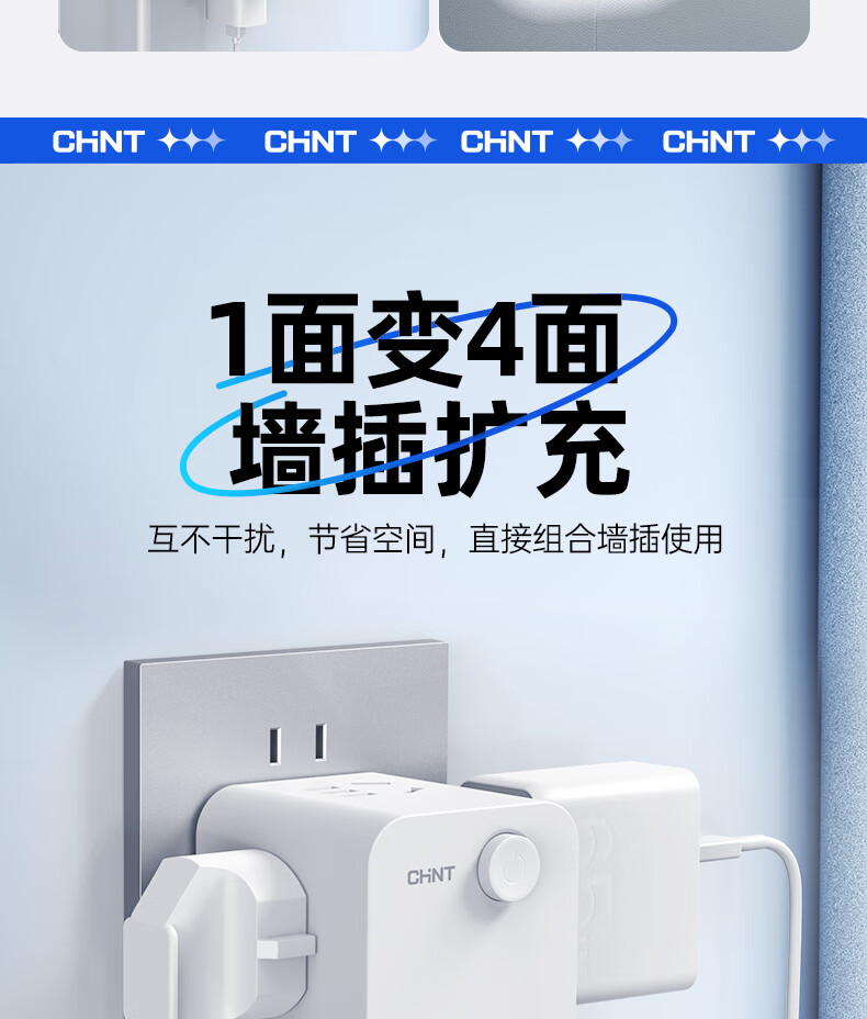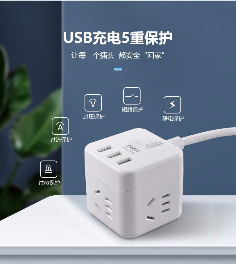 Chint (CHNT) plug converter smart square USB socket/socket board/socket strip/socket strip/plug strip/plug strip one to four-1.65m (wired)