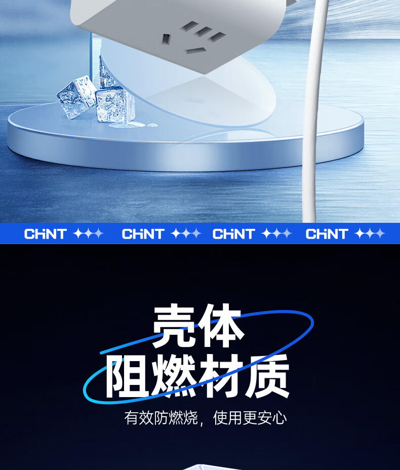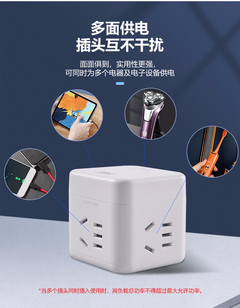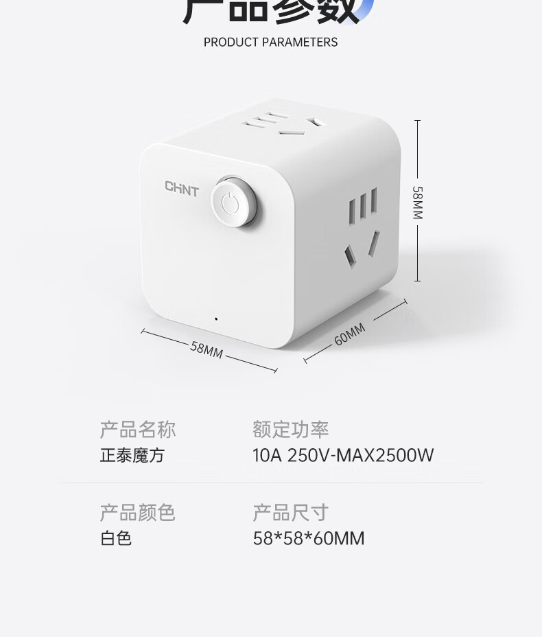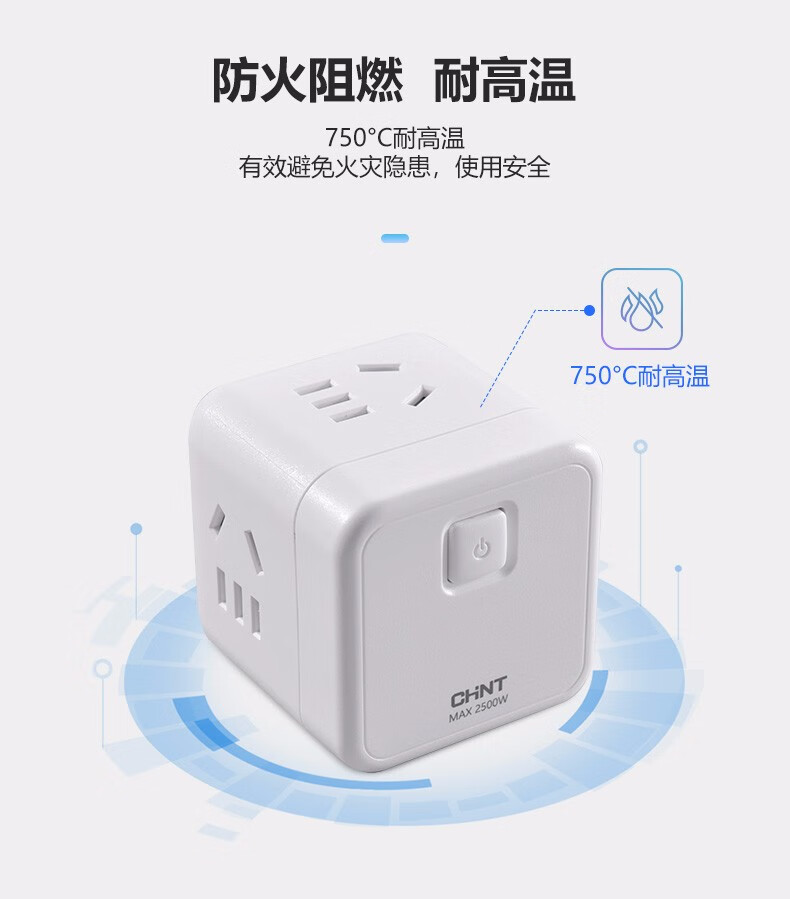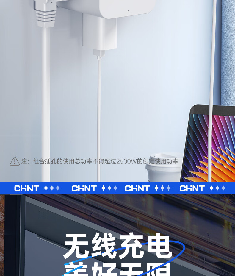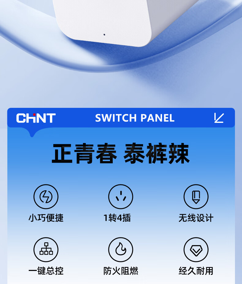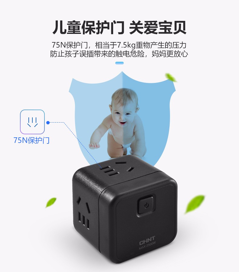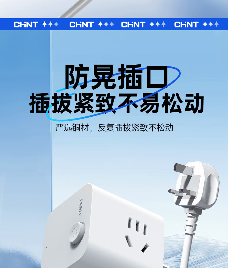 Chint (CHNT) plug converter smart square USB socket/socket board/socket strip/socket strip/plug strip/plug strip one to four-1.65m (wired)