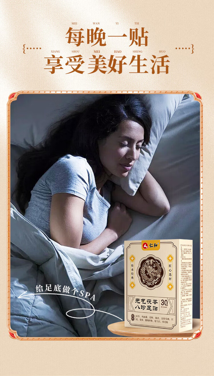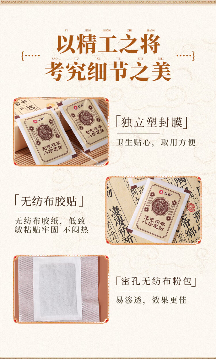 Renhe Yuanqi Poria Bazhen Foot Patch Foot Care Moxibustion Mugwort Mugwort Foot Sleeping Acupoint Patch Warming Foot Warming Patch 30 patches * 1 box No discount is not worth it